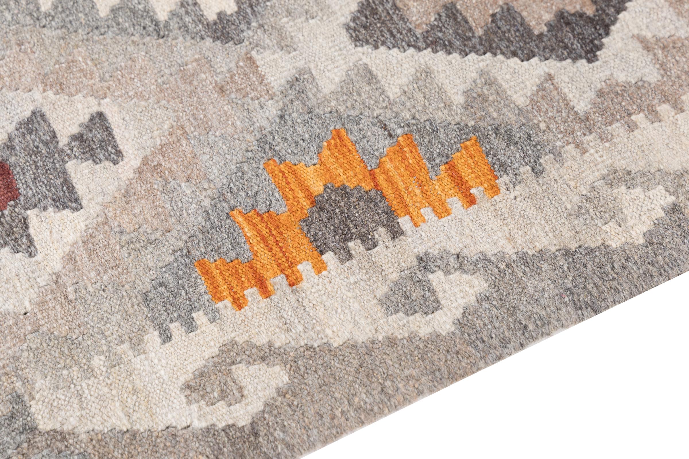 Dieser Kelim Teppich ist ganz besonders, denn er wurde nicht nur von Hand gewebt, sondern seine Wolle wurde auch von Hand gesponnen. Die Kelim Heritage Kollektion bietet ein höchst modernes Design in Pastellfarben und in Kombination mit dem traditionellsten Kunsthandwerk aus dem Orient. Von hohem Wert und absolut erschwinglich. Ein solches Einzelstück finden Sie in der Art nicht wieder.