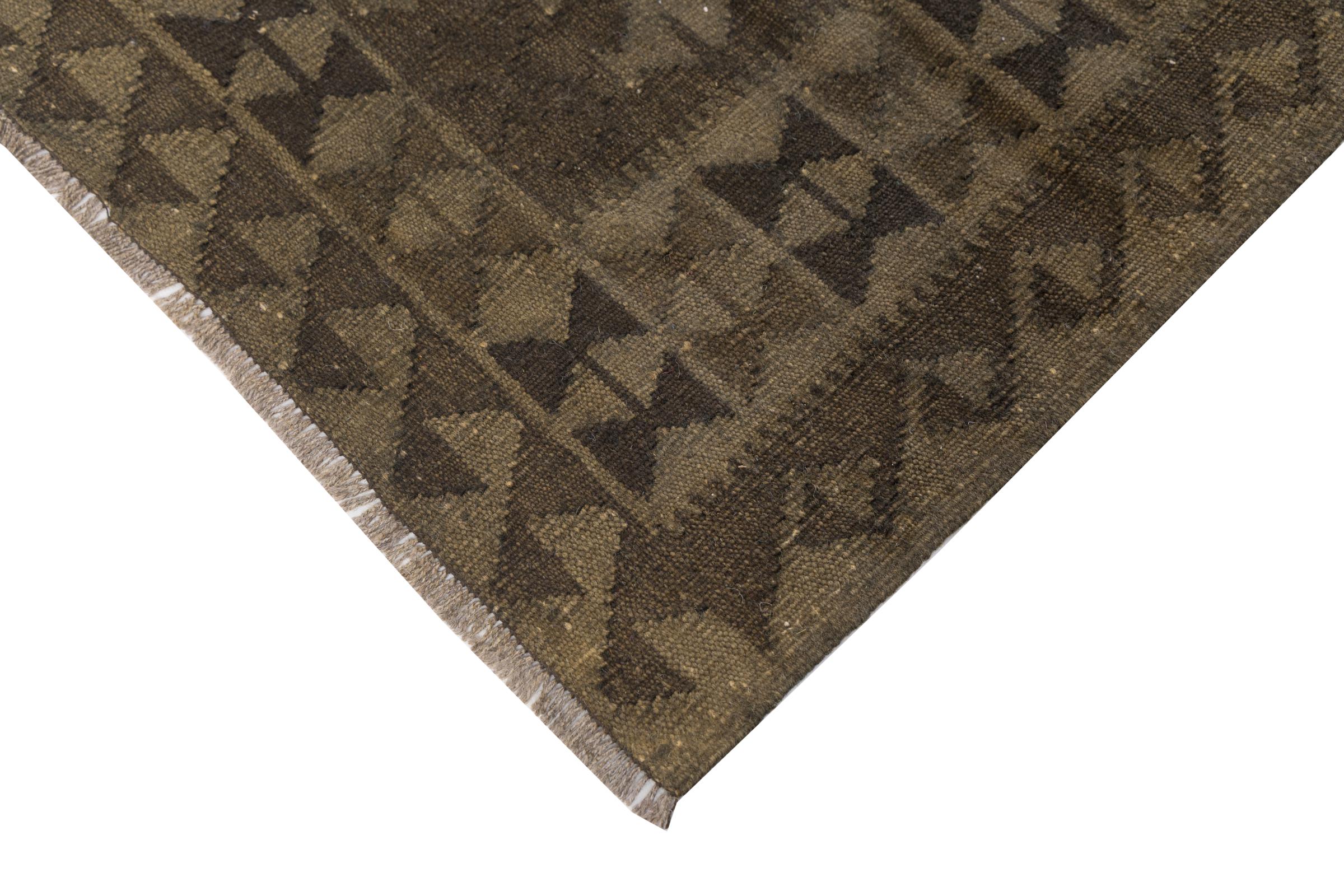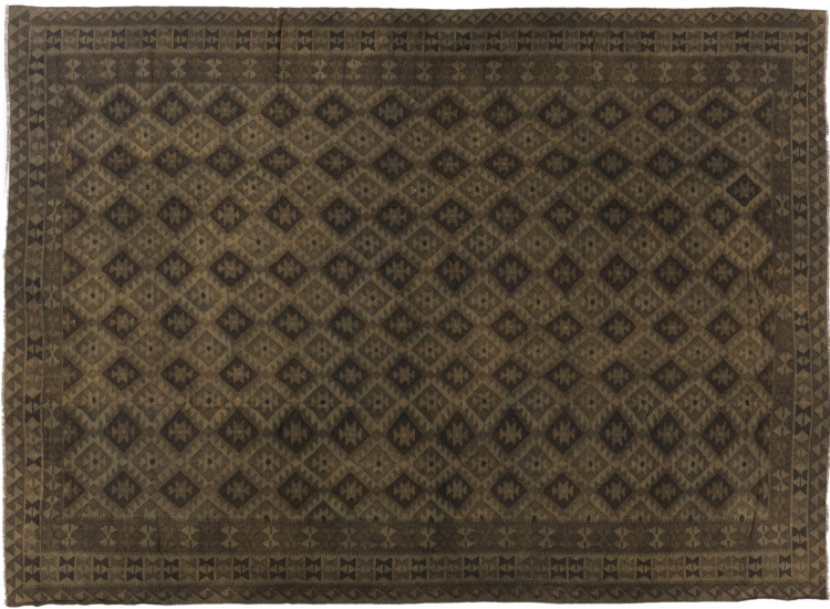 Dieser Teppich ist als Flachgewebe von Hand am Webstuhl gefertigt worden. Als Flachgewebe bezeichnet man Teppiche, die keinen Flor besitzen. Wie der Name verspricht, werden diese Teppiche gewebt und nicht geknotet. Dies hat einen flachen Teppich mit strukturierter Oberfläche zur Folge. Flachgewebe sind nicht so weich und meist dünner als geknüpfte Teppiche. Gleichzeitig sind sie deutlich weniger aufwändig in der Fertigung und lassen sich meist von beiden Seiten (Vorder- und Rückseite) auslegen. Ihre Muster sind in der Regel geometrisch, was durch das Gewebe bedingt ist.