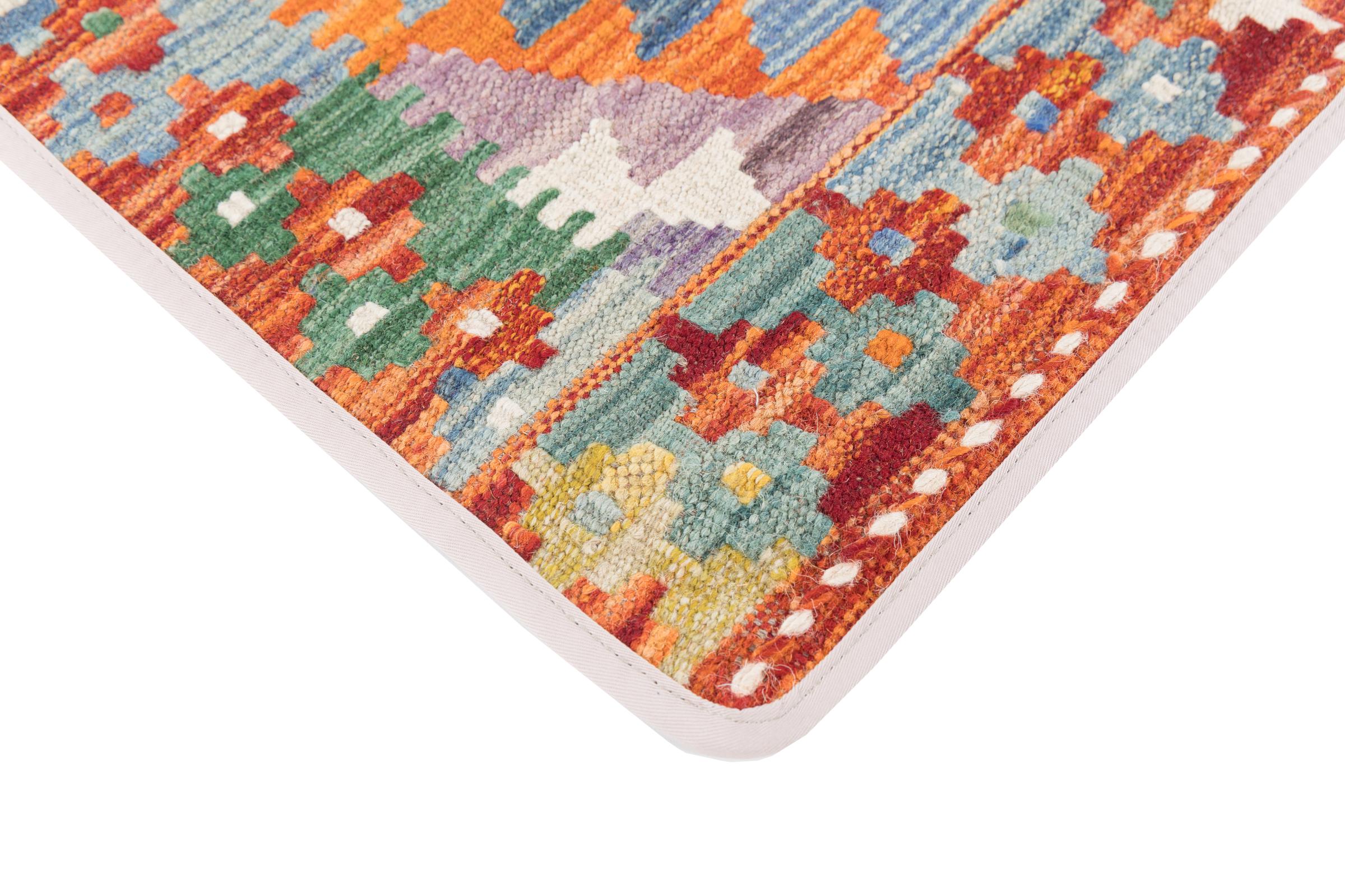 Dieser handgewebte Kelim Afghan ist dank der facettenreichen Farben und des typischen Musters wunderschön. Er wurde in Afghanistan aus 100% Schafswolle von Hand gewebt. Robuster und langlebiger als maschinell produzierte Teppiche ist er dadurch ohne Zweifel. Zudem besitzt dieser Kelim einen ganz eigenen Charakter. Ein Unikat für Sie und ihr Zuhause, das Sie genau so nicht wieder finden werden.