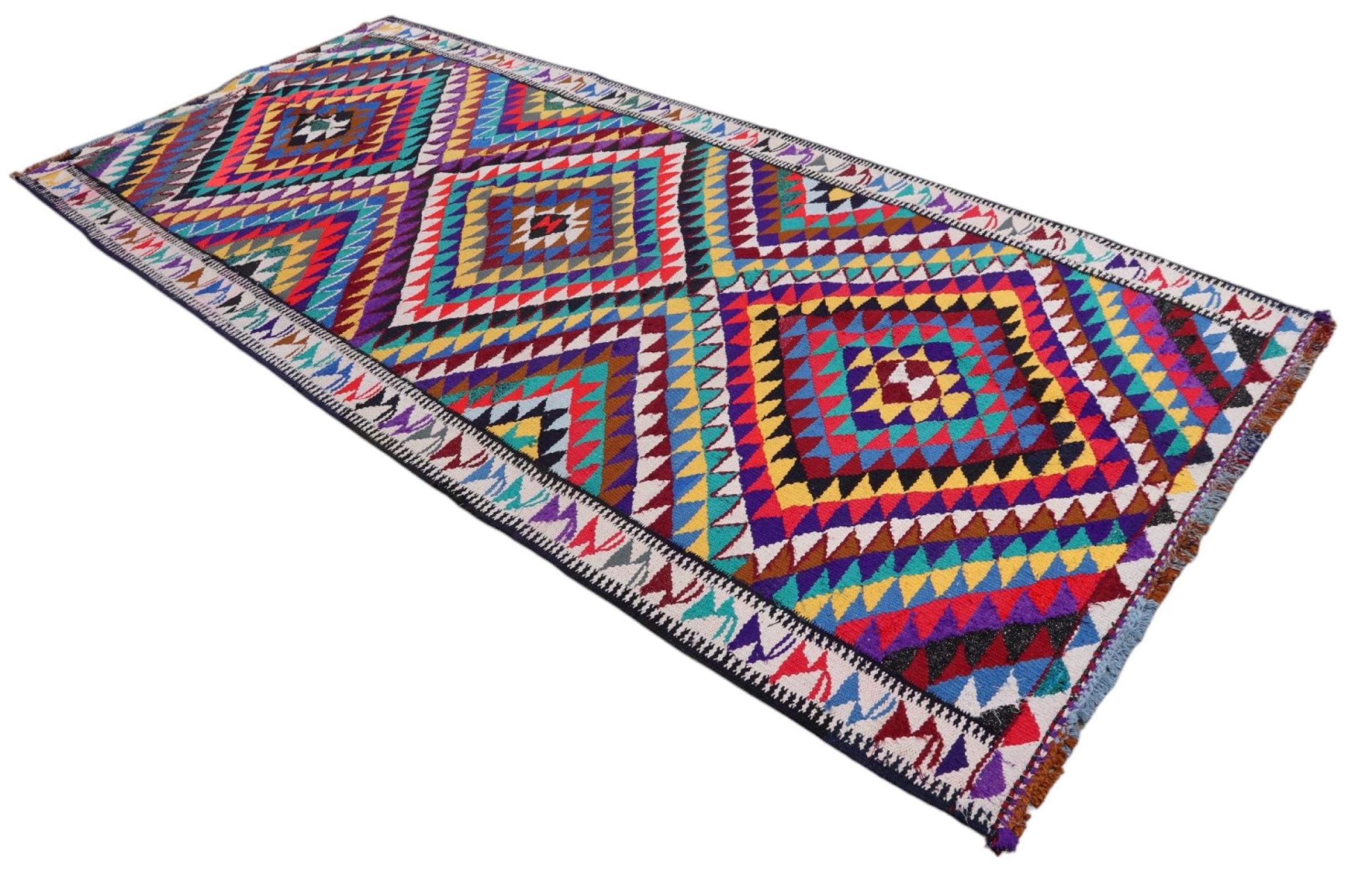Diese Kelim Teppiche weisen einen entscheidenden Unterschied zu handgeknüpften Teppichen auf - sie werden von Hand gewebt. So besitzen sie keinen hochstehenden Flor aus Wolle und sind oft flacher und rauer als geknüpfte Wollteppiche. Ihre Machart ist weniger aufwändig und so sind sie in der Regel auf deutlich kostengünstiger. Als Vorteil sind Kelim Teppiche zudem viel leichter und können von der Vorder- und Rückseite ausgelegt werden. Handgewebte Kelims stammen ursprünglich aus dem ehemaligen Persien und werden heute auch viel in Afghanistan gefertigt. Sie haben eher schlichte geradlinige Muster, die durch ihre Webtechnik bedingt sind.