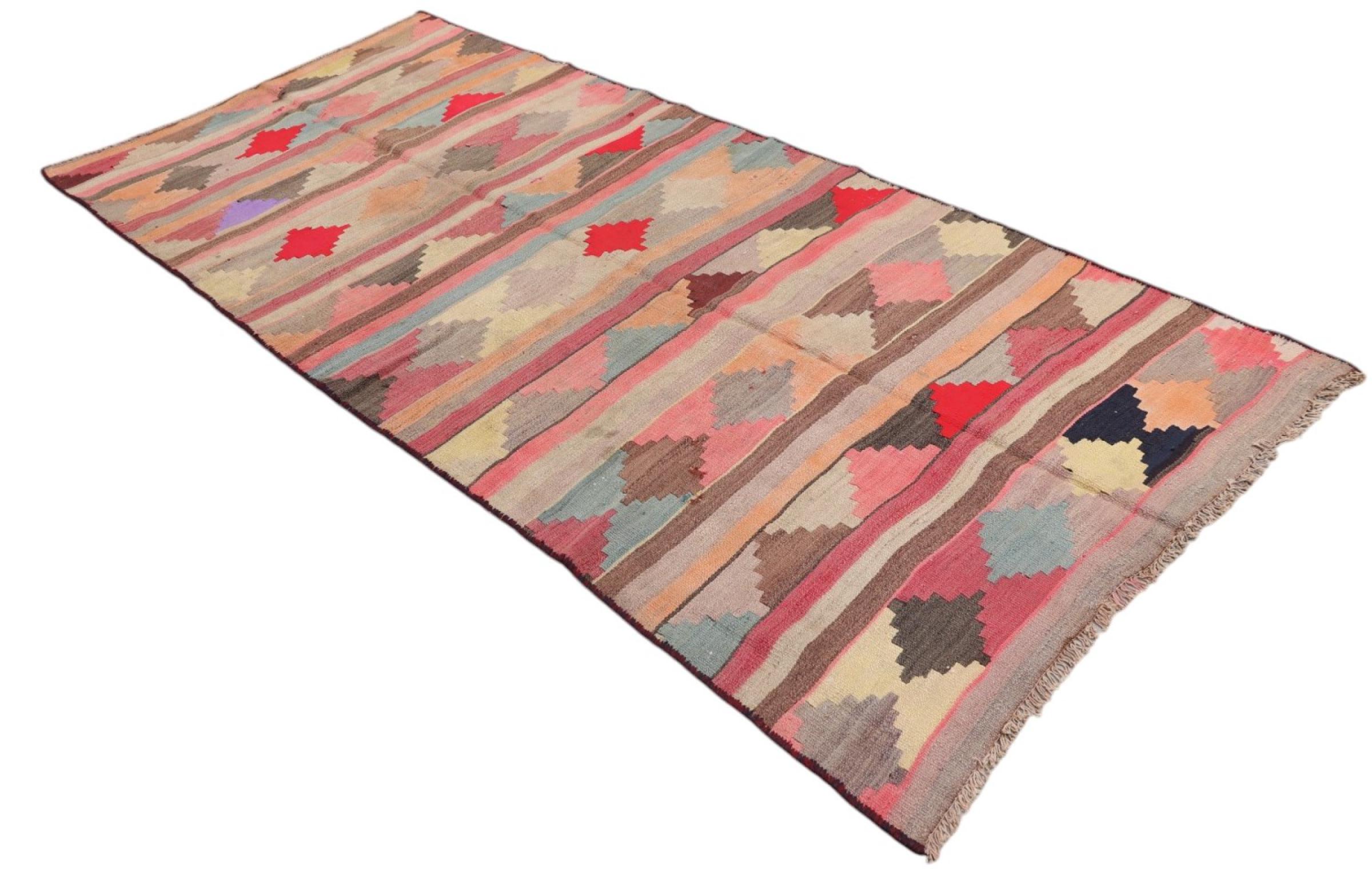Diese Kelim Teppiche weisen einen entscheidenden Unterschied zu handgeknüpften Teppichen auf - sie werden von Hand gewebt. So besitzen sie keinen hochstehenden Flor aus Wolle und sind oft flacher und rauer als geknüpfte Wollteppiche. Ihre Machart ist weniger aufwändig und so sind sie in der Regel auf deutlich kostengünstiger. Als Vorteil sind Kelim Teppiche zudem viel leichter und können von der Vorder- und Rückseite ausgelegt werden. Handgewebte Kelims stammen ursprünglich aus dem ehemaligen Persien und werden heute auch viel in Afghanistan gefertigt. Sie haben eher schlichte geradlinige Muster, die durch ihre Webtechnik bedingt sind.