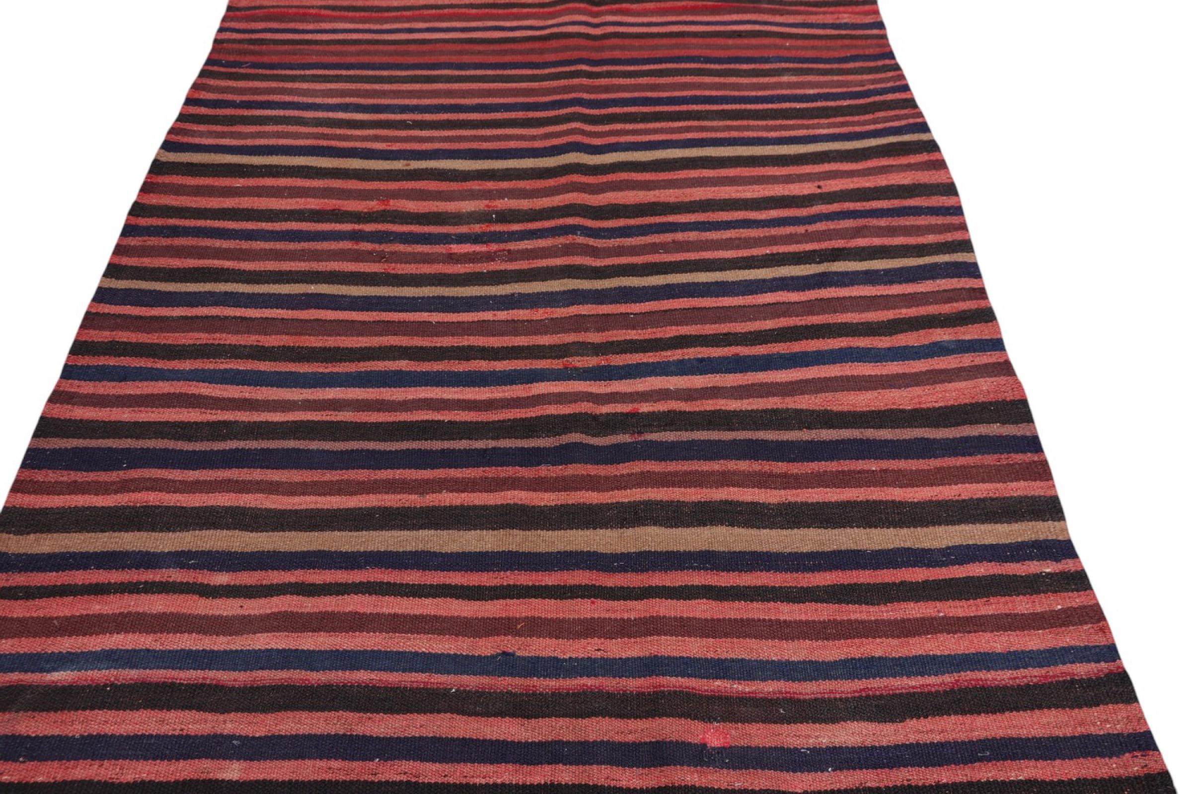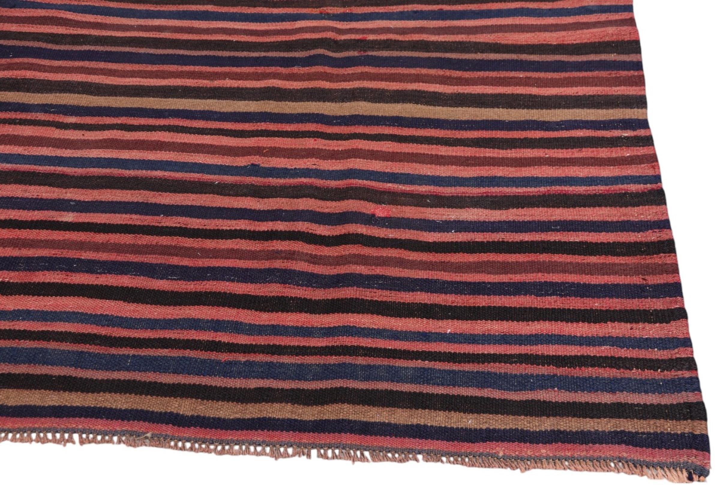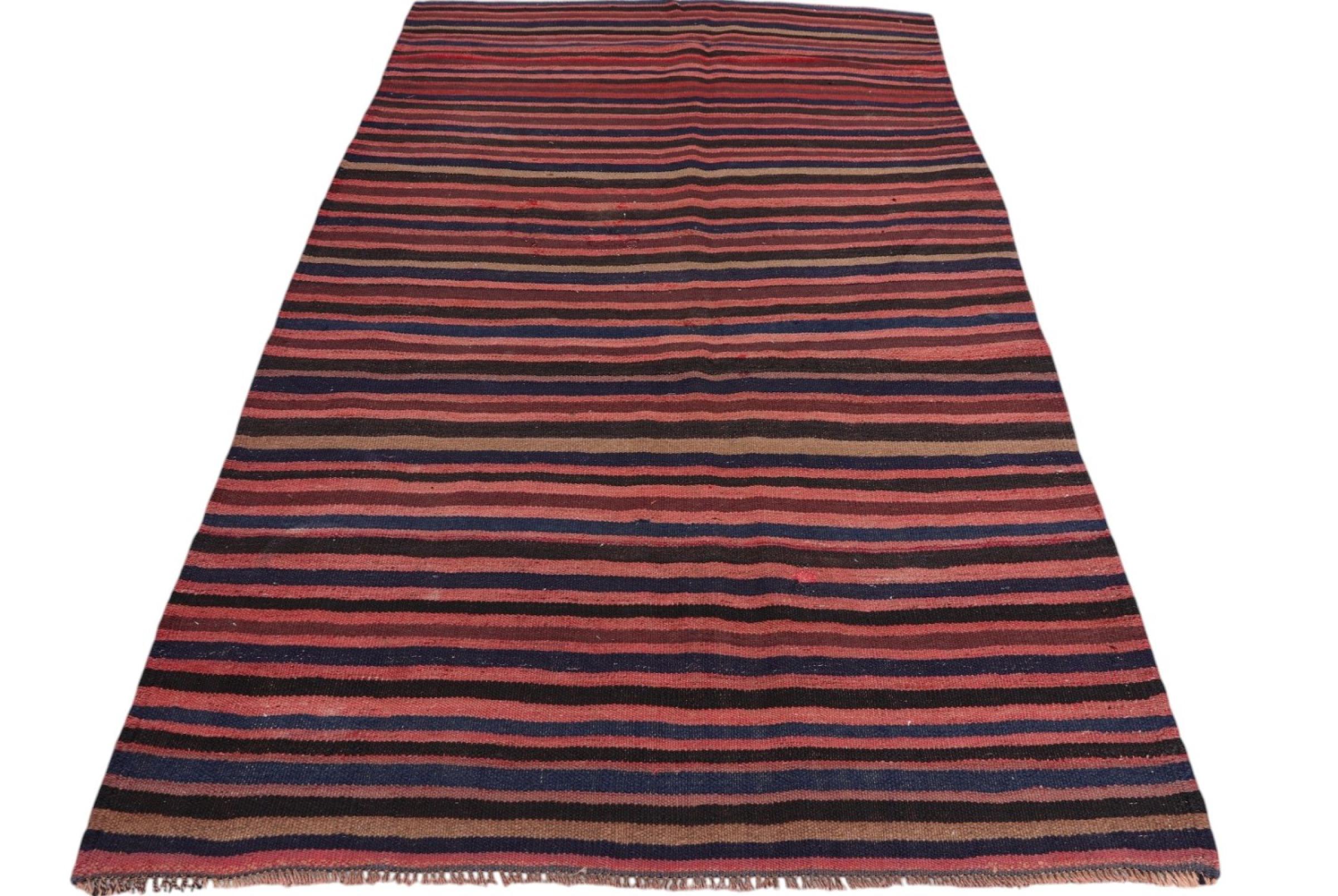 Dieser Teppich ist als Flachgewebe von Hand am Webstuhl gefertigt worden. Als Flachgewebe bezeichnet man Teppiche, die keinen Flor besitzen. Wie der Name verspricht, werden diese Teppiche gewebt und nicht geknotet. Dies hat einen flachen Teppich mit strukturierter Oberfläche zur Folge. Flachgewebe sind nicht so weich und meist dünner als geknüpfte Teppiche. Gleichzeitig sind sie deutlich weniger aufwändig in der Fertigung und lassen sich meist von beiden Seiten (Vorder- und Rückseite) auslegen. Ihre Muster sind in der Regel geometrisch, was durch das Gewebe bedingt ist.