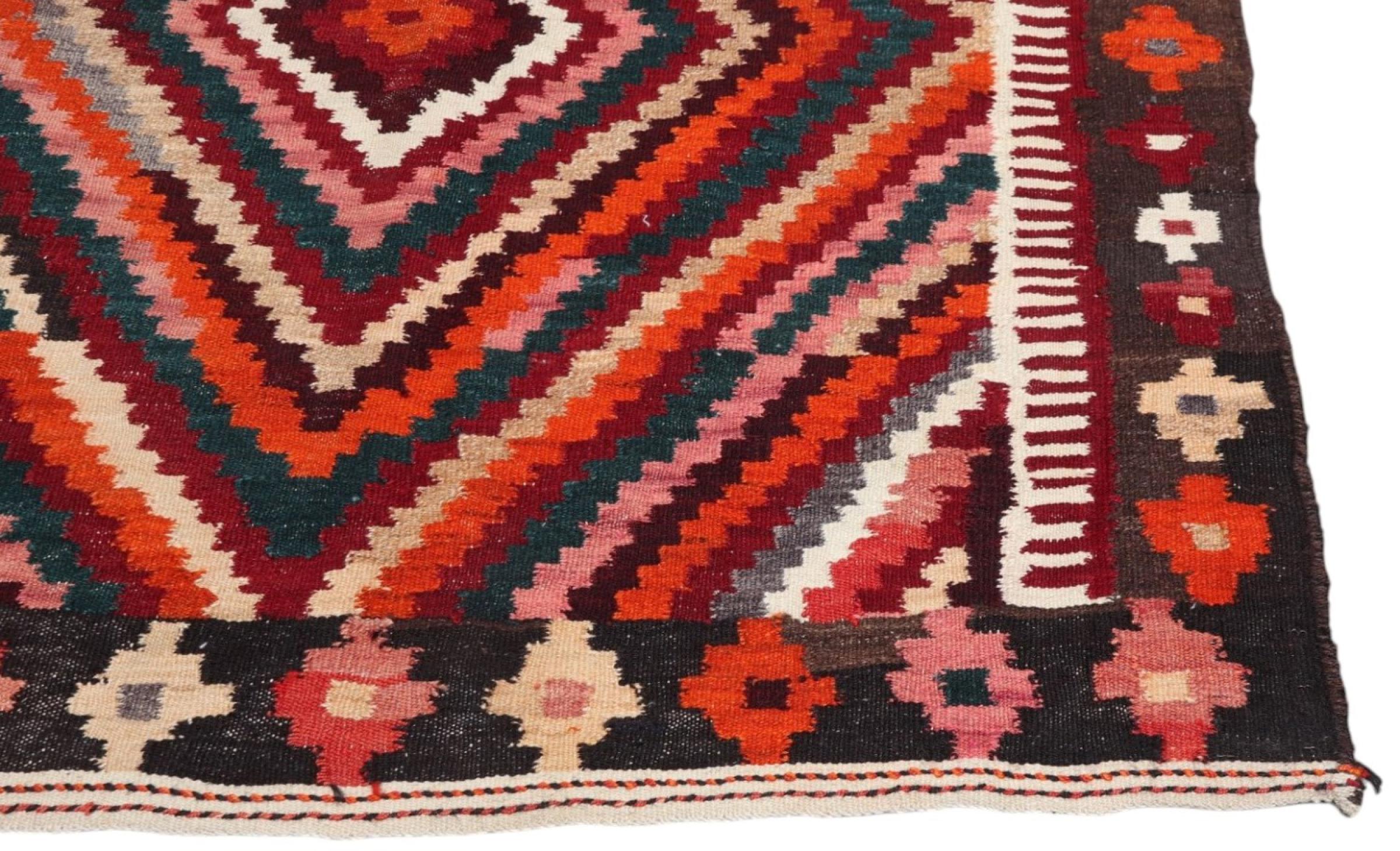 Dieser von Hand gewebte Kelim Fars verbindet persische Muster und Ornamente mit der Tradition von Flachgeweben. Eine tolle und moderne Kombination aus den beliebtesten Konzepten des Orients. Daraus entsteht ein Teppich mit vielfältigen Einsatzmöglichkeiten. Ob als Bettüberwurf oder vor dem Sofa als Teppich – ein Kelim Fars macht es möglich und ist inzwischen in den bekanntesten Einrichtungsmagazinen zu finden. Kelim Fars Teppiche werden im Iran von Hand gewebt und zählen damit zu den qualitativ hochwertigsten Kelims.