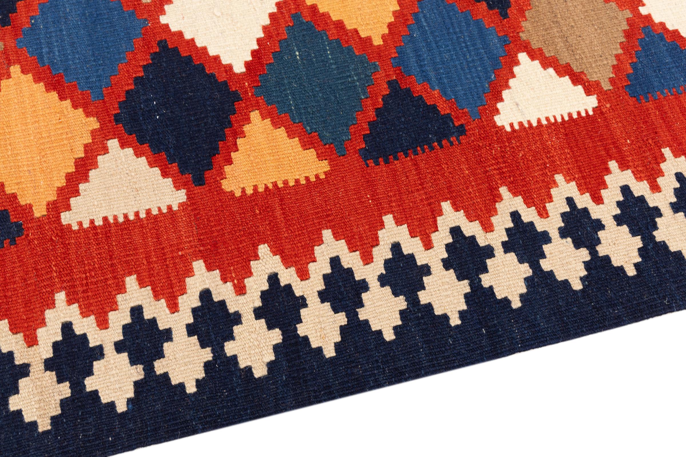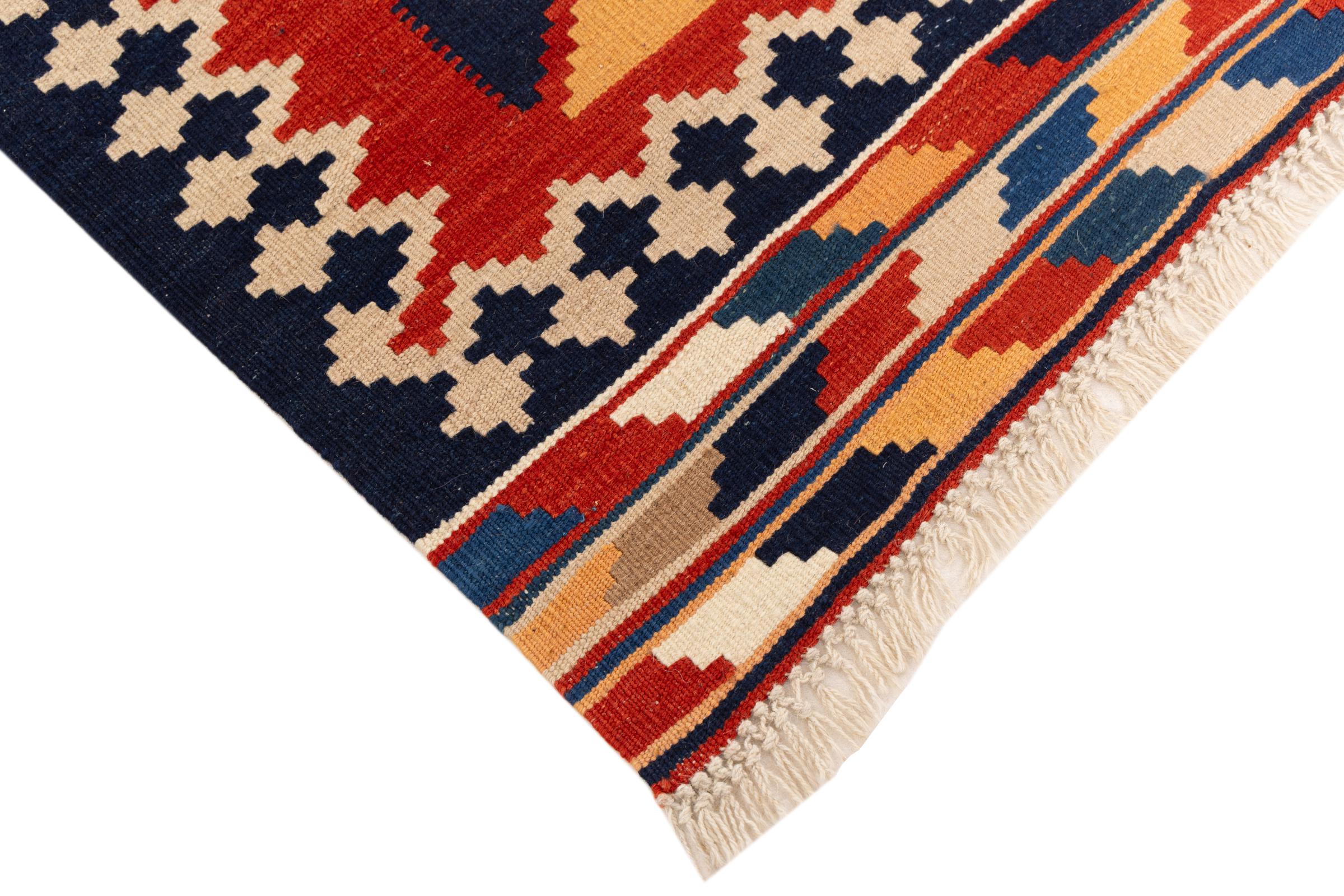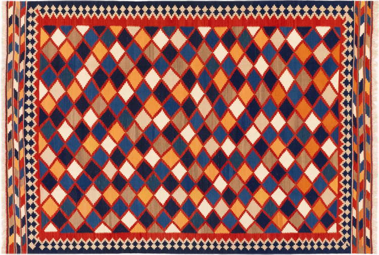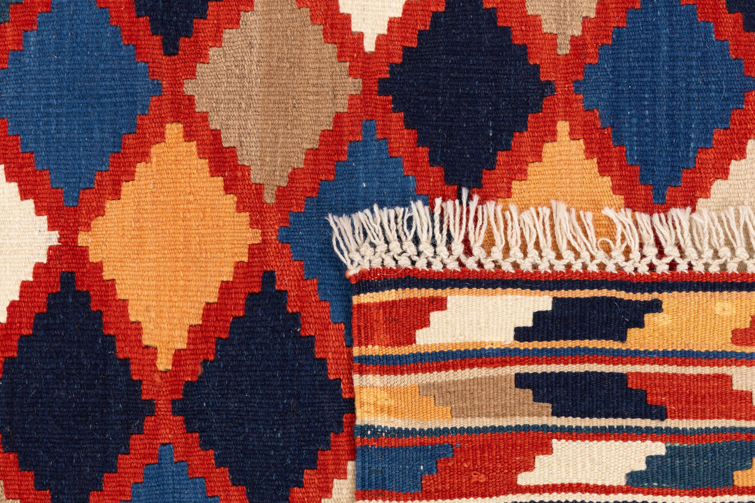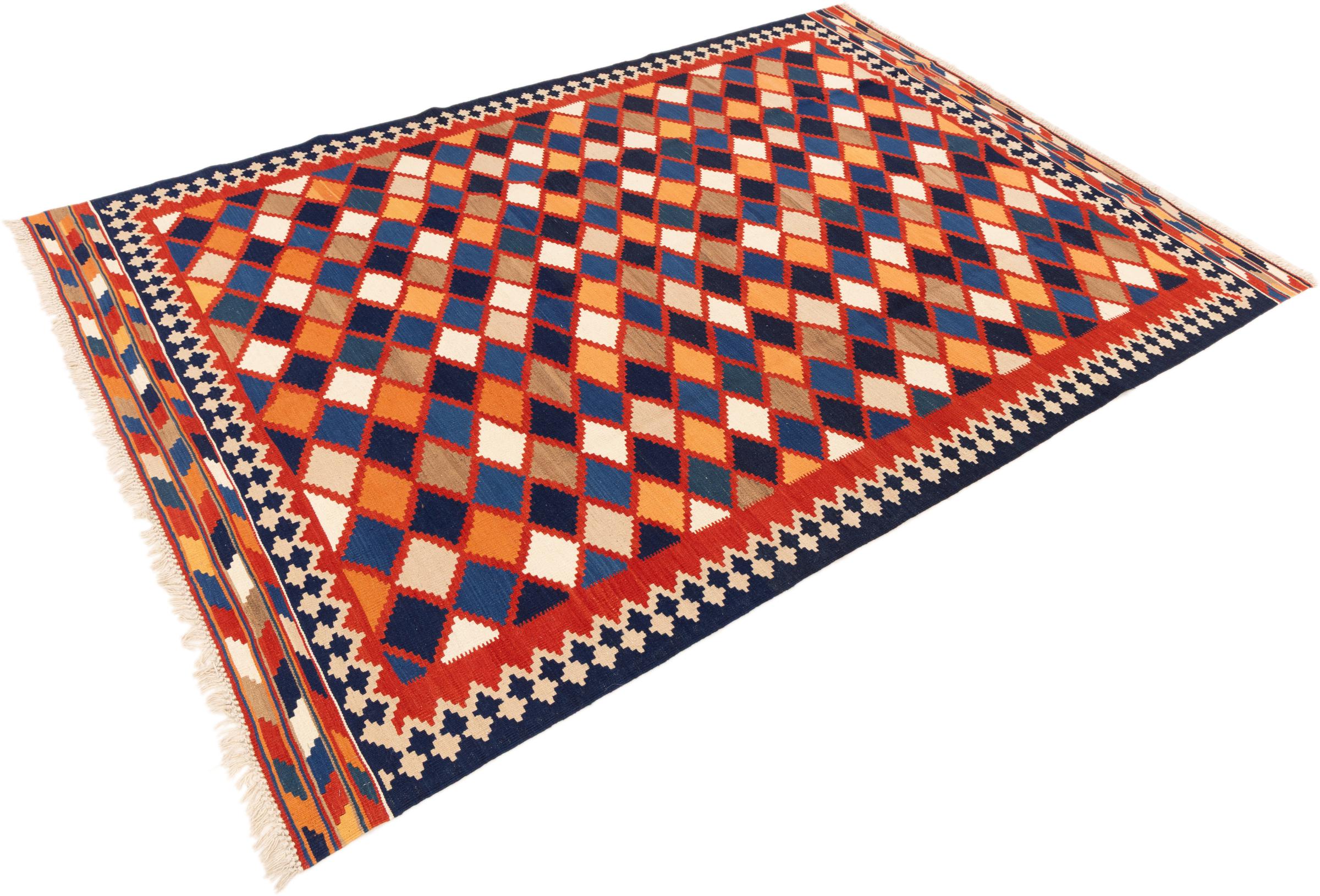 Dieser von Hand gewebte Kelim Fars verbindet persische Muster und Ornamente mit der Tradition von Flachgeweben. Eine tolle und moderne Kombination aus den beliebtesten Konzepten des Orients. Daraus entsteht ein Teppich mit vielfältigen Einsatzmöglichkeiten. Ob als Bettüberwurf oder vor dem Sofa als Teppich – ein Kelim Fars macht es möglich und ist inzwischen in den bekanntesten Einrichtungsmagazinen zu finden. Kelim Fars Teppiche werden im Iran von Hand gewebt und zählen damit zu den qualitativ hochwertigsten Kelims.