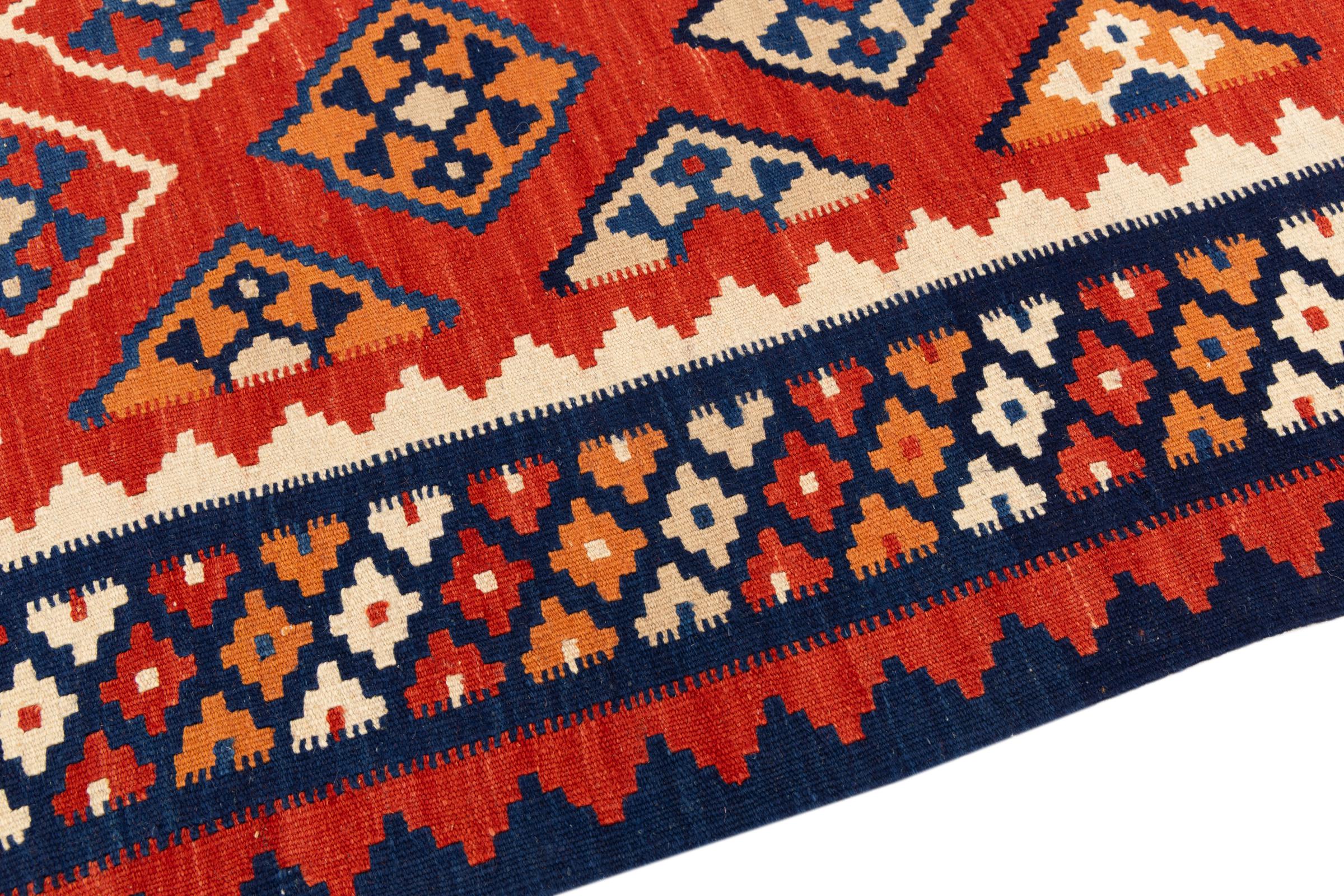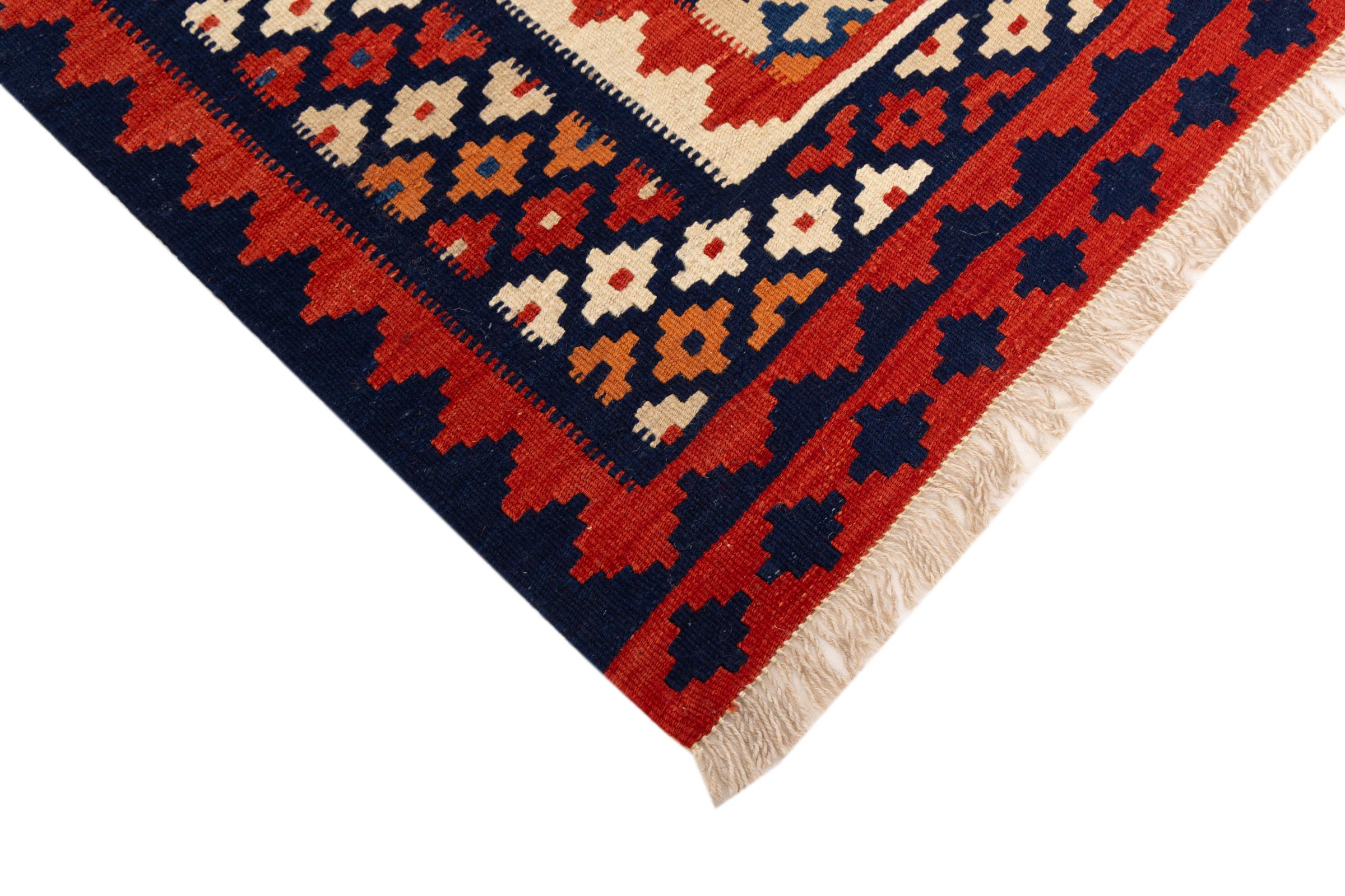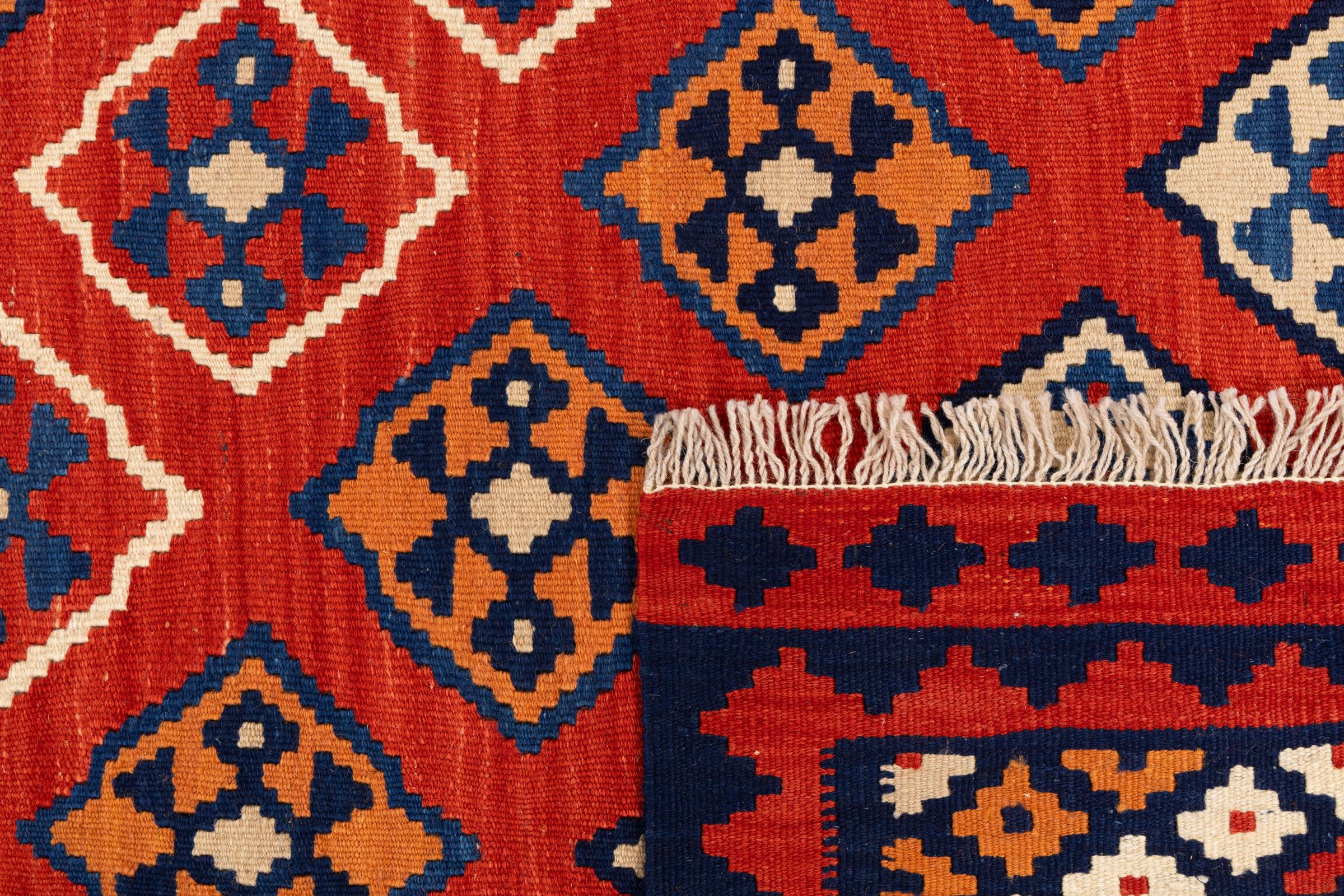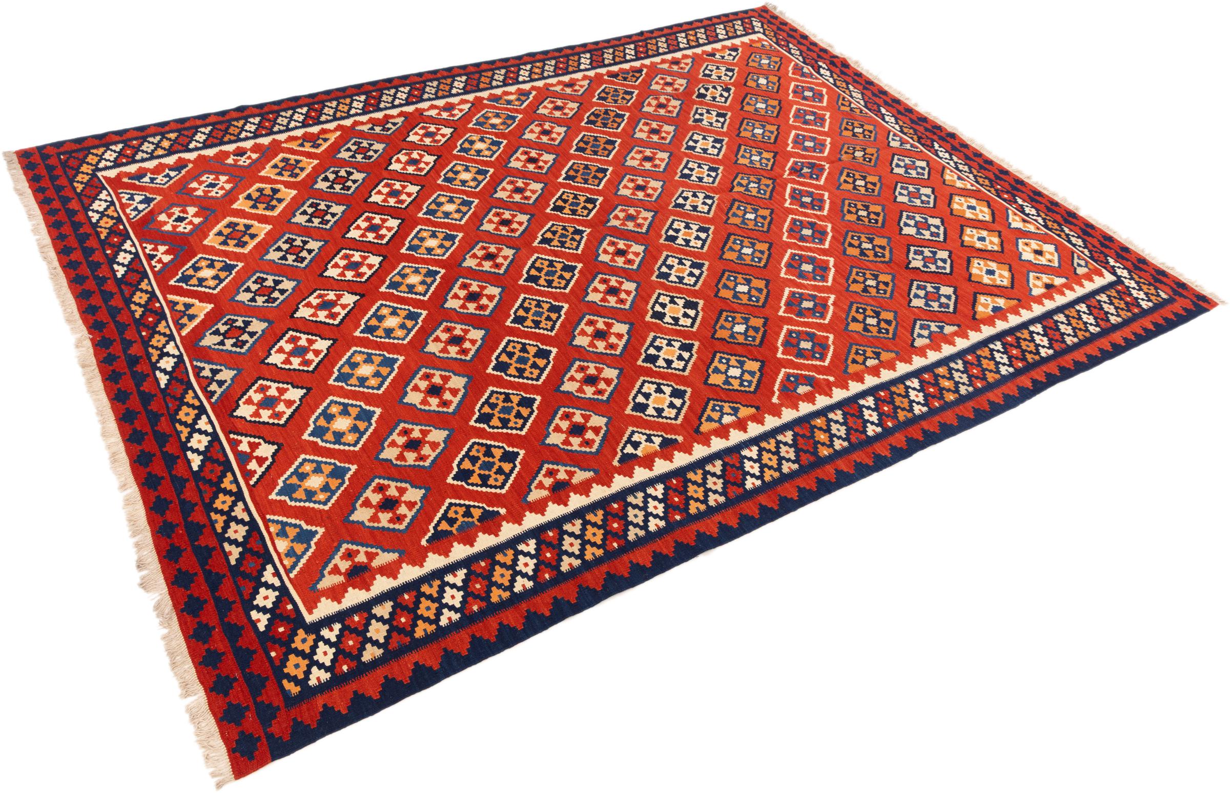 Dieser von Hand gewebte Kelim Fars verbindet persische Muster und Ornamente mit der Tradition von Flachgeweben. Eine tolle und moderne Kombination aus den beliebtesten Konzepten des Orients. Daraus entsteht ein Teppich mit vielfältigen Einsatzmöglichkeiten. Ob als Bettüberwurf oder vor dem Sofa als Teppich – ein Kelim Fars macht es möglich und ist inzwischen in den bekanntesten Einrichtungsmagazinen zu finden. Kelim Fars Teppiche werden im Iran von Hand gewebt und zählen damit zu den qualitativ hochwertigsten Kelims.