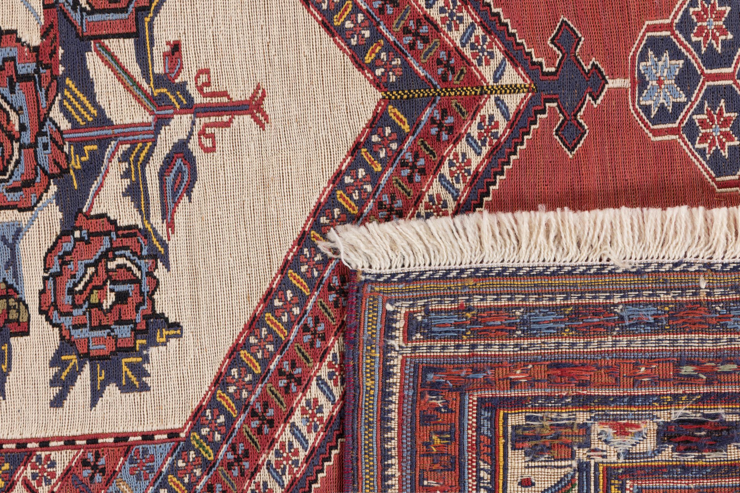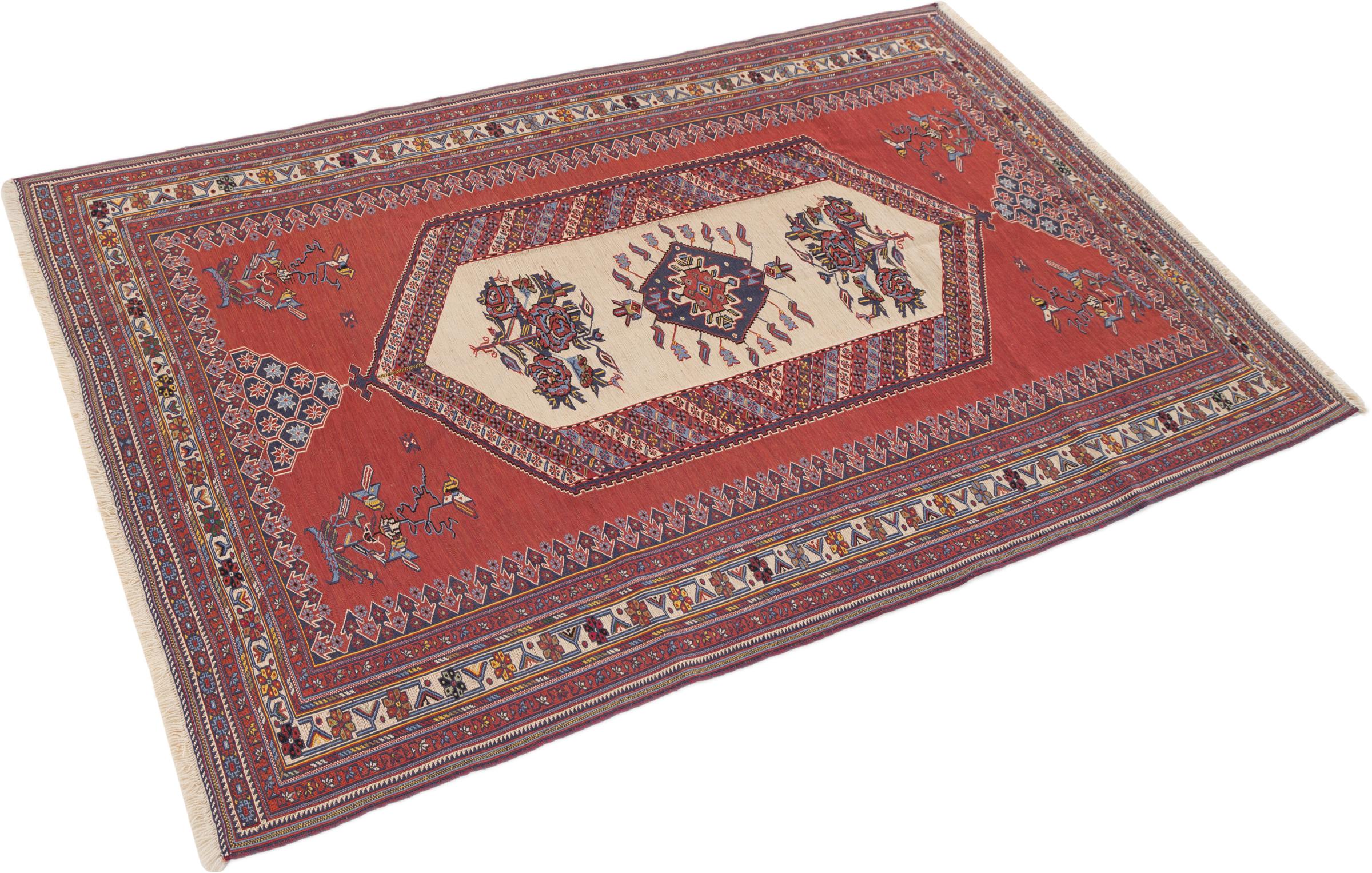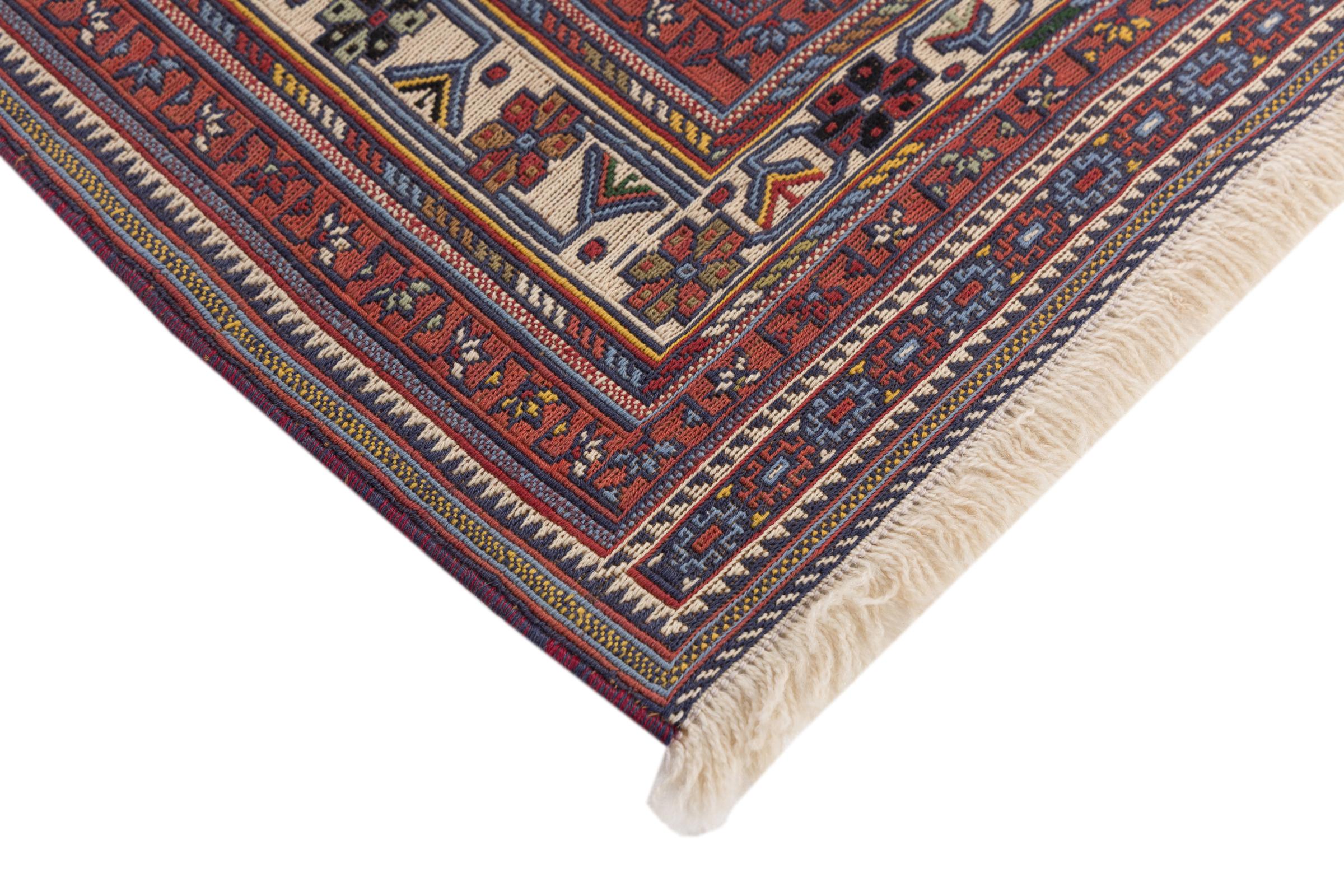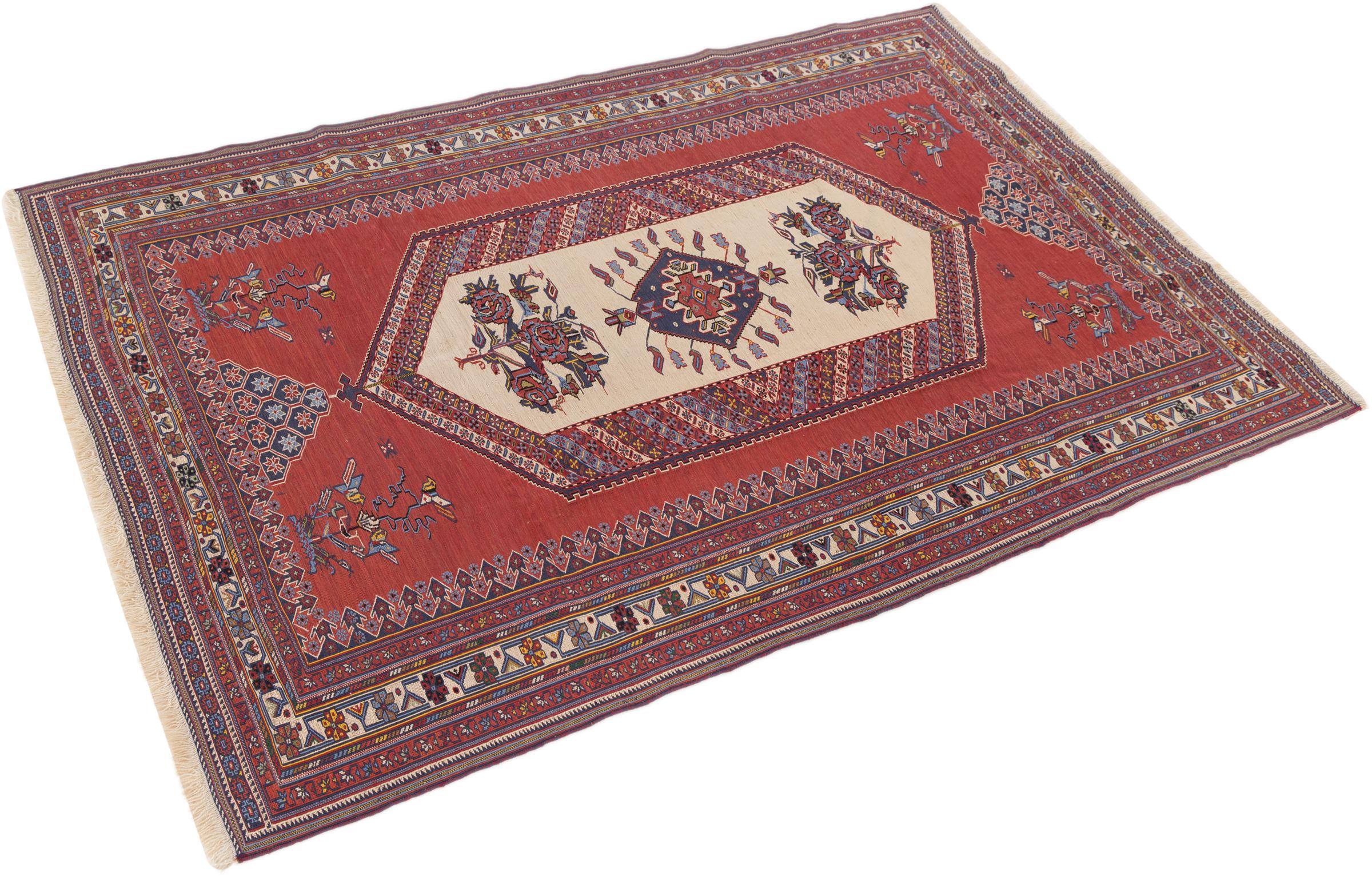 Dieser von Hand gewebte Kelim Fars verbindet persische Muster und Ornamente mit der Tradition von Flachgeweben. Eine tolle und moderne Kombination aus den beliebtesten Konzepten des Orients. Daraus entsteht ein Teppich mit vielfältigen Einsatzmöglichkeiten. Ob als Bettüberwurf oder vor dem Sofa als Teppich – ein Kelim Fars macht es möglich und ist inzwischen in den bekanntesten Einrichtungsmagazinen zu finden. Kelim Fars Teppiche werden im Iran von Hand gewebt und zählen damit zu den qualitativ hochwertigsten Kelims.