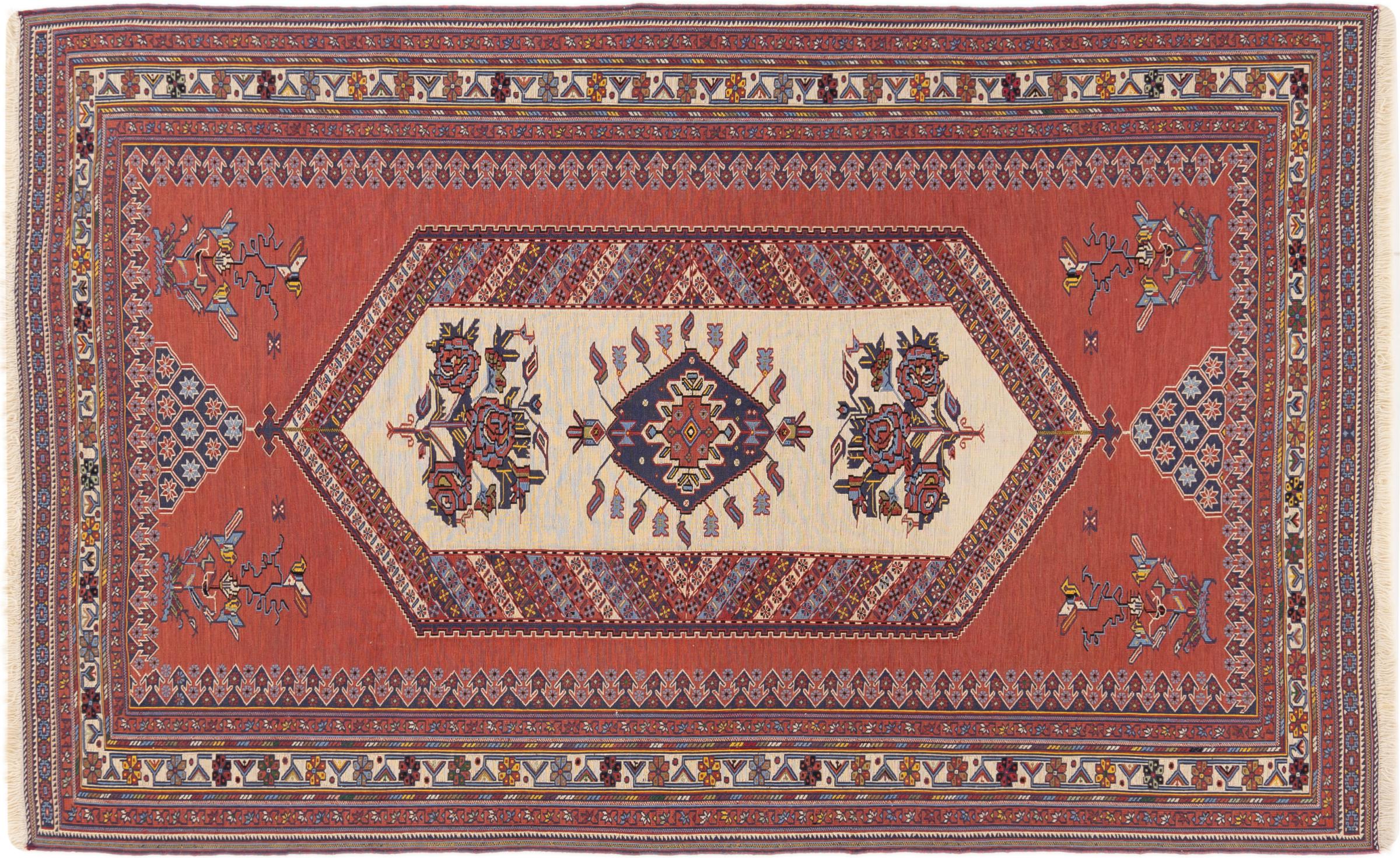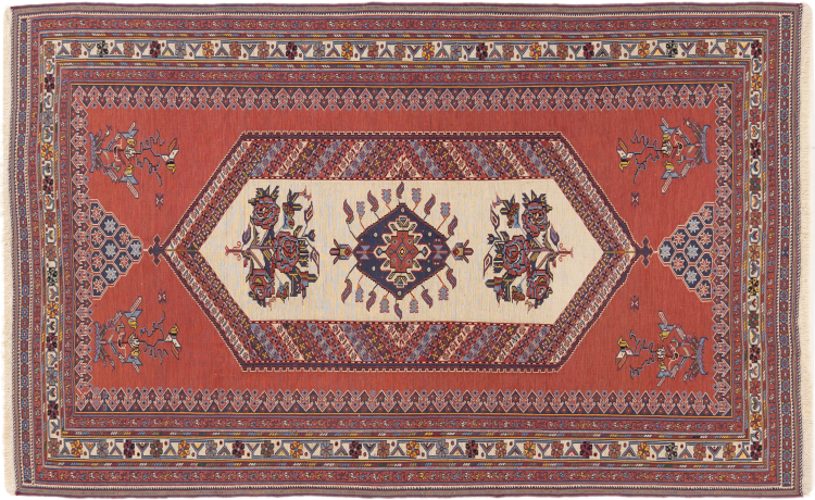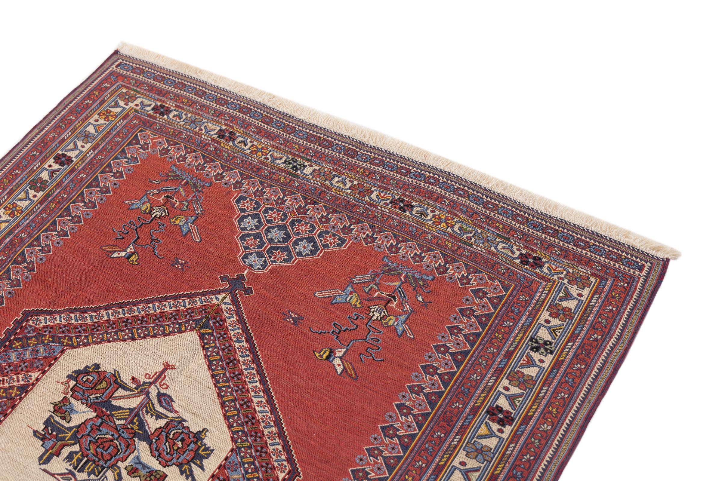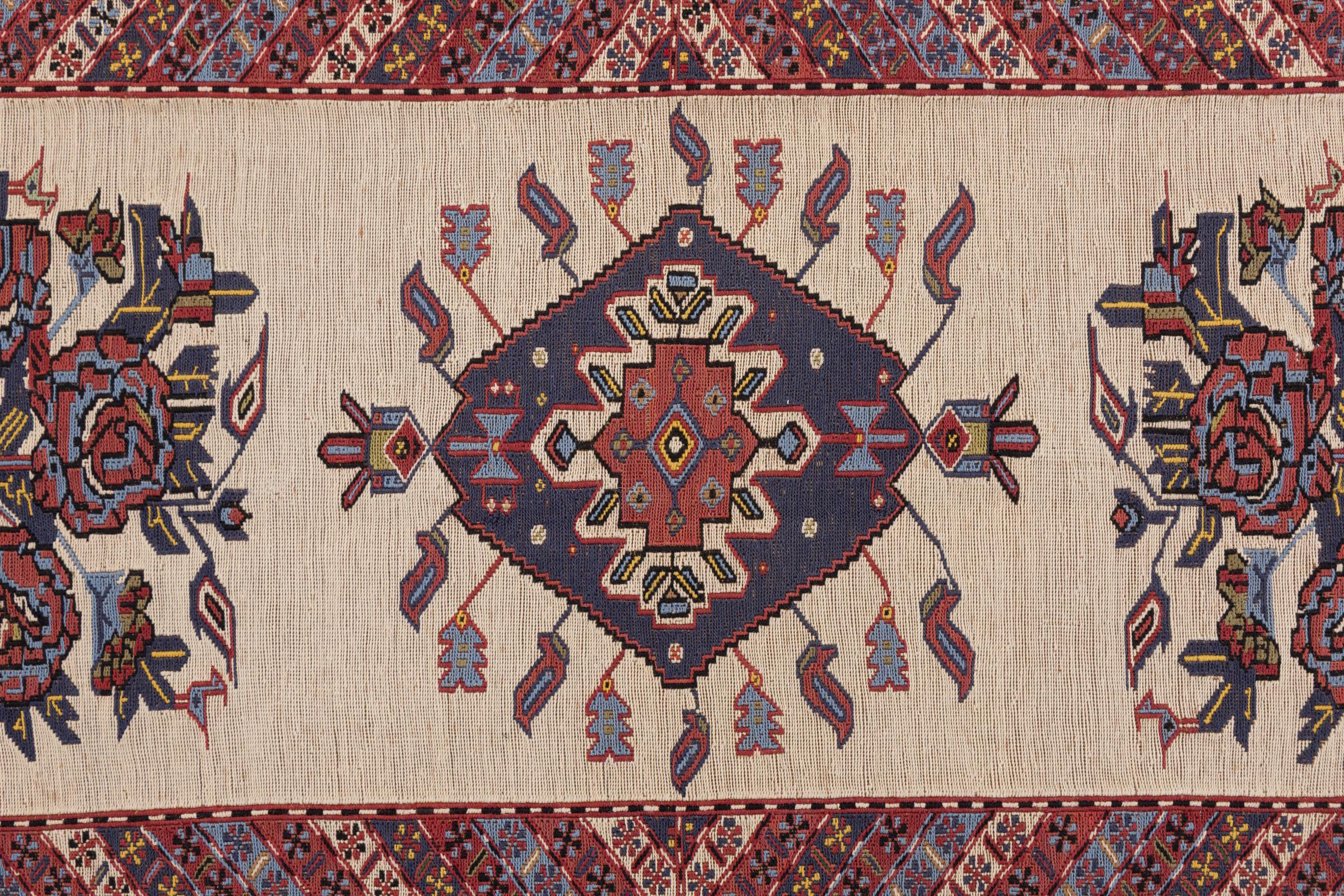 Dieser von Hand gewebte Kelim Fars verbindet persische Muster und Ornamente mit der Tradition von Flachgeweben. Eine tolle und moderne Kombination aus den beliebtesten Konzepten des Orients. Daraus entsteht ein Teppich mit vielfältigen Einsatzmöglichkeiten. Ob als Bettüberwurf oder vor dem Sofa als Teppich – ein Kelim Fars macht es möglich und ist inzwischen in den bekanntesten Einrichtungsmagazinen zu finden. Kelim Fars Teppiche werden im Iran von Hand gewebt und zählen damit zu den qualitativ hochwertigsten Kelims.