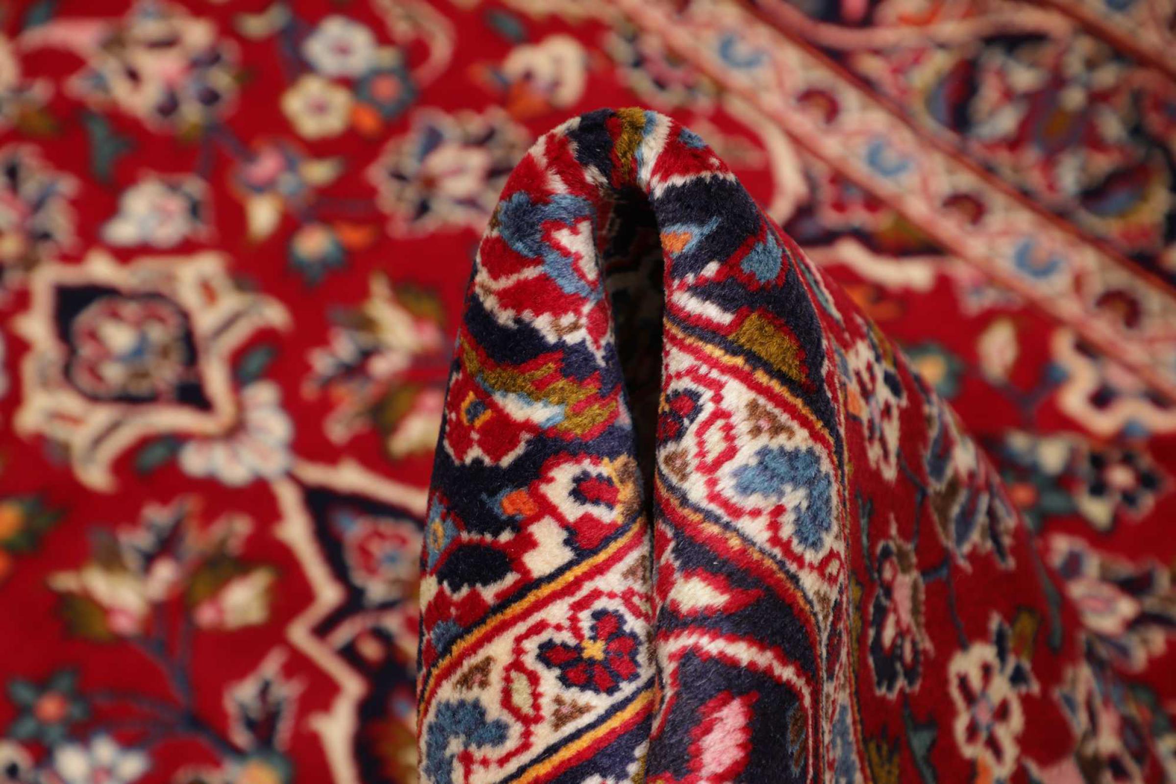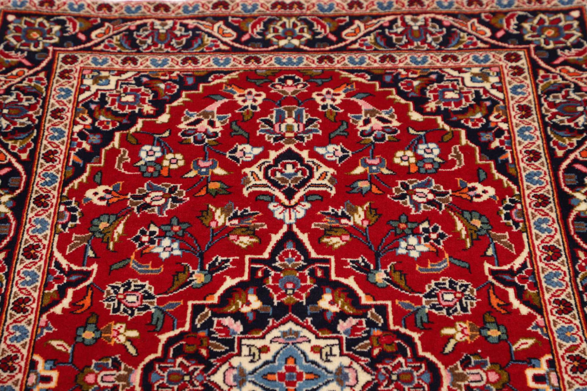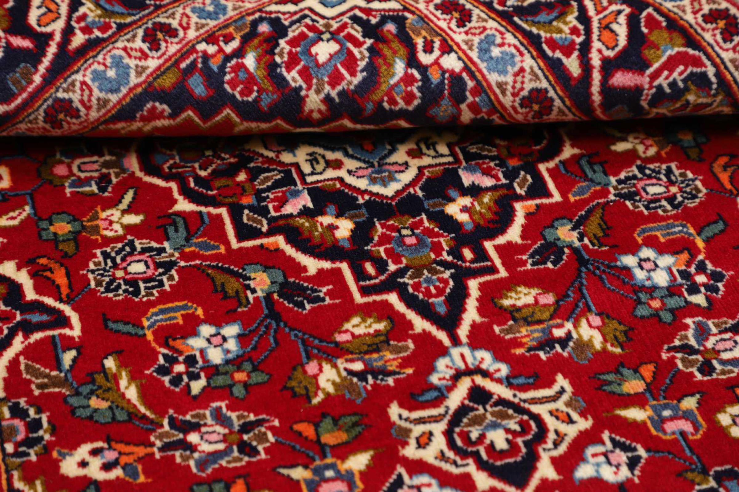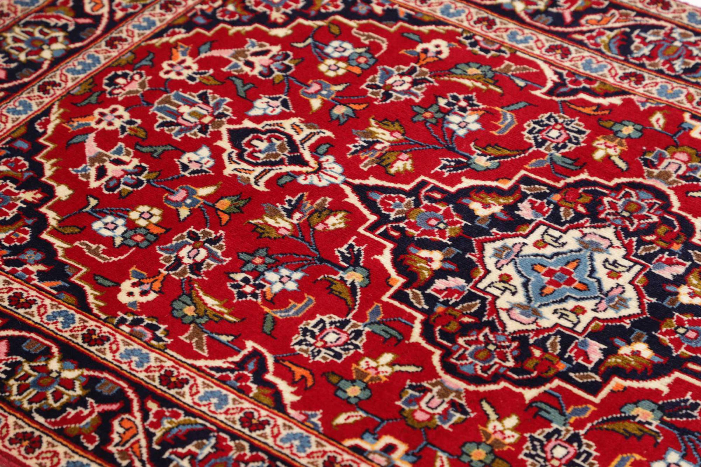 Dieser Teppich aus Keshan (Kashan) ist in seinem sehr traditionellen und typisch persischen Design mit wunderschönen Ornamenten gehalten. Keshan-Teppiche erfreuen sich aufgrund ihres außergewöhnlich eleganten Designs großer Beliebtheit. Diese Teppiche stammen aus Keshan, einer Stadt an der alten Seidenstraße. Dieser Teppich wurde aus hochwertiger Schafwolle von Hand geknüpft und wird ein einzigartiges Highlight in Ihrem Zuhause sein.