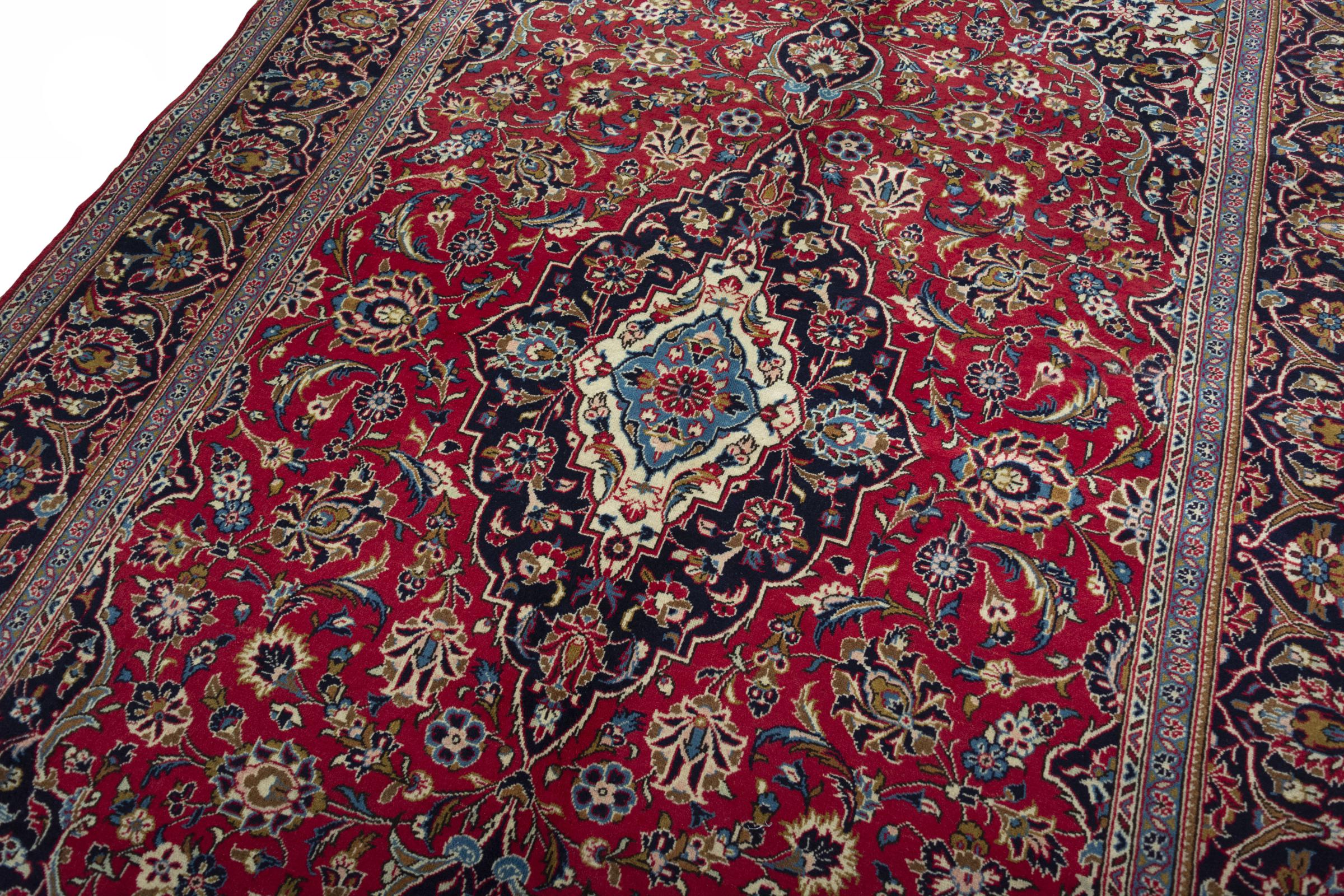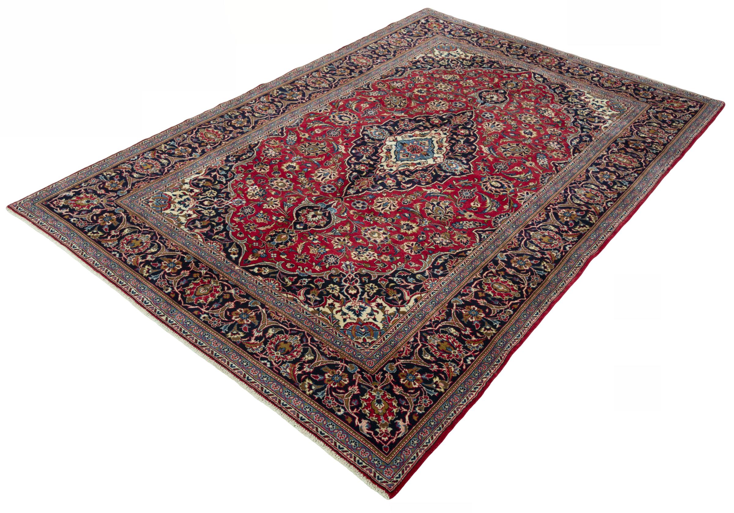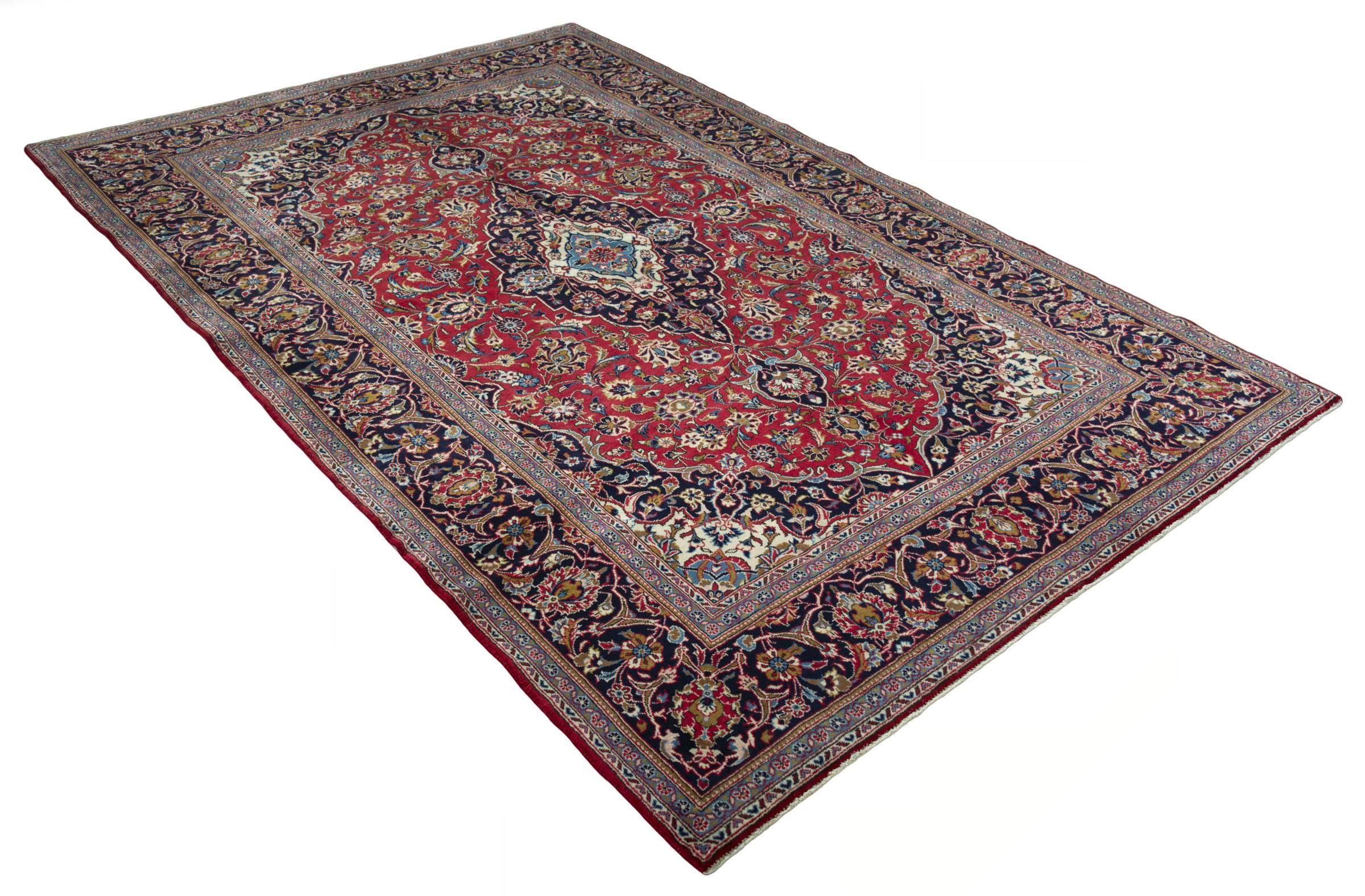 Dieser Teppich aus Keshan (Kashan) ist in seinem sehr traditionellen und typisch persischen Design mit wunderschönen Ornamenten gehalten. Keshan-Teppiche erfreuen sich aufgrund ihres außergewöhnlich eleganten Designs großer Beliebtheit. Diese Teppiche stammen aus Keshan, einer Stadt an der alten Seidenstraße. Dieser Teppich wurde aus hochwertiger Schafwolle von Hand geknüpft und wird ein einzigartiges Highlight in Ihrem Zuhause sein.