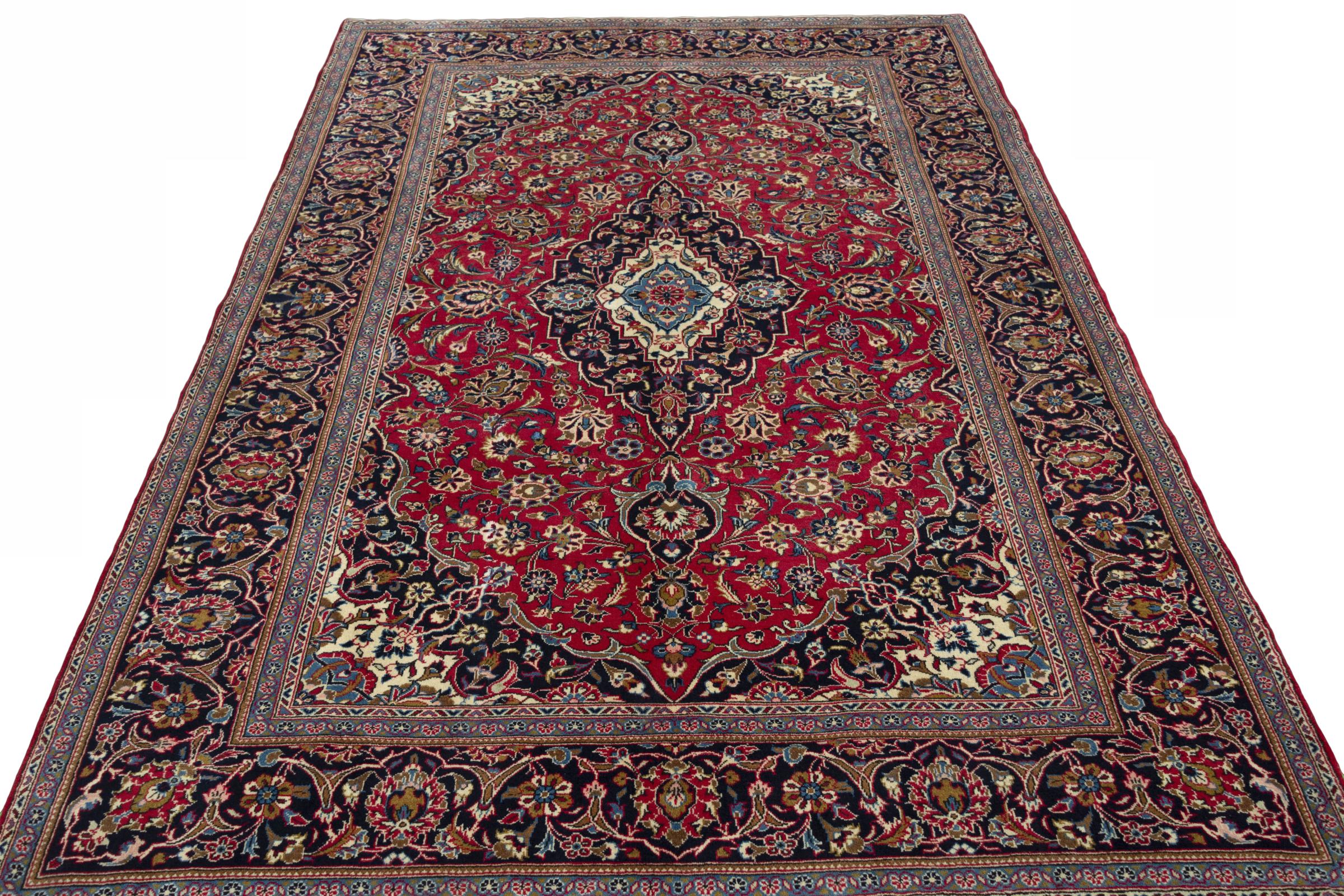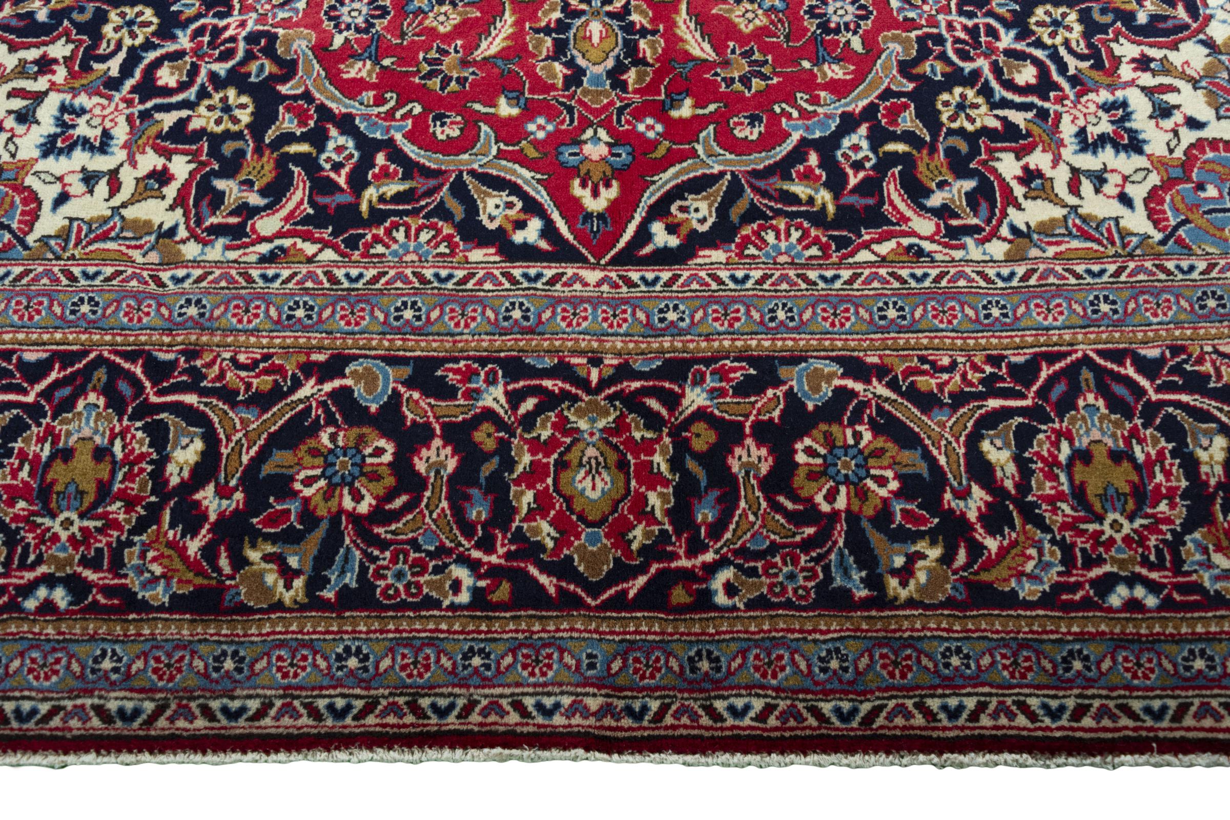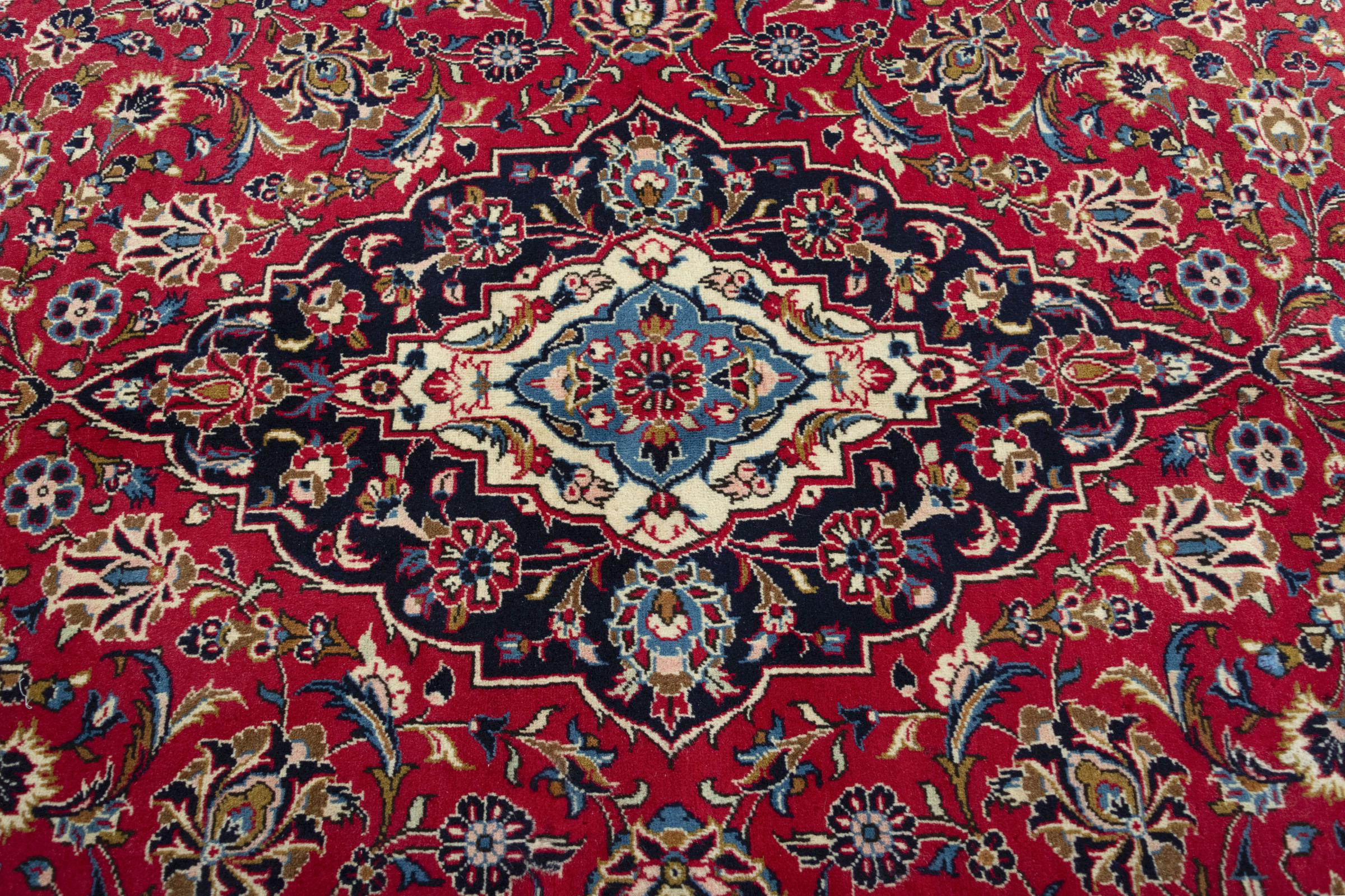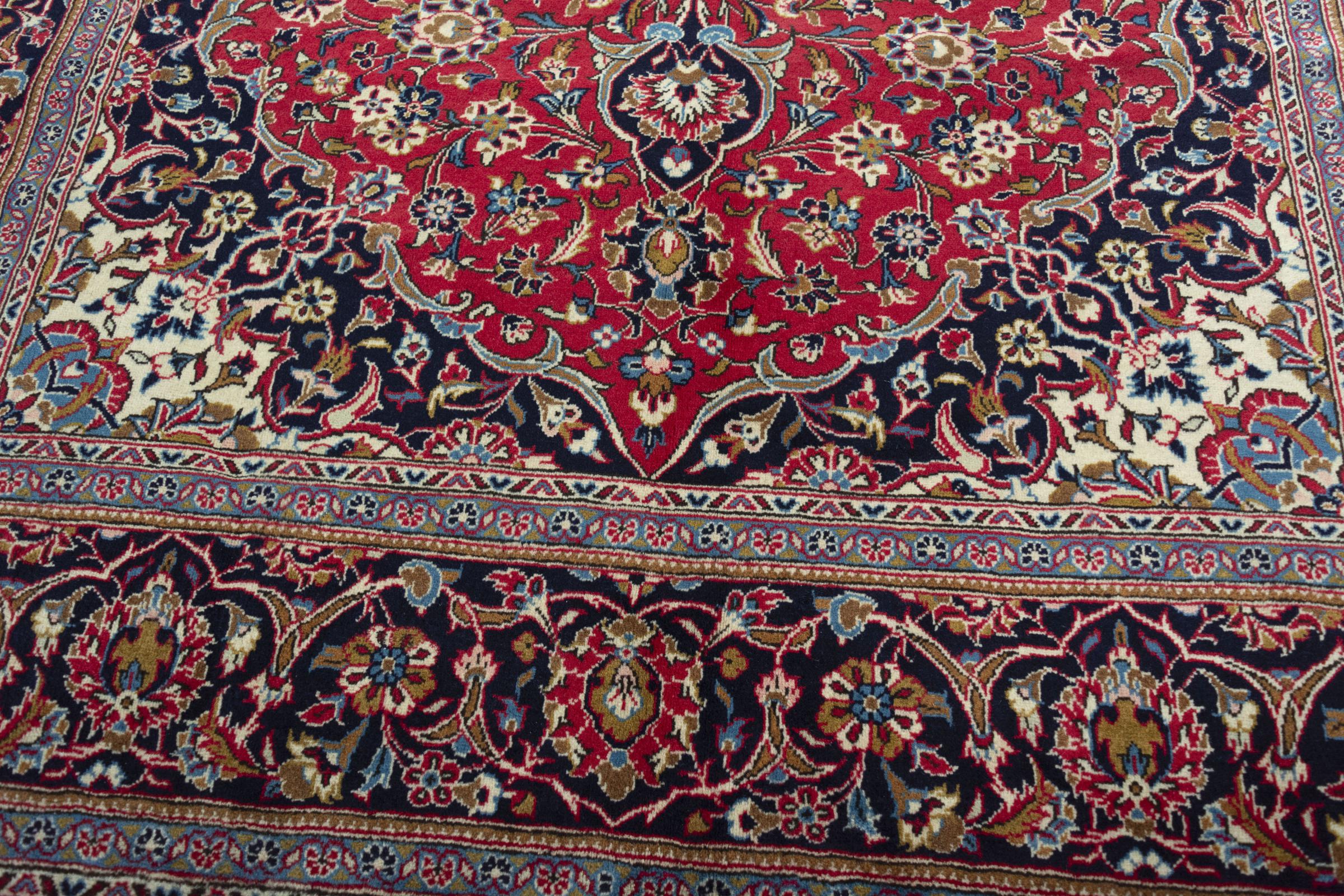 Dieser Teppich aus Keshan (Kashan) ist in seinem sehr traditionellen und typisch persischen Design mit wunderschönen Ornamenten gehalten. Keshan-Teppiche erfreuen sich aufgrund ihres außergewöhnlich eleganten Designs großer Beliebtheit. Diese Teppiche stammen aus Keshan, einer Stadt an der alten Seidenstraße. Dieser Teppich wurde aus hochwertiger Schafwolle von Hand geknüpft und wird ein einzigartiges Highlight in Ihrem Zuhause sein.