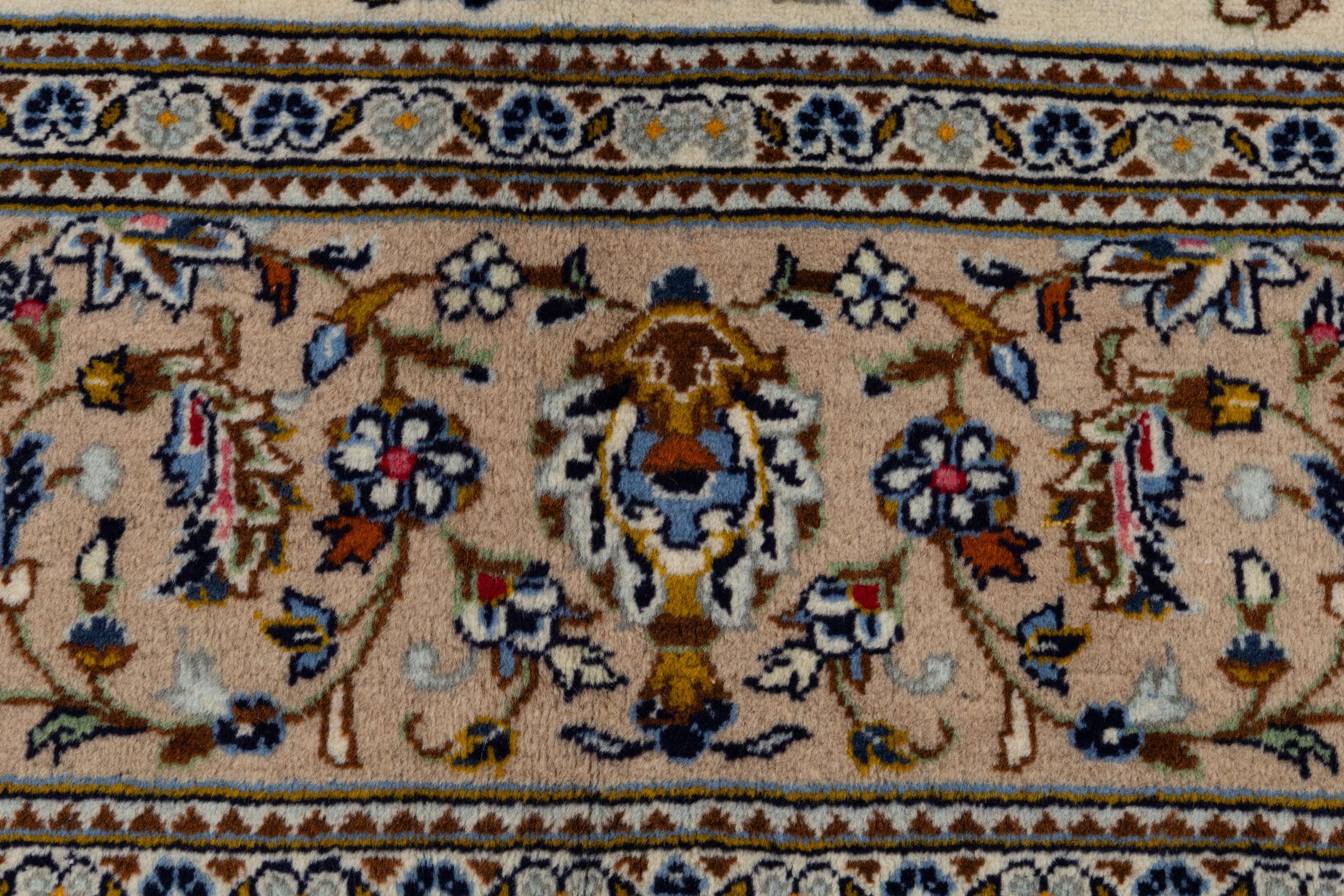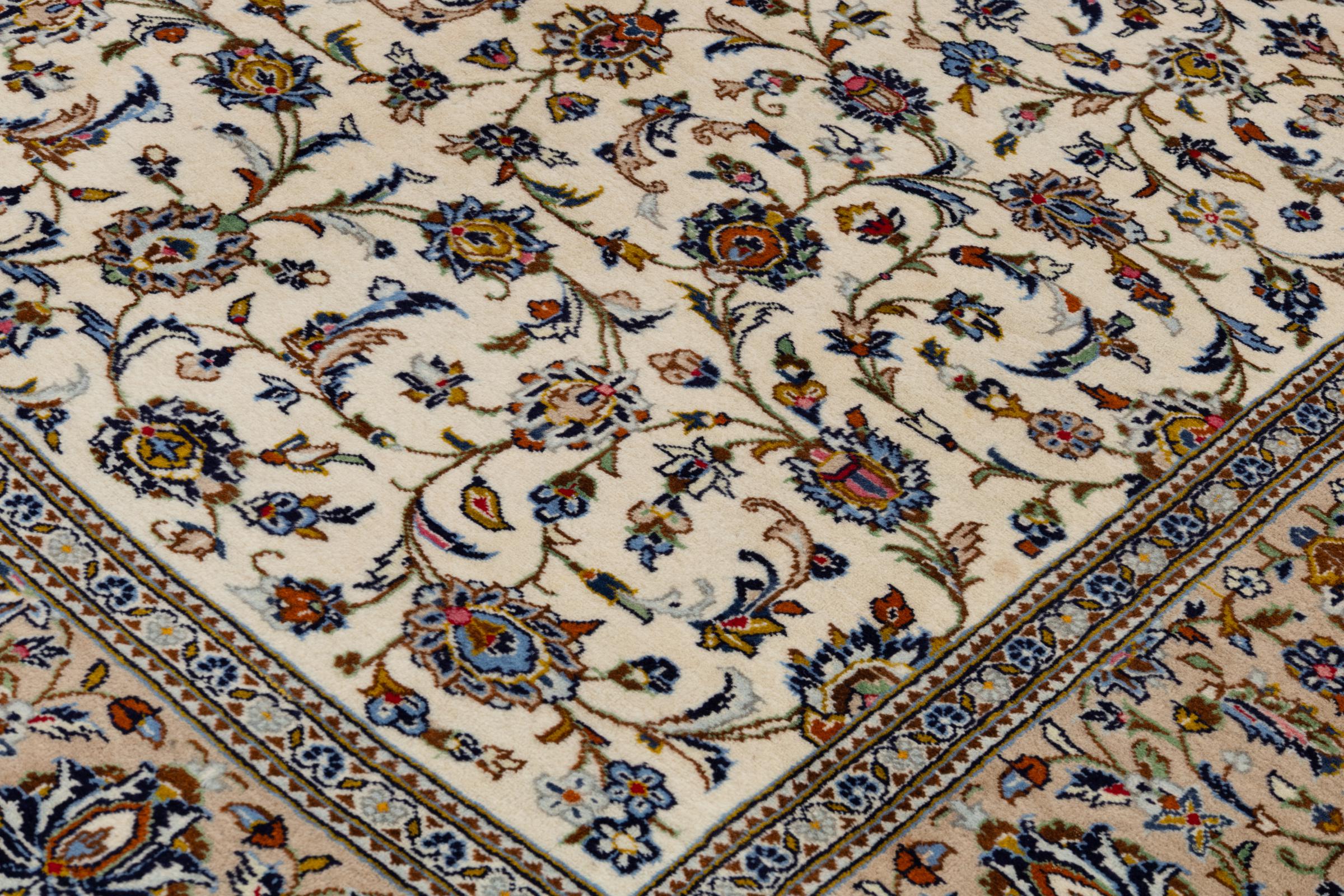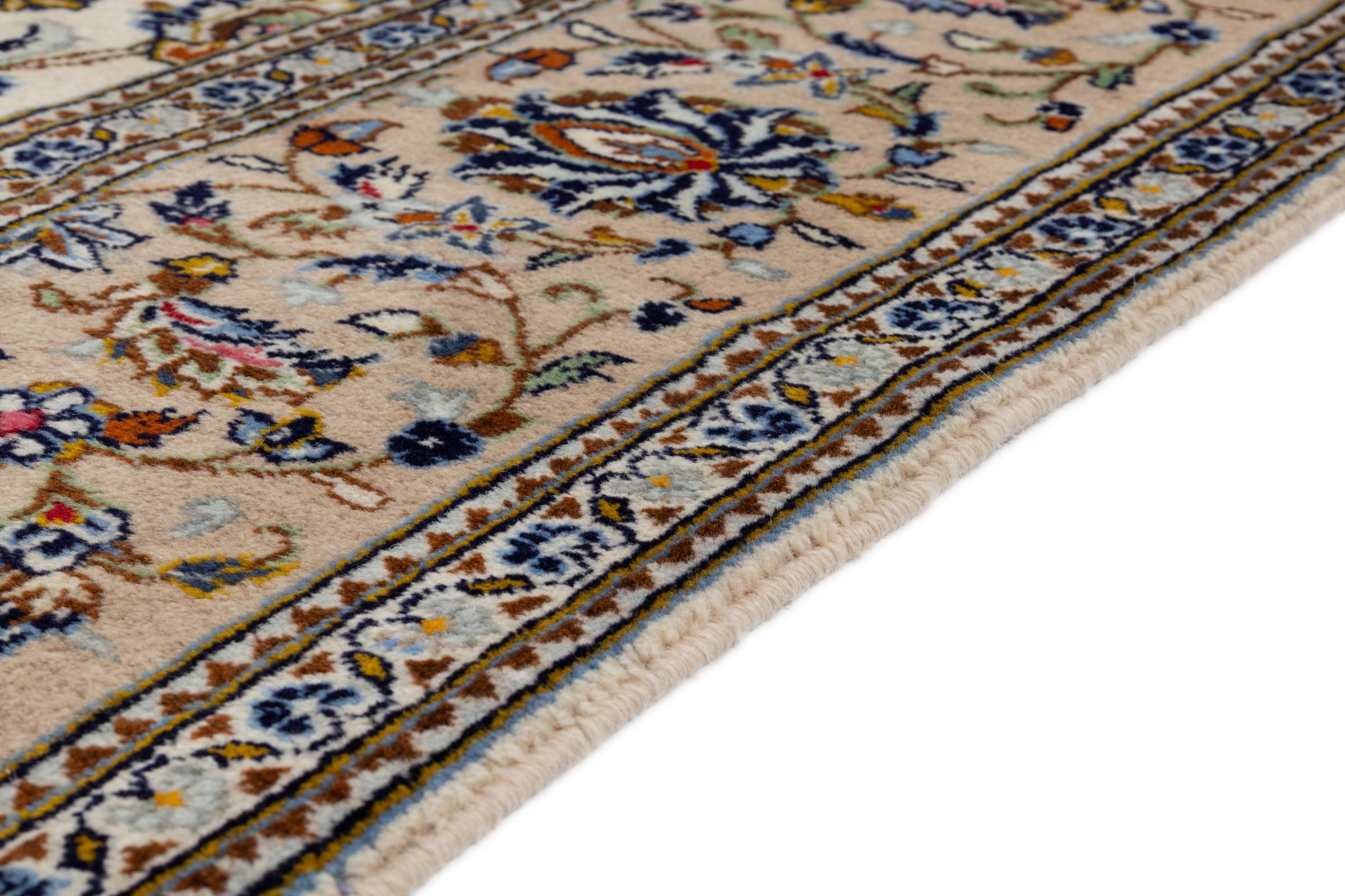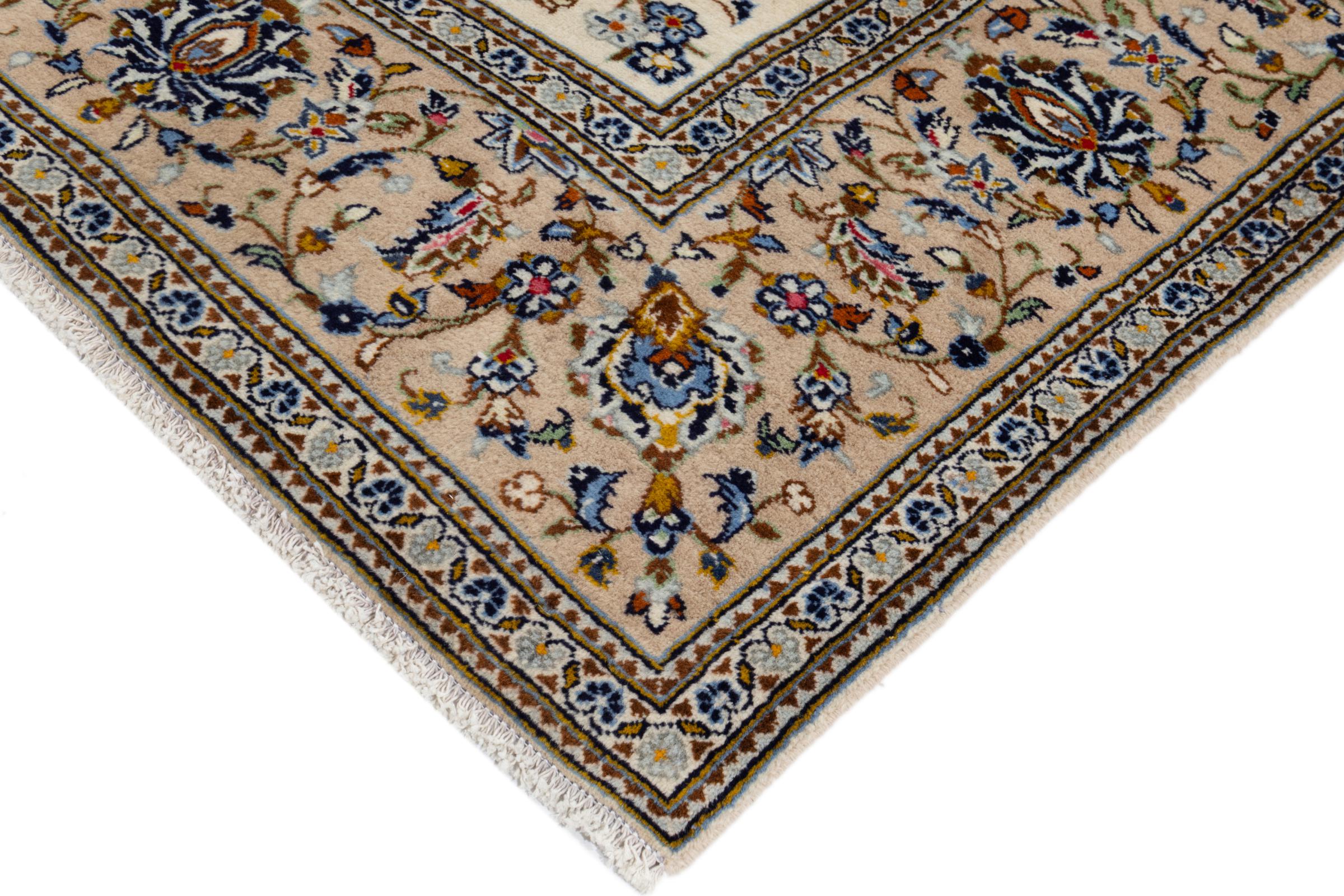 Dieser antike Keshan Teppich ist ein wunderschönes Einzelstück. Er wurde vor Jahrzehnten in der Stadt Kashan im Iran von Hand geknüpft. Seine Ornamente sind in beständigen und starken Farben mit viel Erfahrung geknüpft worden. Dank der hohen Knotendichte erscheinen die Muster fein und lebendig. Der Teppich wurde von unseren Experten vollständig überprüft, gereinigt und gepflegt. Dieser antike Perserteppich aus einer der beliebtesten Provenienzen ist ein äußerst wertvolles Stück traditionellen Kunsthandwerks der Geschichte Persiens.