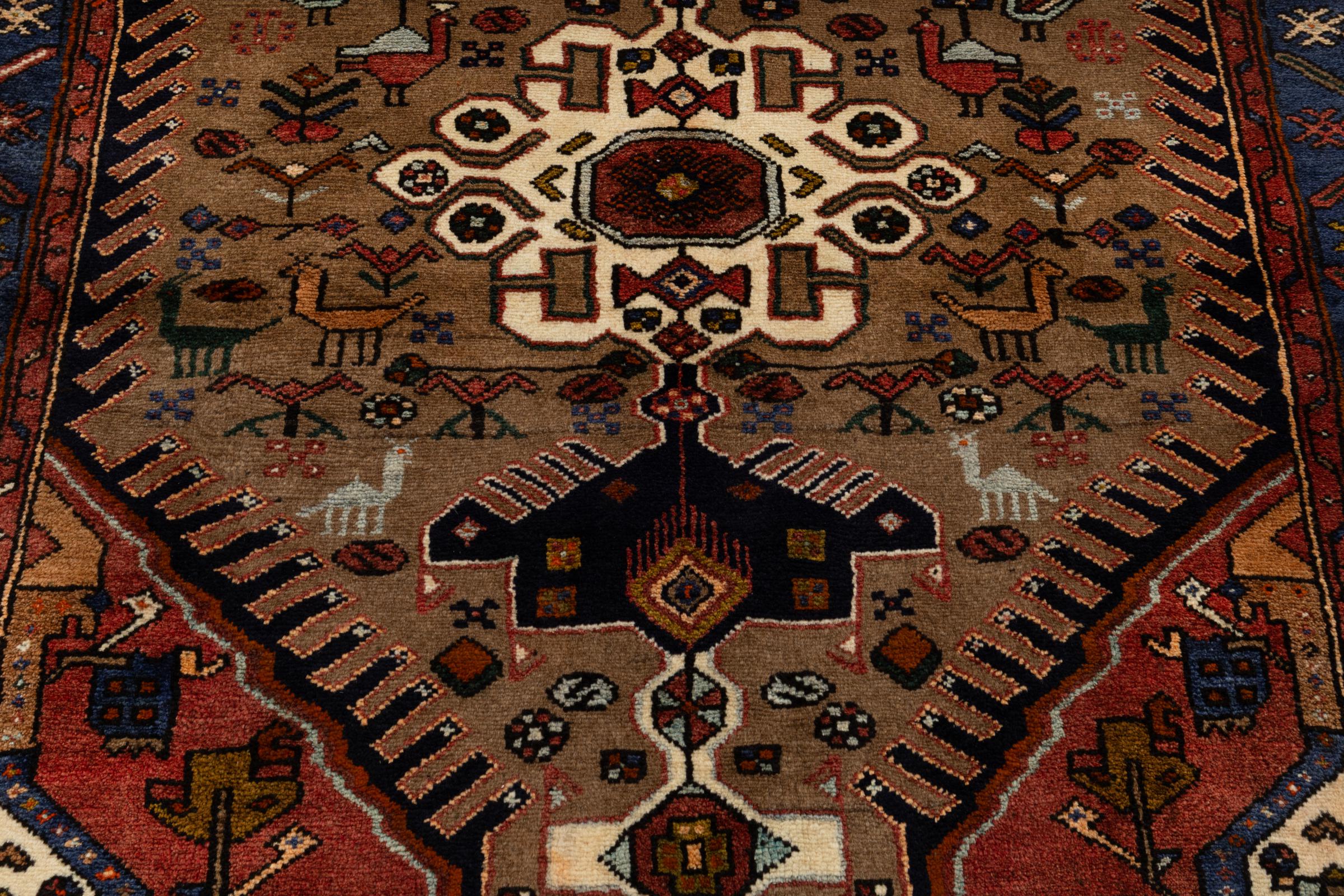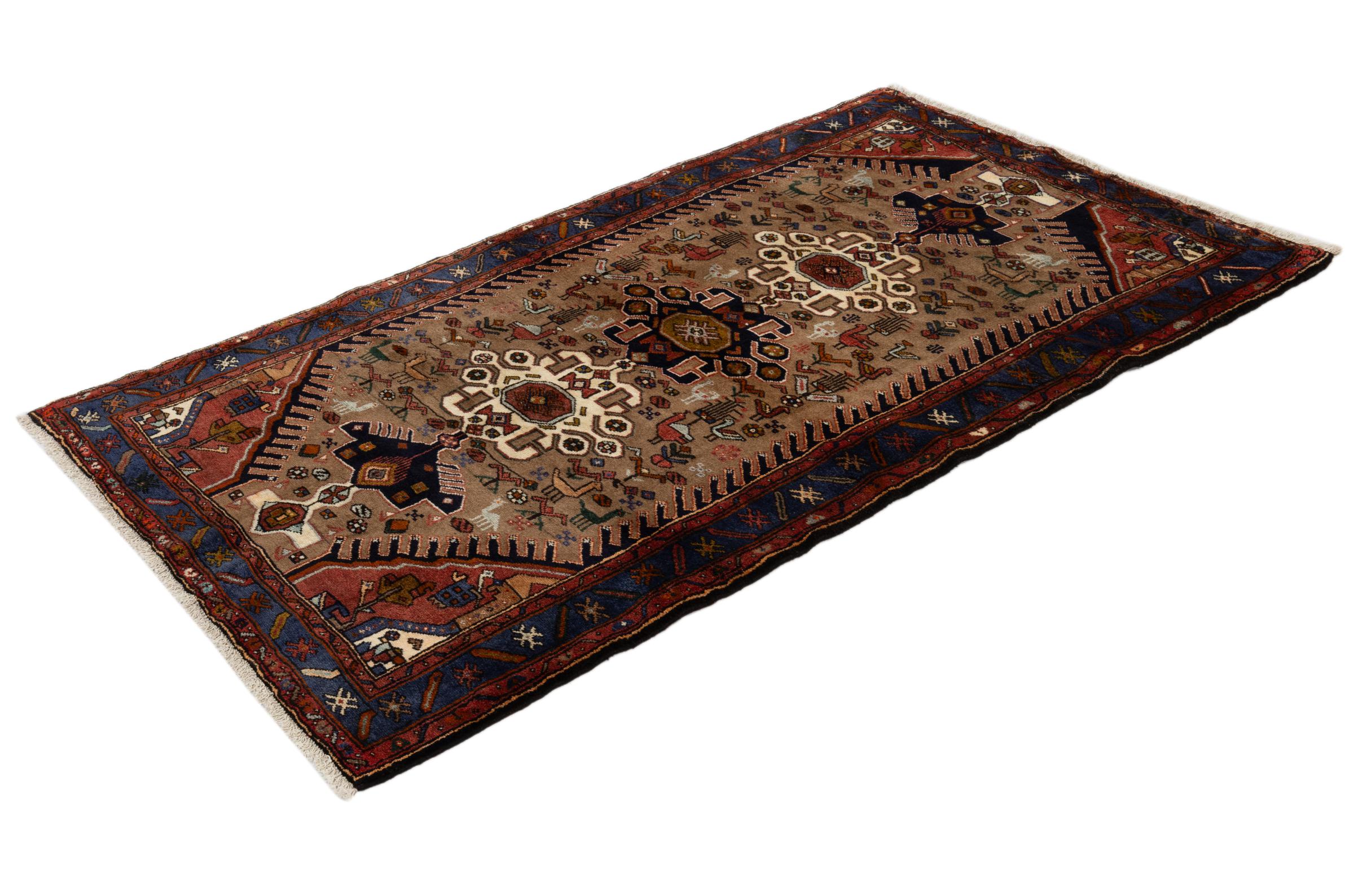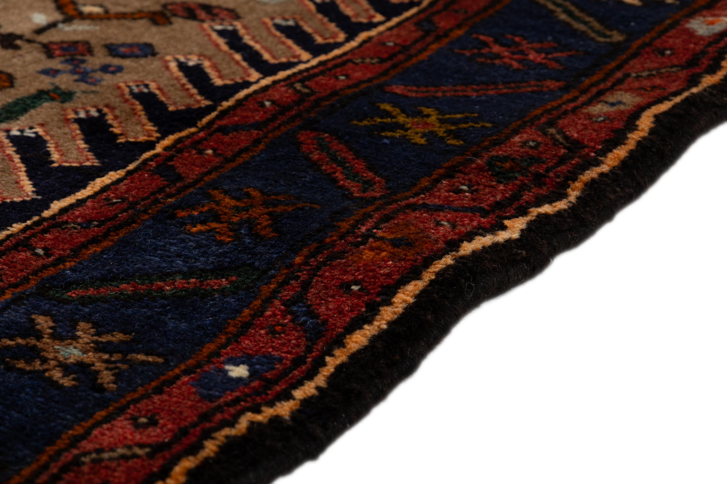 Dies ist ein echter Perserteppich aus Khamseh, einem Dorf der Region Hamadan. Er besitzt die typischen Farben und geradlinigen Muster eines Dorfteppichs. Zudem ist dieser Teppich in traditioneller persischer Knüpfkunst entstanden.