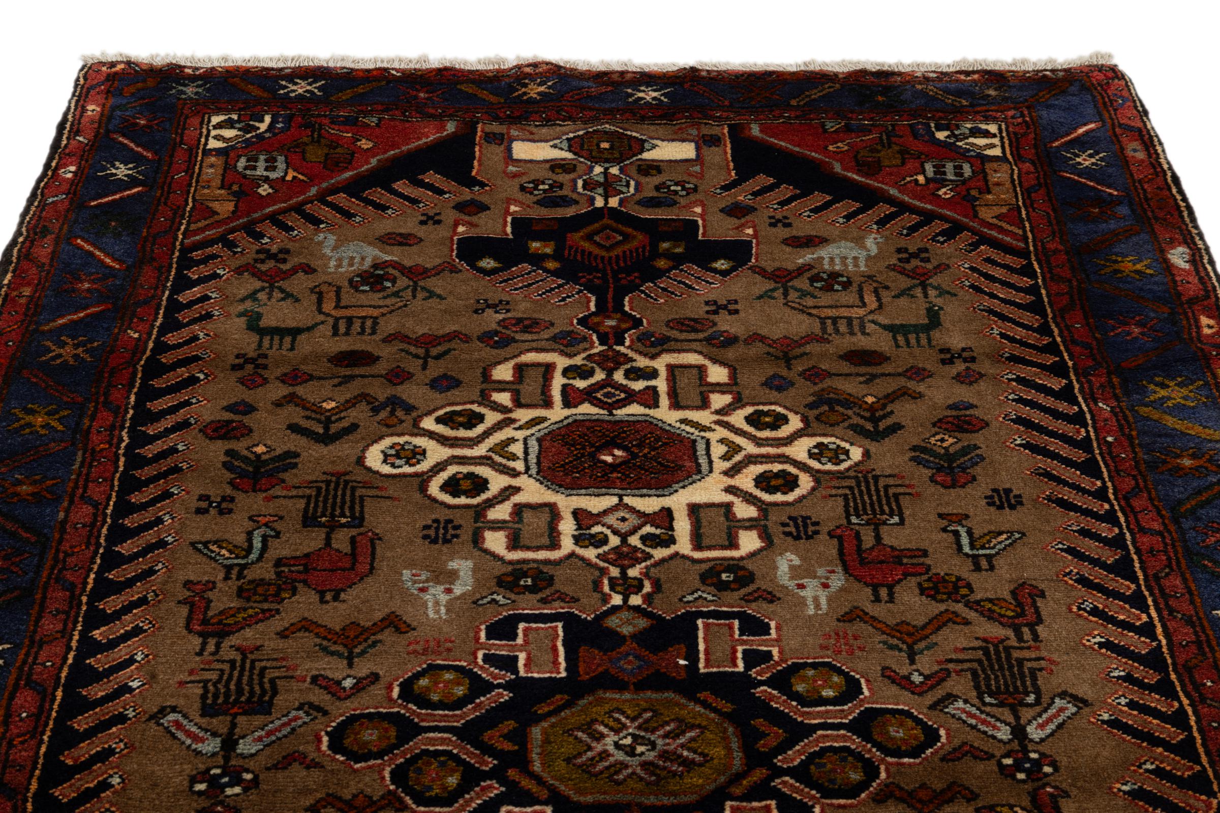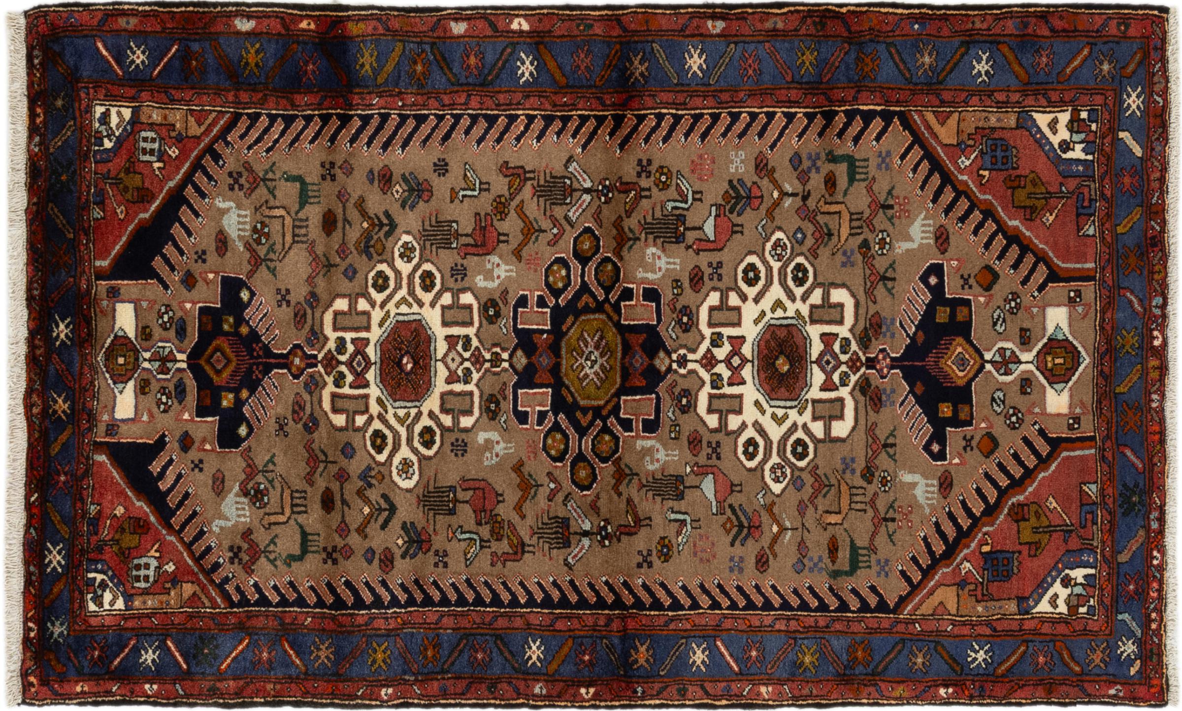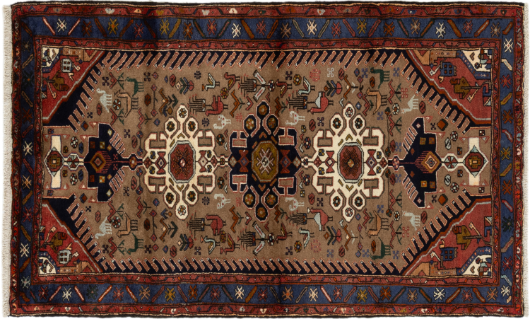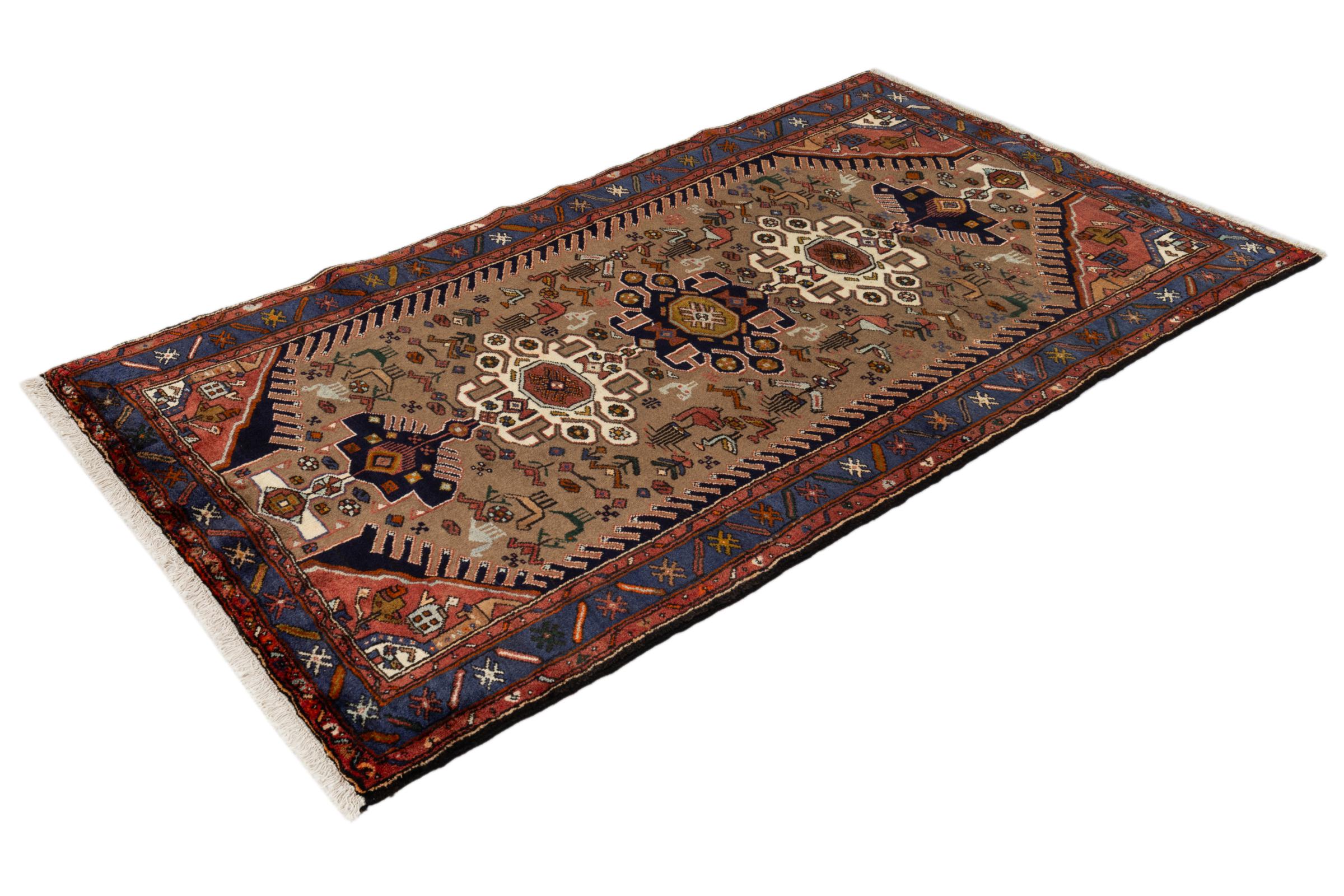Dies ist ein echter Perserteppich aus Khamseh, einem Dorf der Region Hamadan. Er besitzt die typischen Farben und geradlinigen Muster eines Dorfteppichs. Zudem ist dieser Teppich in traditioneller persischer Knüpfkunst entstanden.