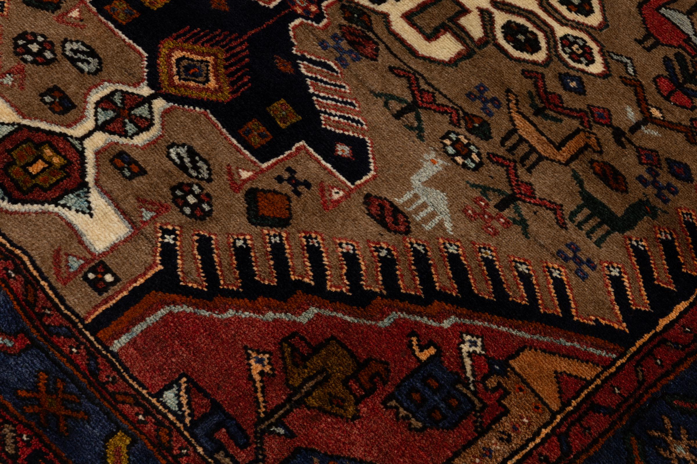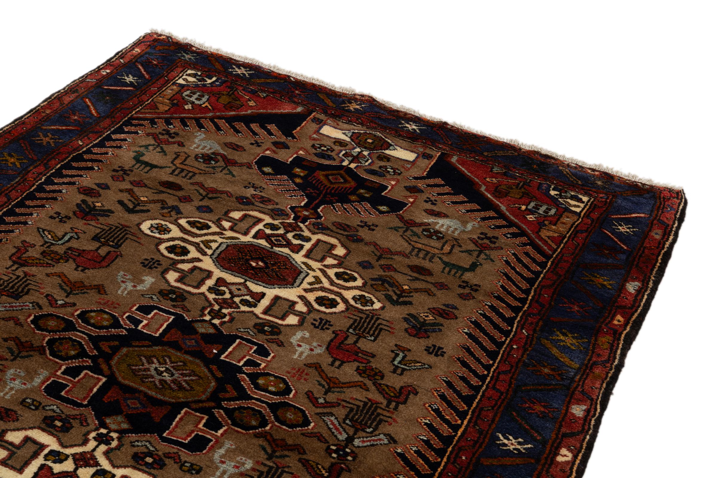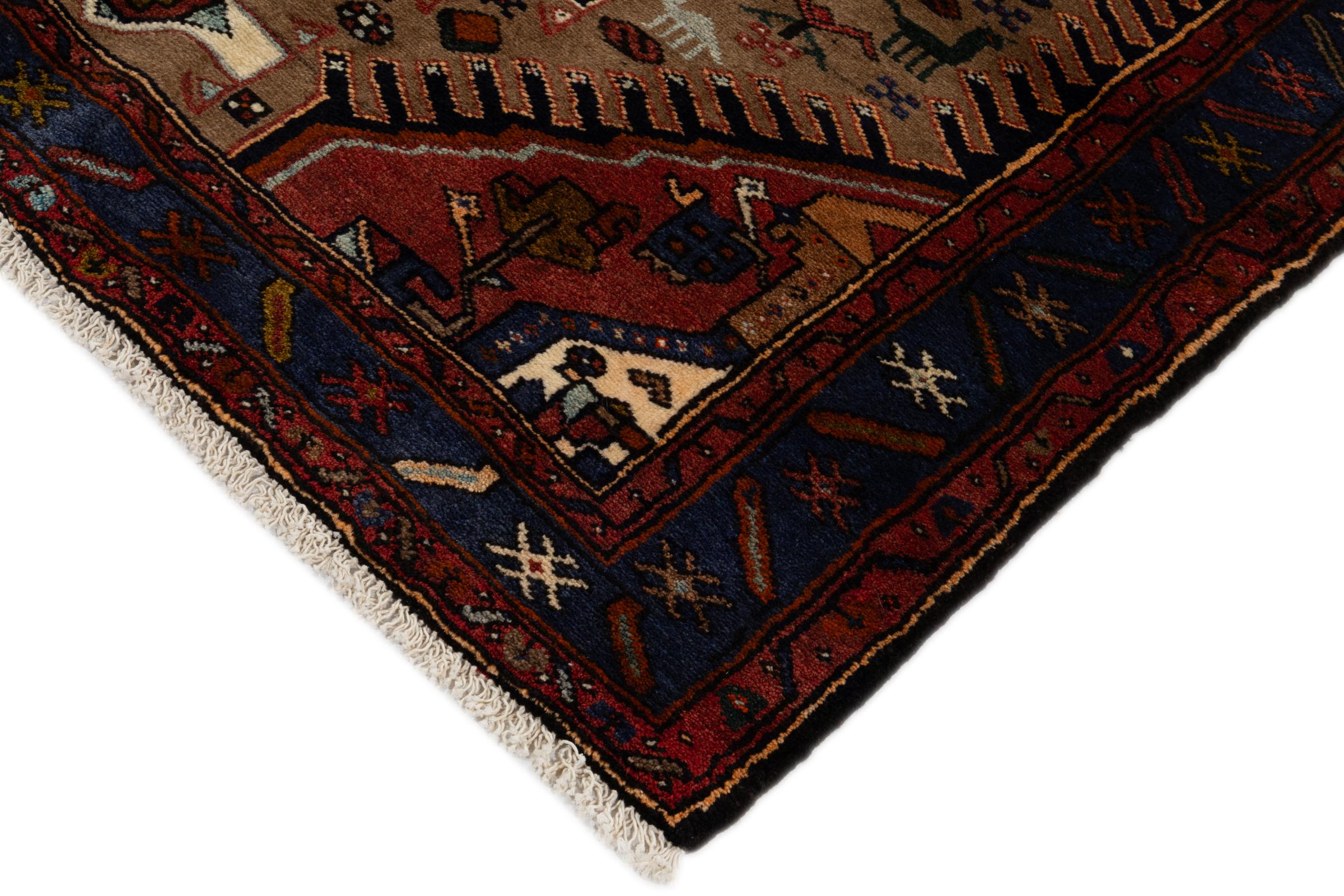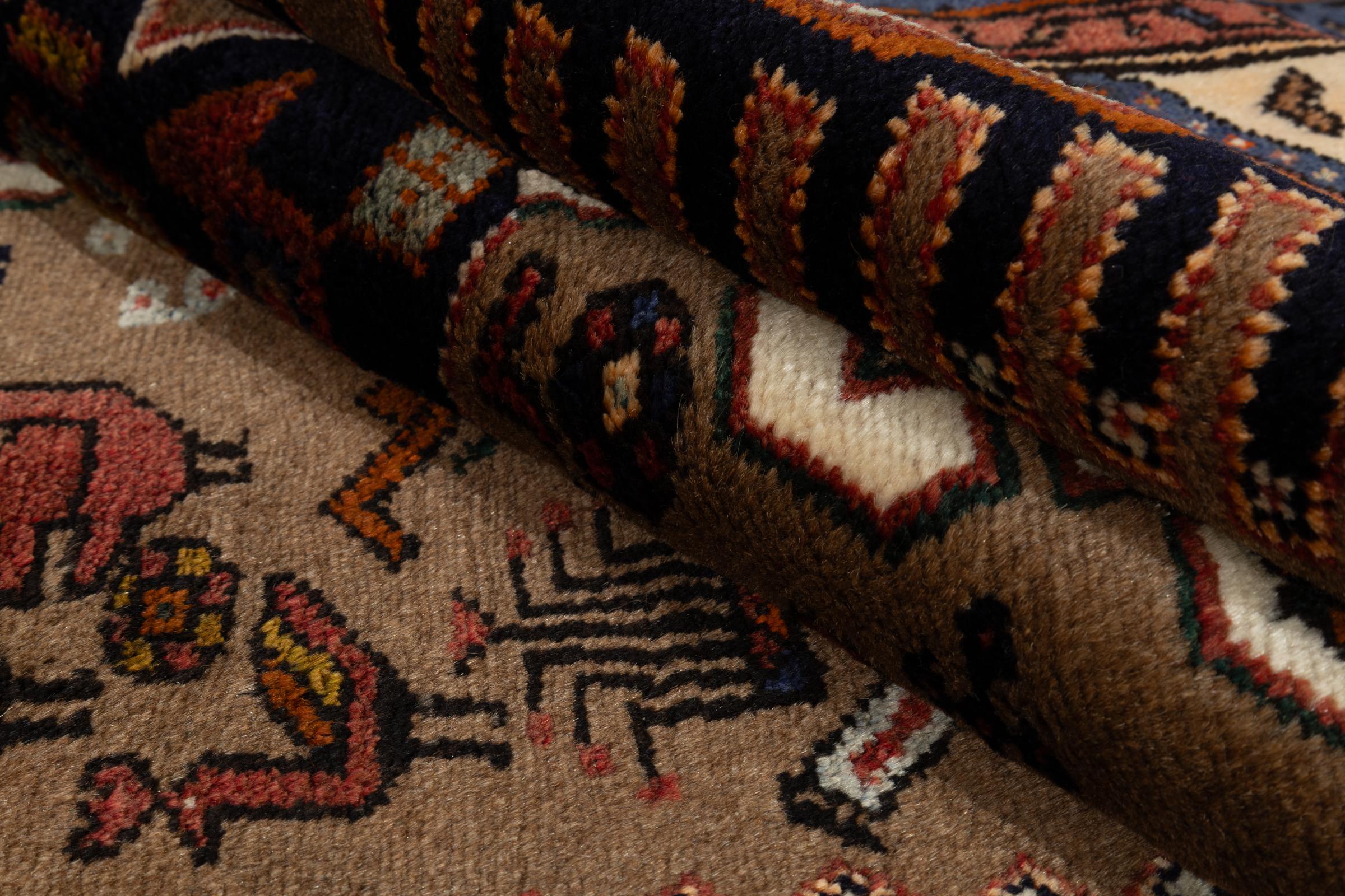 Dieser Teppich gehört zu Dorf- und Nomadenteppichen aus dem Iran, ehemals Persien. Diese Art von Teppich wird in kleineren Städten und Dörfern von Hand in alter Tradition geknüpft. Auch Nomaden knüpfen noch Perserteppiche unter freiem Himmel. Die Teppiche werden ohne Vorlage und komplett aus dem Kopf geknüpft. Sie sind gekennzeichnet durch klassische Ornamente, die in geradlinigen und geometrischen Mustern angelegt sind. Dank ihrer kulturell-traditionellen Herkunft, haben diese Teppiche einen einzigartigen Charakter, der das alte Persien verkörpert.