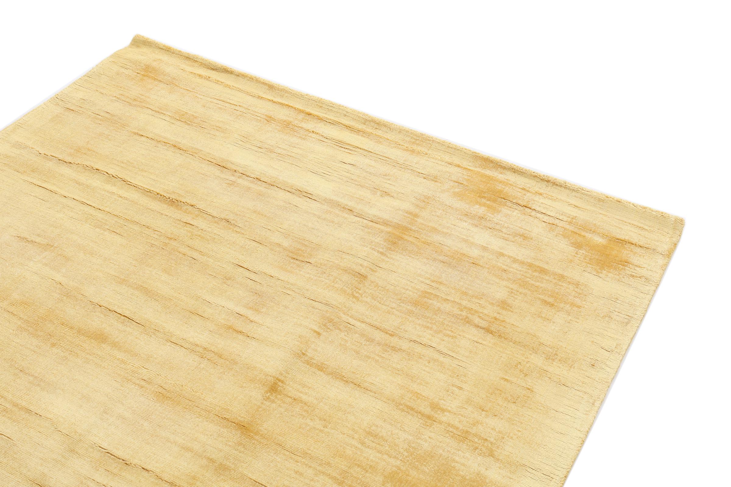 Dieser Teppich besteht aus hochwertiger Viskose, die als handgefertigte Textilfaser auf natürliche Materialien basiert. Dazu gehören zum Beispiel Baumwolle und Zellulose. Viskose wird so zusammengesetzt, dass sie soweit wie möglich echter Seide ähnelt. Sie besitzt einen auffällig eleganten Glanz und ist gleichzeitig extrem weich. Bei Teppichen wird Viskose als Highlights von Mustern oder für den gesamten Flor verwendet. Im Vergleich zu purer Seide ist Viskose deutlich erschwinglicher.