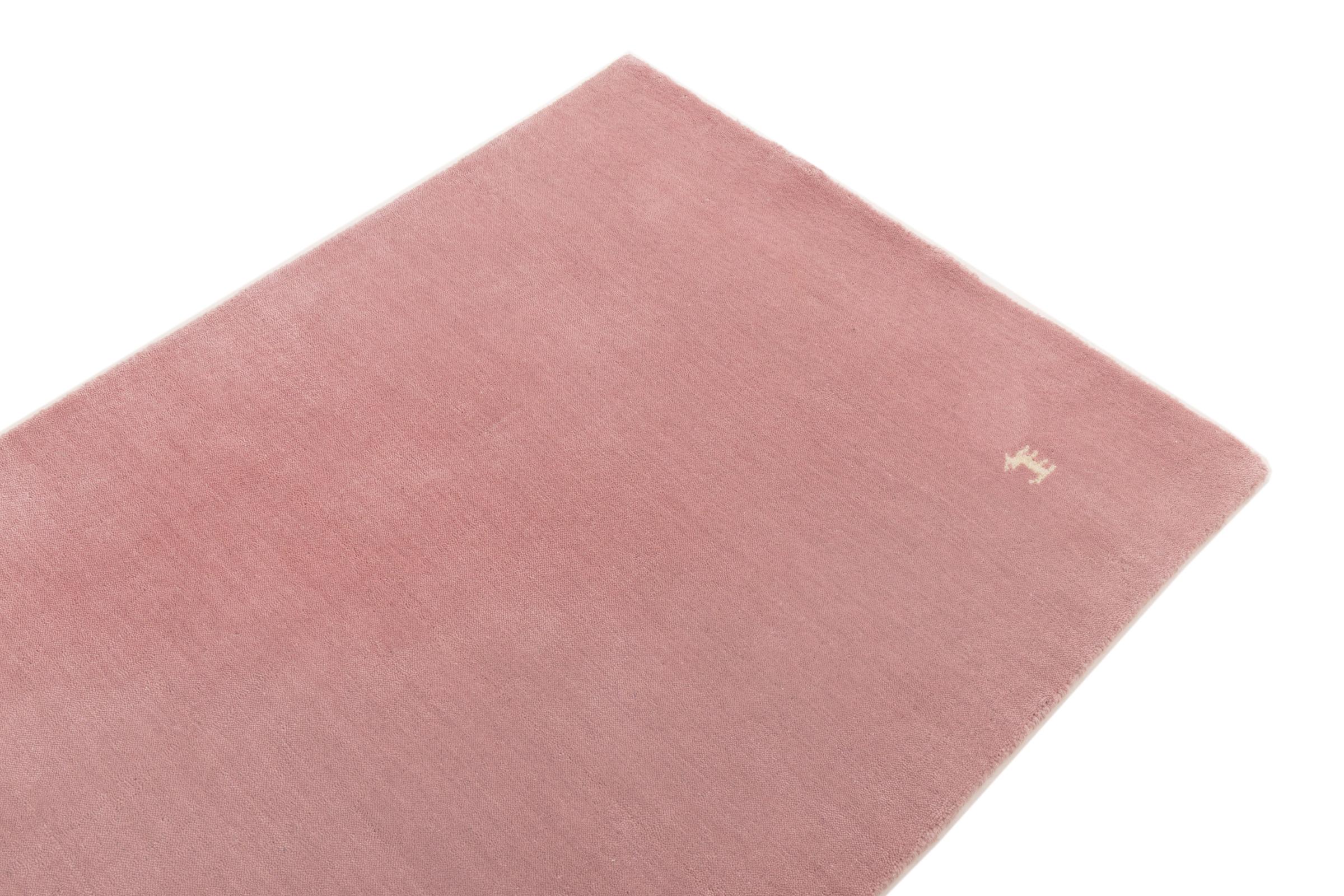 Dieser Loom Gabbeh ist ein handgearbeiteter Teppich mit schönem modernen Design und toller Farbgebung. Er wurde in Bhadohi, eine Kleinstadt in Indien, aus hochwertiger Wolle von Hand in Looms geknüpft. Dabei kommt eine neue Art von Webstuhl zum Einsatz, der die Arbeit verkürzt, so dass erschwingliche und gleichzeitig hochwertige Teppiche in Gabbeh-Design entstehen.