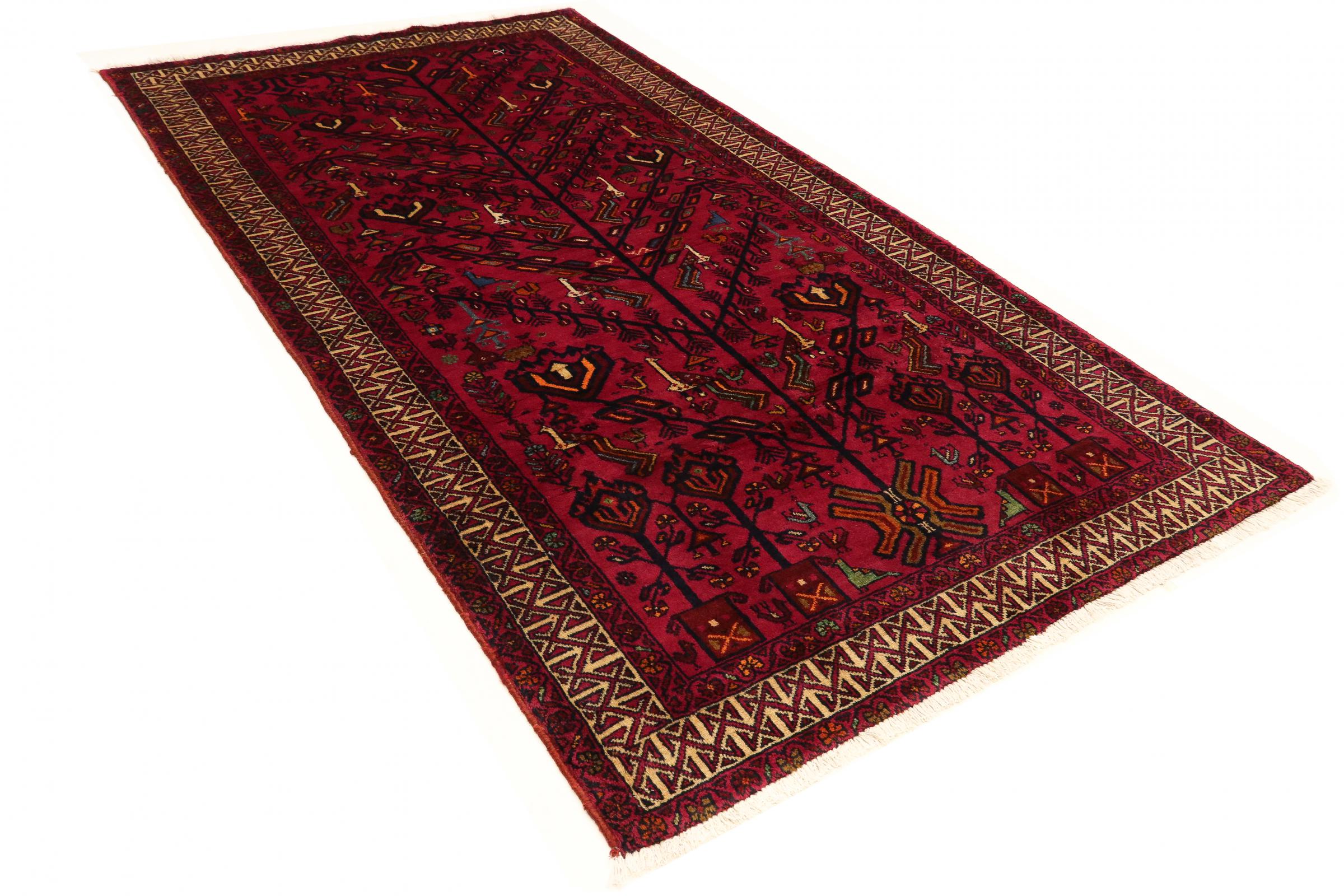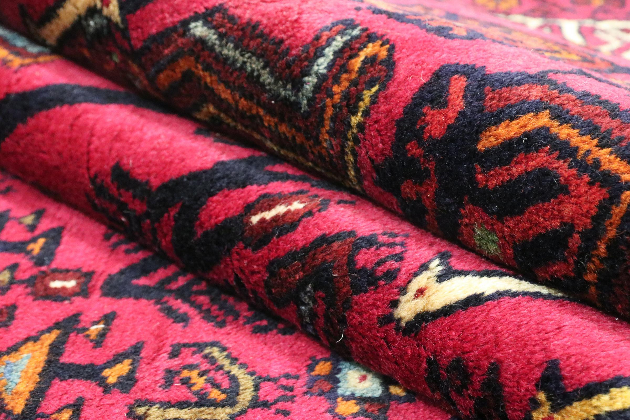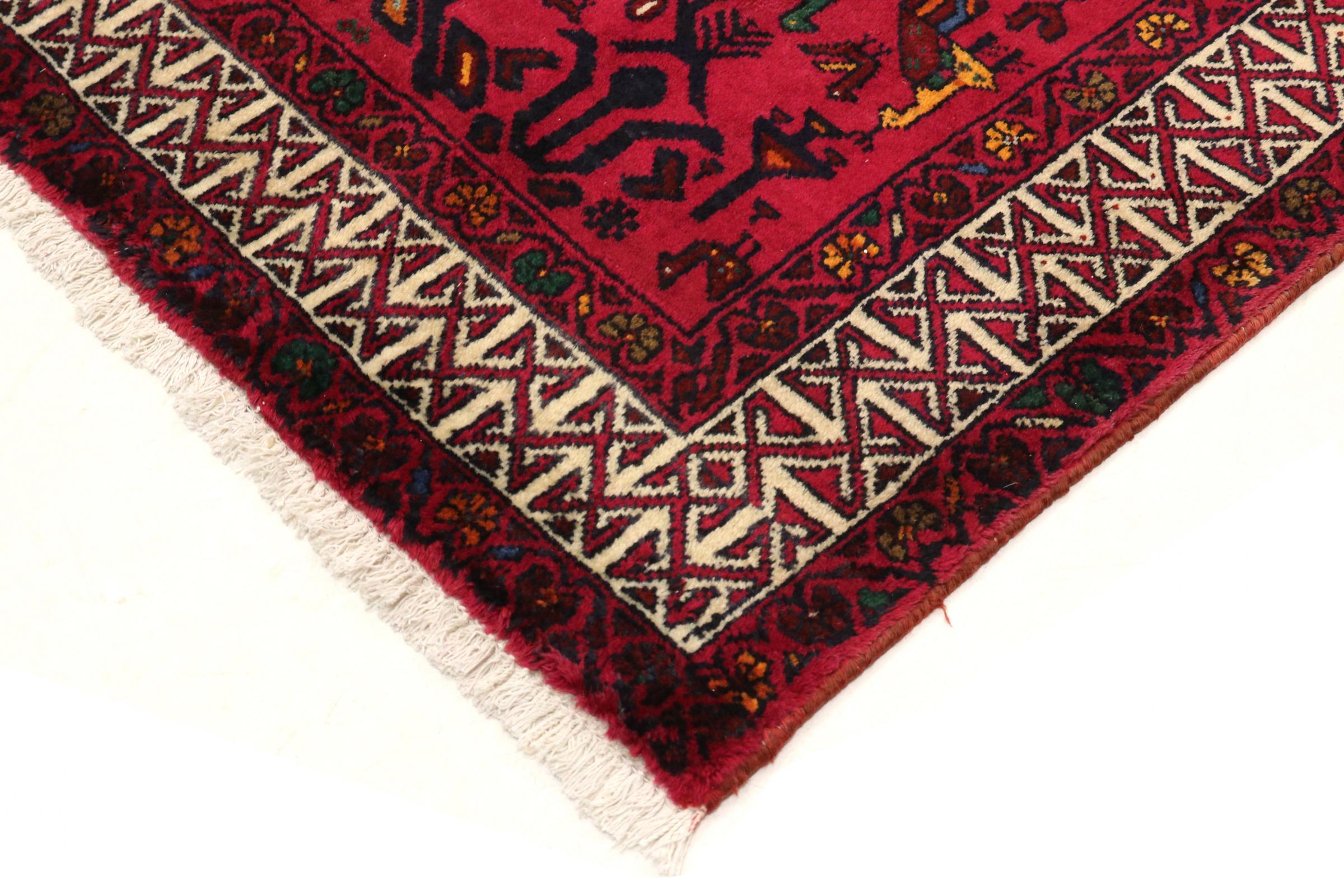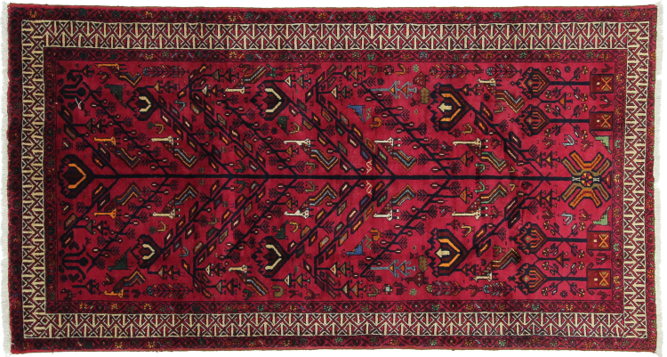 Dieser Teppich gehört zu Dorf- und Nomadenteppichen aus dem Iran, ehemals Persien. Diese Art von Teppich wird in kleineren Städten und Dörfern von Hand in alter Tradition geknüpft. Auch Nomaden knüpfen noch Perserteppiche unter freiem Himmel. Die Teppiche werden ohne Vorlage und komplett aus dem Kopf geknüpft. Sie sind gekennzeichnet durch klassische Ornamente, die in geradlinigen und geometrischen Mustern angelegt sind. Dank ihrer kulturell-traditionellen Herkunft, haben diese Teppiche einen einzigartigen Charakter, der das alte Persien verkörpert.
