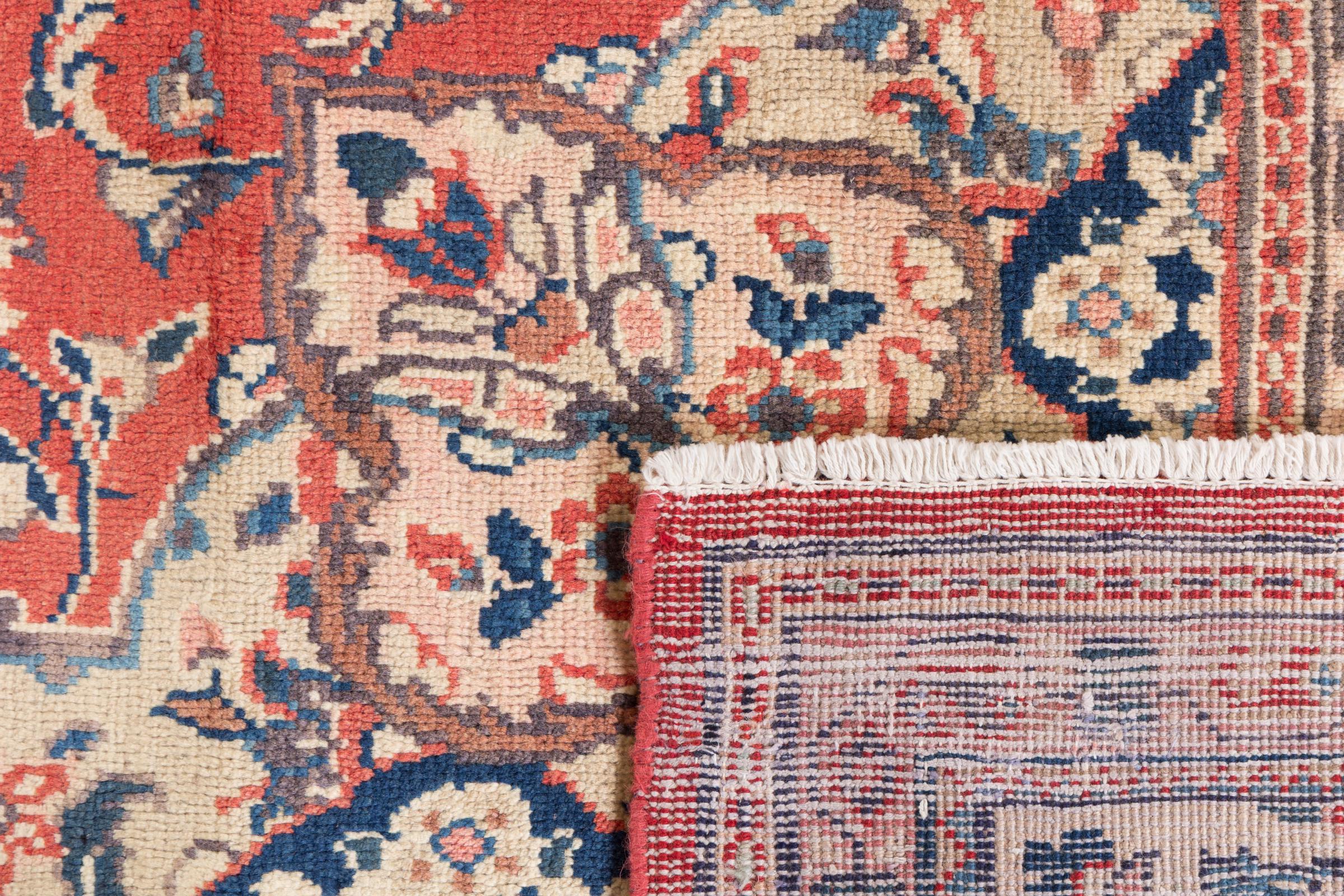 Dieser orientalische Teppich stammt aus der Provenienz Mahal, die im westlichen Teil des Zentralirans liegt. Das Dessin erstrahlt in einem freundlichen Kolorit mit harmonisch abgestimmten Farben. Der detailreiche Rahmen setzt die fein ausgearbeiteten Motive im Innenfeld stilvoll in Szene. Als echter handgeknüpfter Perserteppich von robuster Qualität ist das Modell ästhetisch und langlebig zugleich – ideal für Ihren Flur oder Ihre Wohnräume.