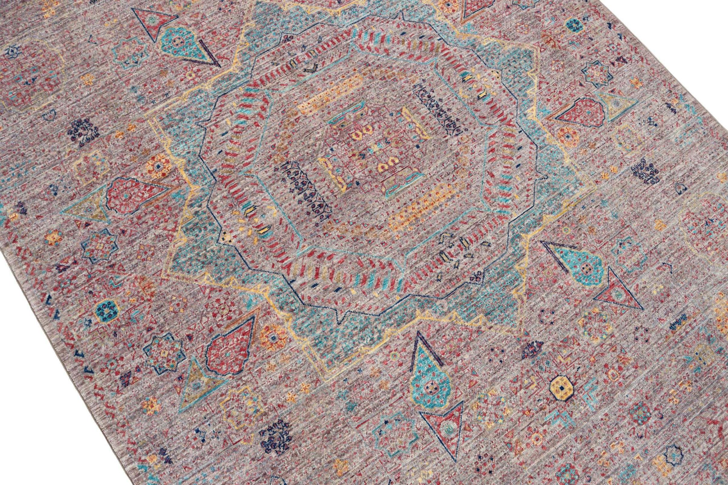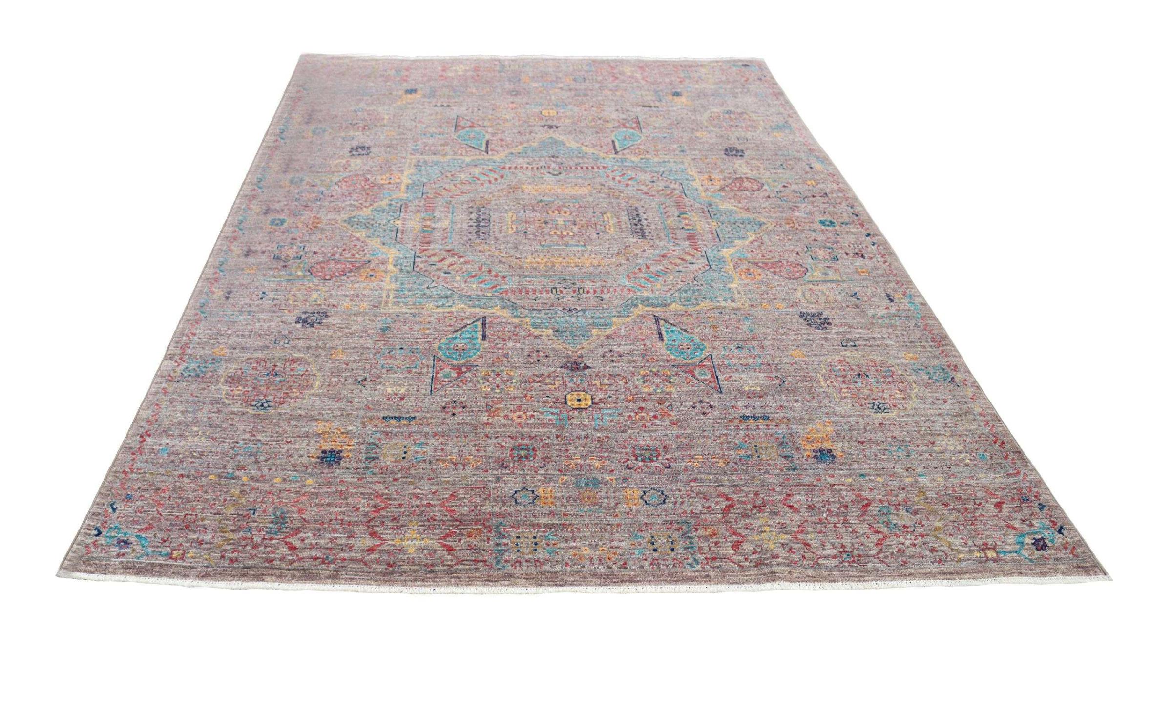 Dieser Mamluk ist von Hand geknüpft worden und besticht durch seine aufregende Eleganz. Das Design ist extravagant und einzigartig, jedoch noch nicht sehr bekannt. Die Farben des Orientteppichs sind modisch kombiniert und seine einzigartigen Motive bringen garantiert Leben und Bewunderung in Ihren Raum.