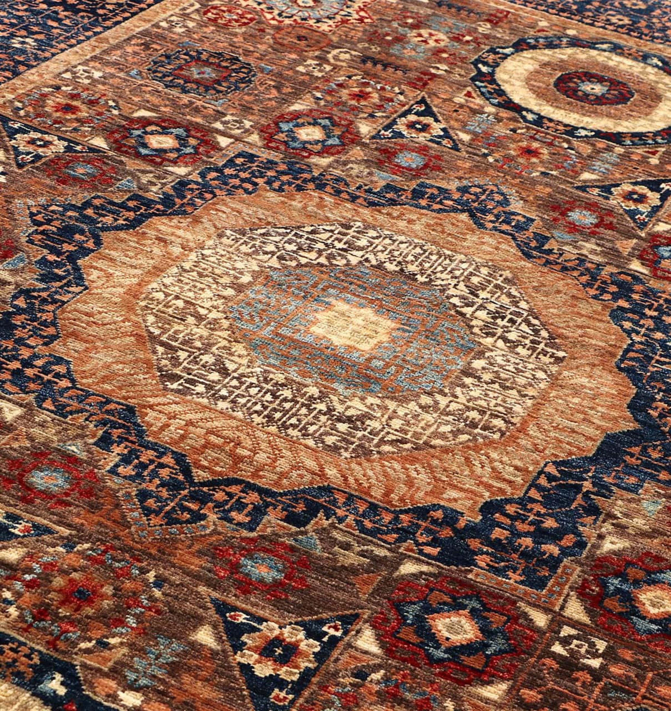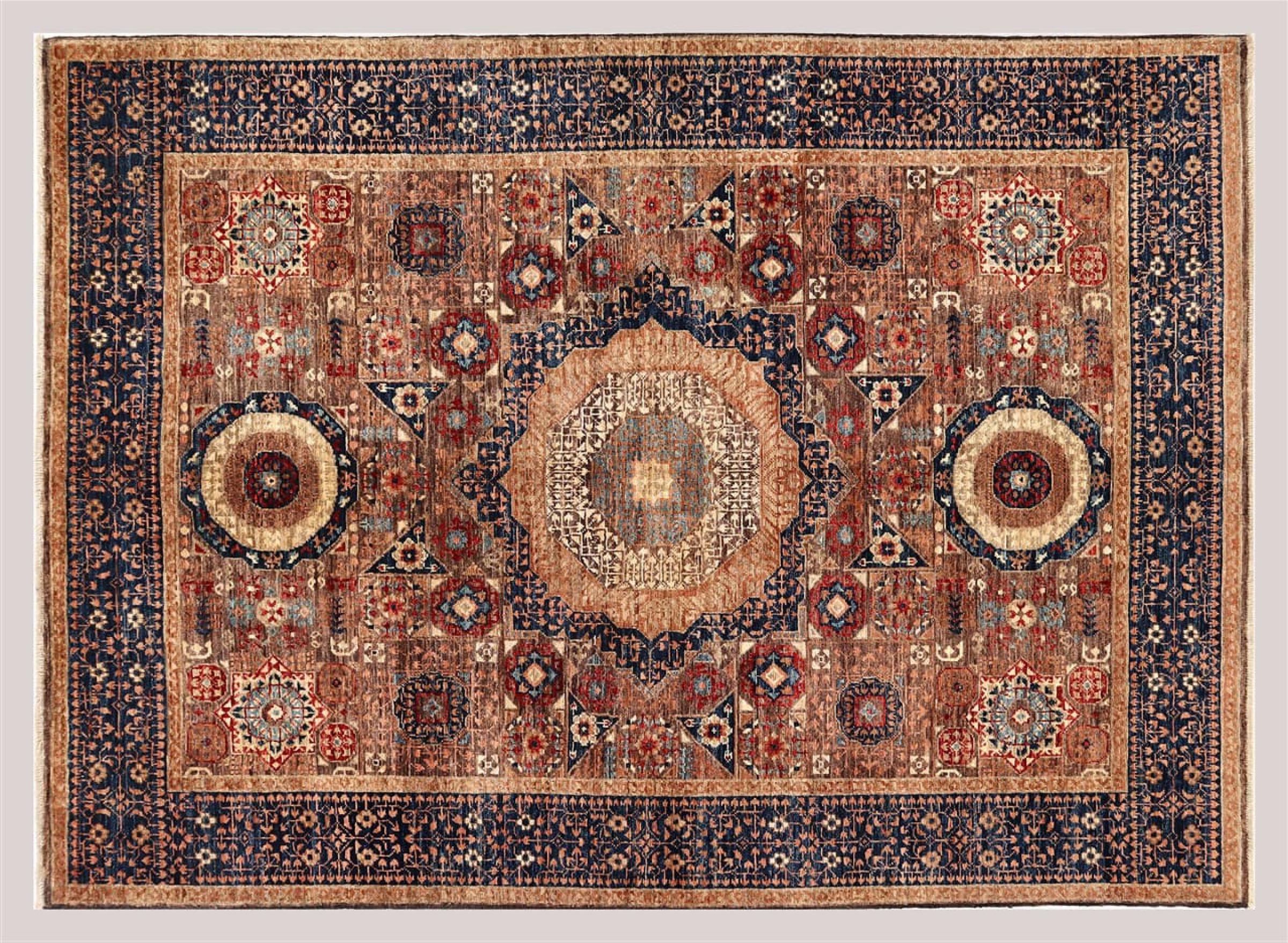 Dieser Mamluk ist von Hand geknüpft worden und besticht durch seine aufregende Eleganz. Das Design ist extravagant und einzigartig, jedoch noch nicht sehr bekannt. Die Farben des Orientteppichs sind modisch kombiniert und seine einzigartigen Motive bringen garantiert Leben und Bewunderung in Ihren Raum.