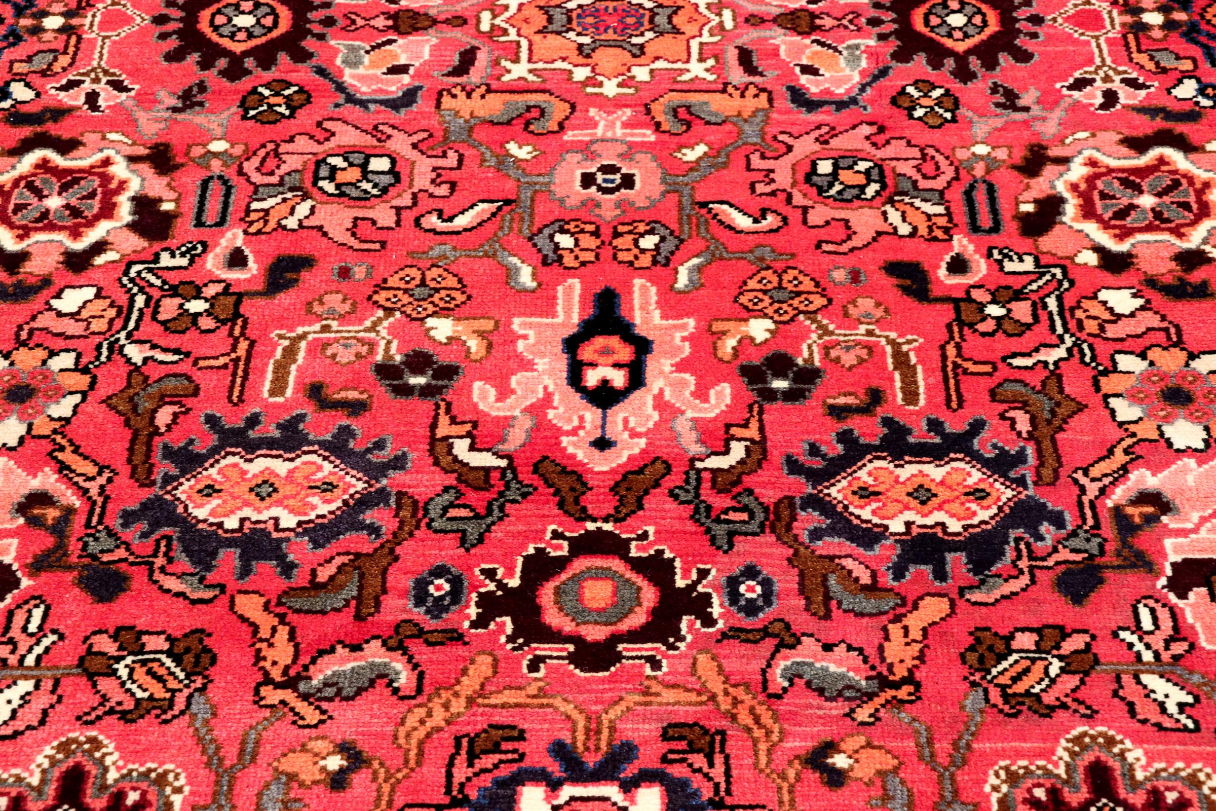 Dieser Teppich gehört zu Dorf- und Nomadenteppichen aus dem Iran, ehemals Persien. Diese Art von Teppich wird in kleineren Städten und Dörfern von Hand in alter Tradition geknüpft. Auch Nomaden knüpfen noch Perserteppiche unter freiem Himmel. Die Teppiche werden ohne Vorlage und komplett aus dem Kopf geknüpft. Sie sind gekennzeichnet durch klassische Ornamente, die in geradlinigen und geometrischen Mustern angelegt sind. Dank ihrer kulturell-traditionellen Herkunft, haben diese Teppiche einen einzigartigen Charakter, der das alte Persien verkörpert.