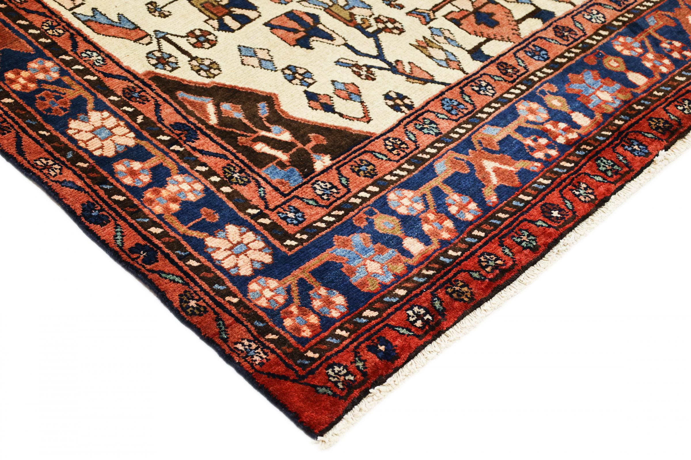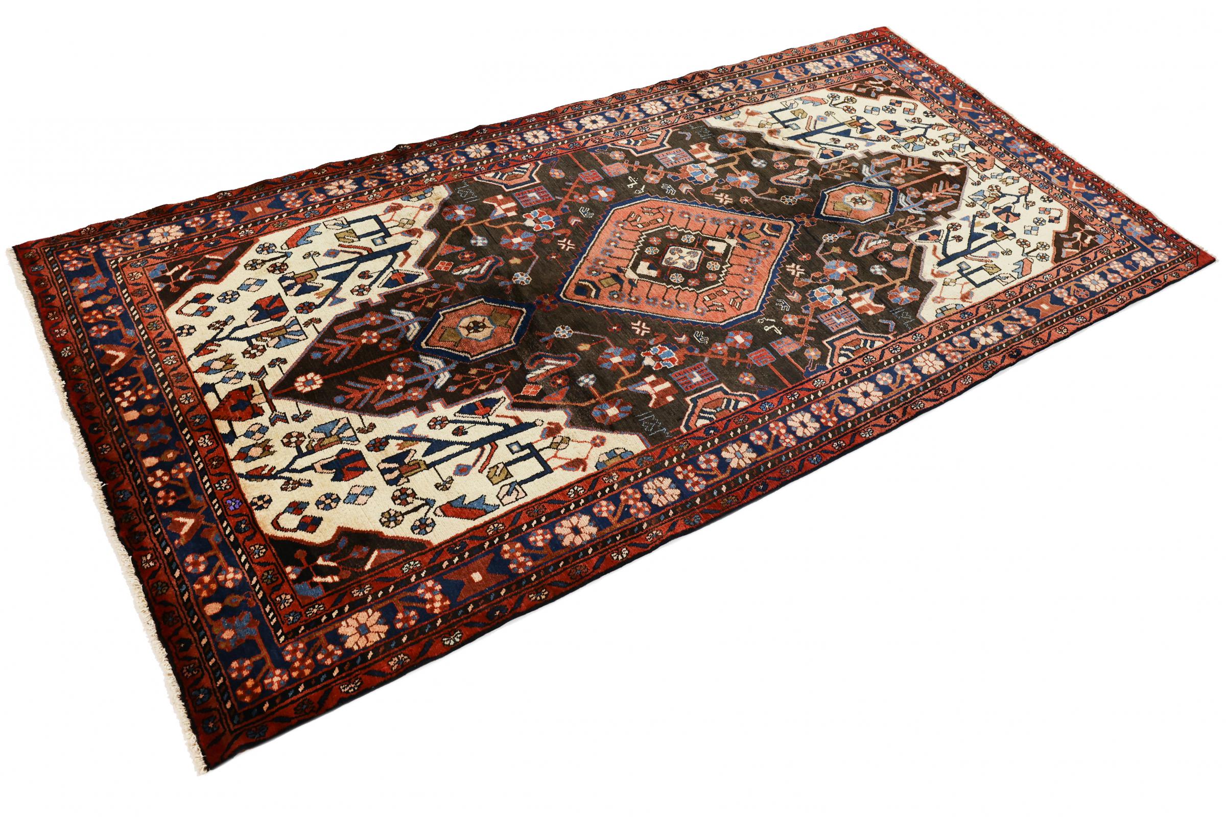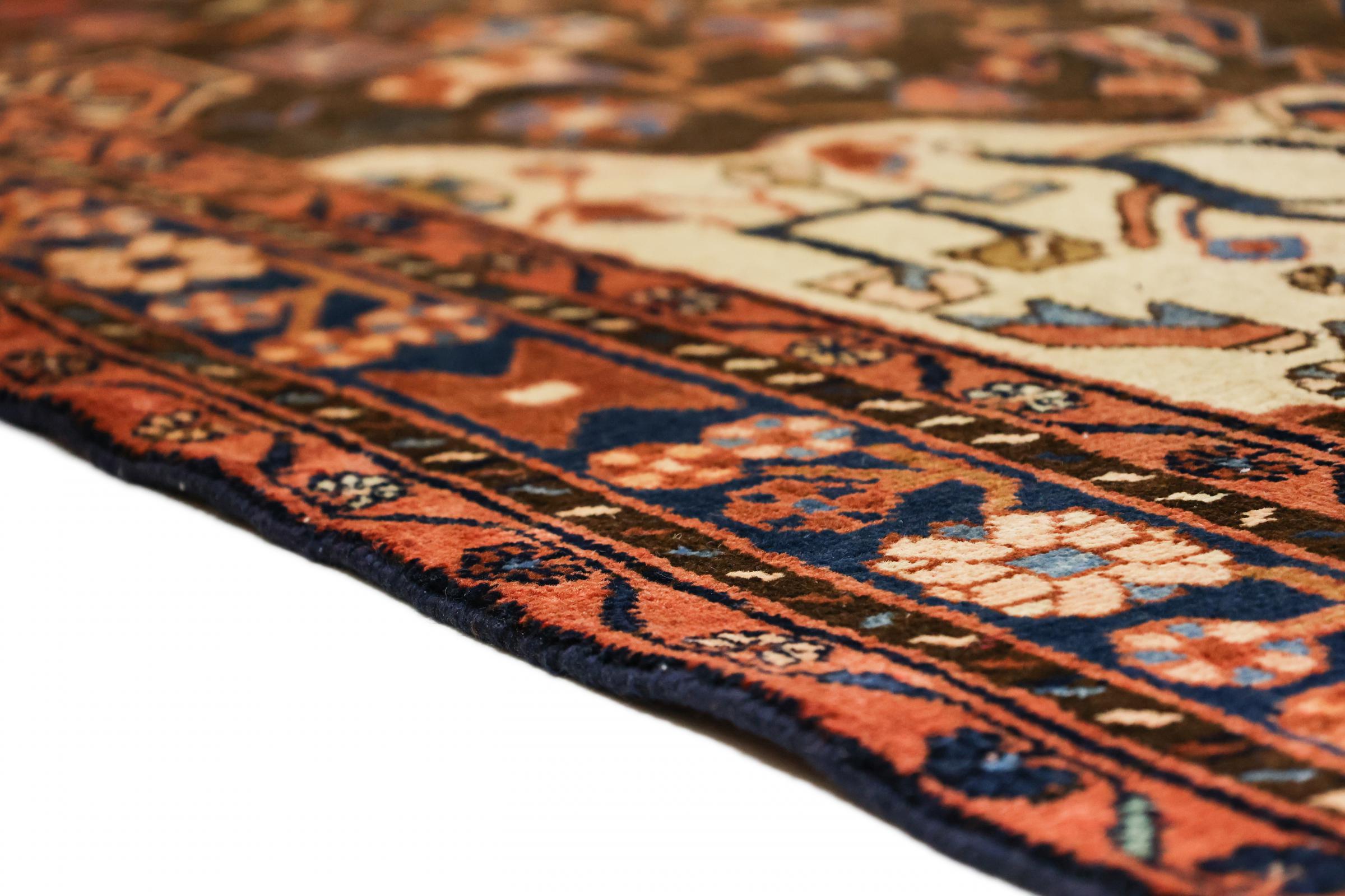 Dieser Teppich gehört zu Dorf- und Nomadenteppichen aus dem Iran, ehemals Persien. Diese Art von Teppich wird in kleineren Städten und Dörfern von Hand in alter Tradition geknüpft. Auch Nomaden knüpfen noch Perserteppiche unter freiem Himmel. Die Teppiche werden ohne Vorlage und komplett aus dem Kopf geknüpft. Sie sind gekennzeichnet durch klassische Ornamente, die in geradlinigen und geometrischen Mustern angelegt sind. Dank ihrer kulturell-traditionellen Herkunft, haben diese Teppiche einen einzigartigen Charakter, der das alte Persien verkörpert.