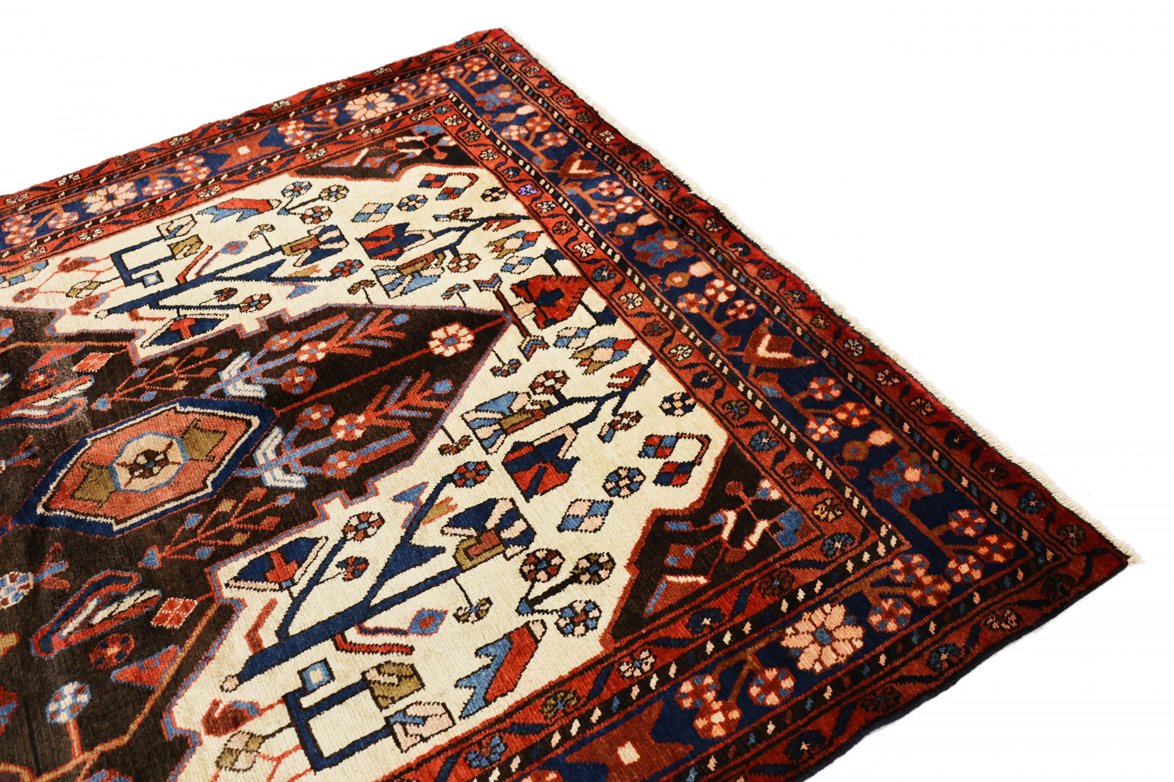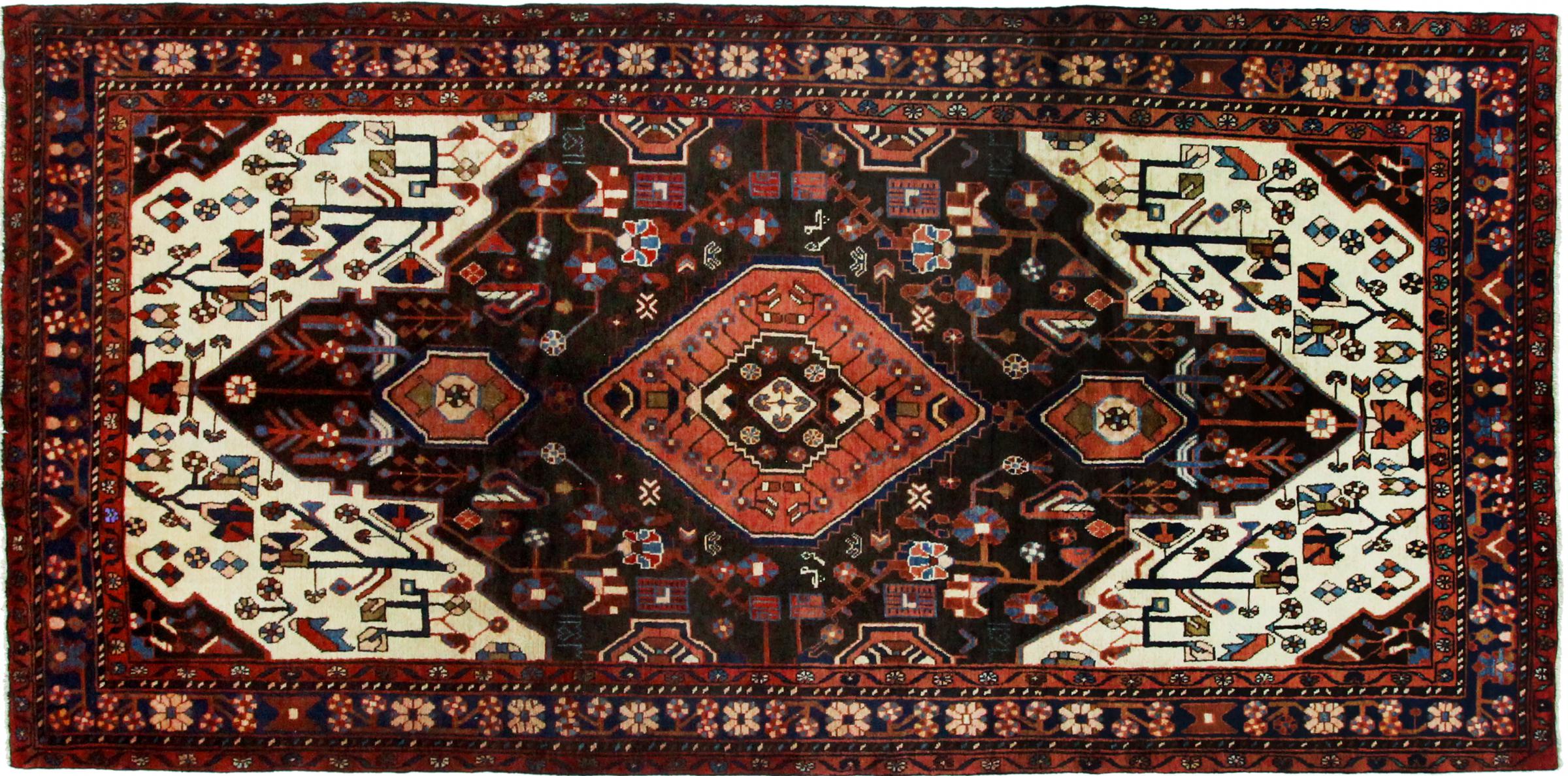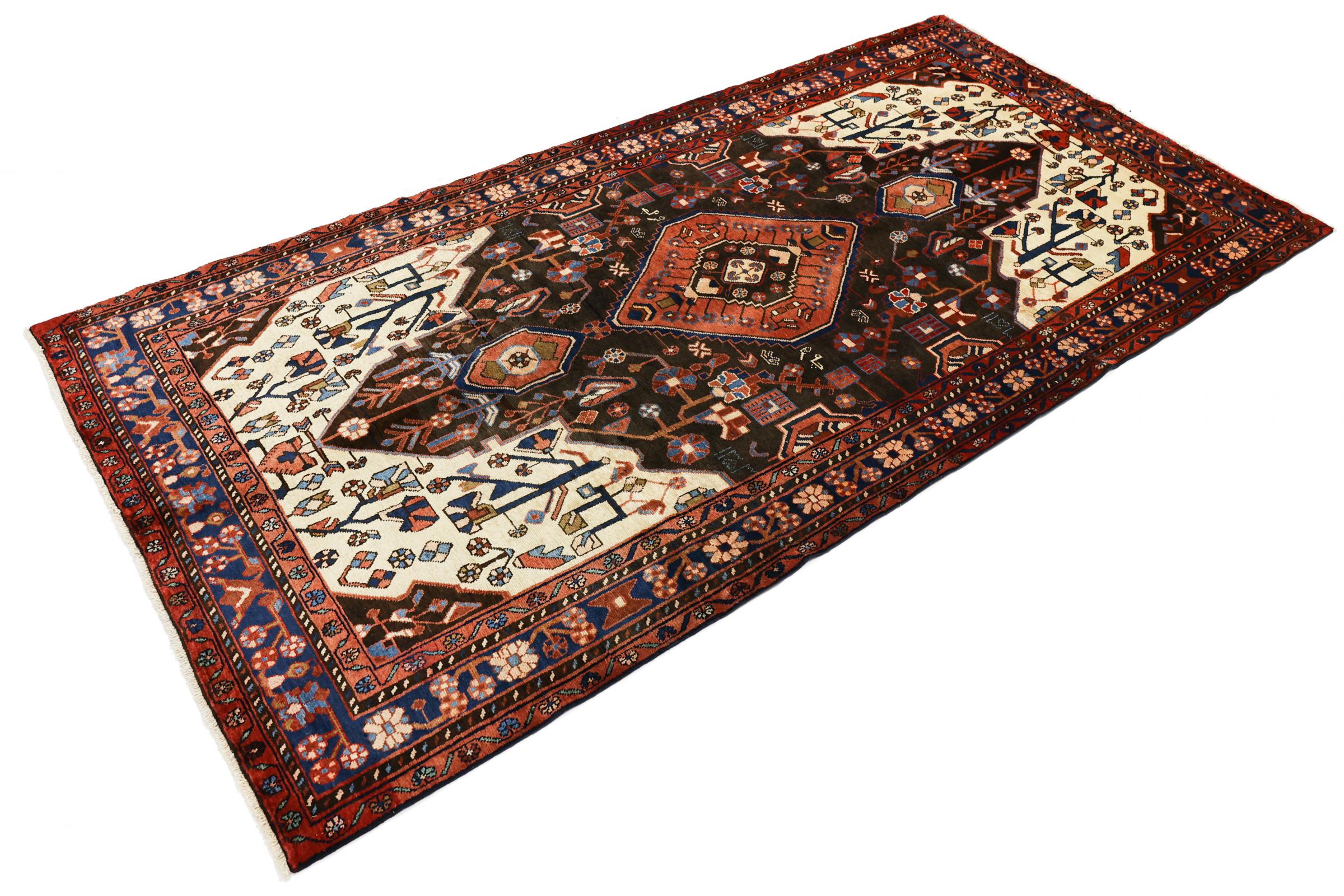 Dieser Teppich gehört zu Dorf- und Nomadenteppichen aus dem Iran, ehemals Persien. Diese Art von Teppich wird in kleineren Städten und Dörfern von Hand in alter Tradition geknüpft. Auch Nomaden knüpfen noch Perserteppiche unter freiem Himmel. Die Teppiche werden ohne Vorlage und komplett aus dem Kopf geknüpft. Sie sind gekennzeichnet durch klassische Ornamente, die in geradlinigen und geometrischen Mustern angelegt sind. Dank ihrer kulturell-traditionellen Herkunft, haben diese Teppiche einen einzigartigen Charakter, der das alte Persien verkörpert.