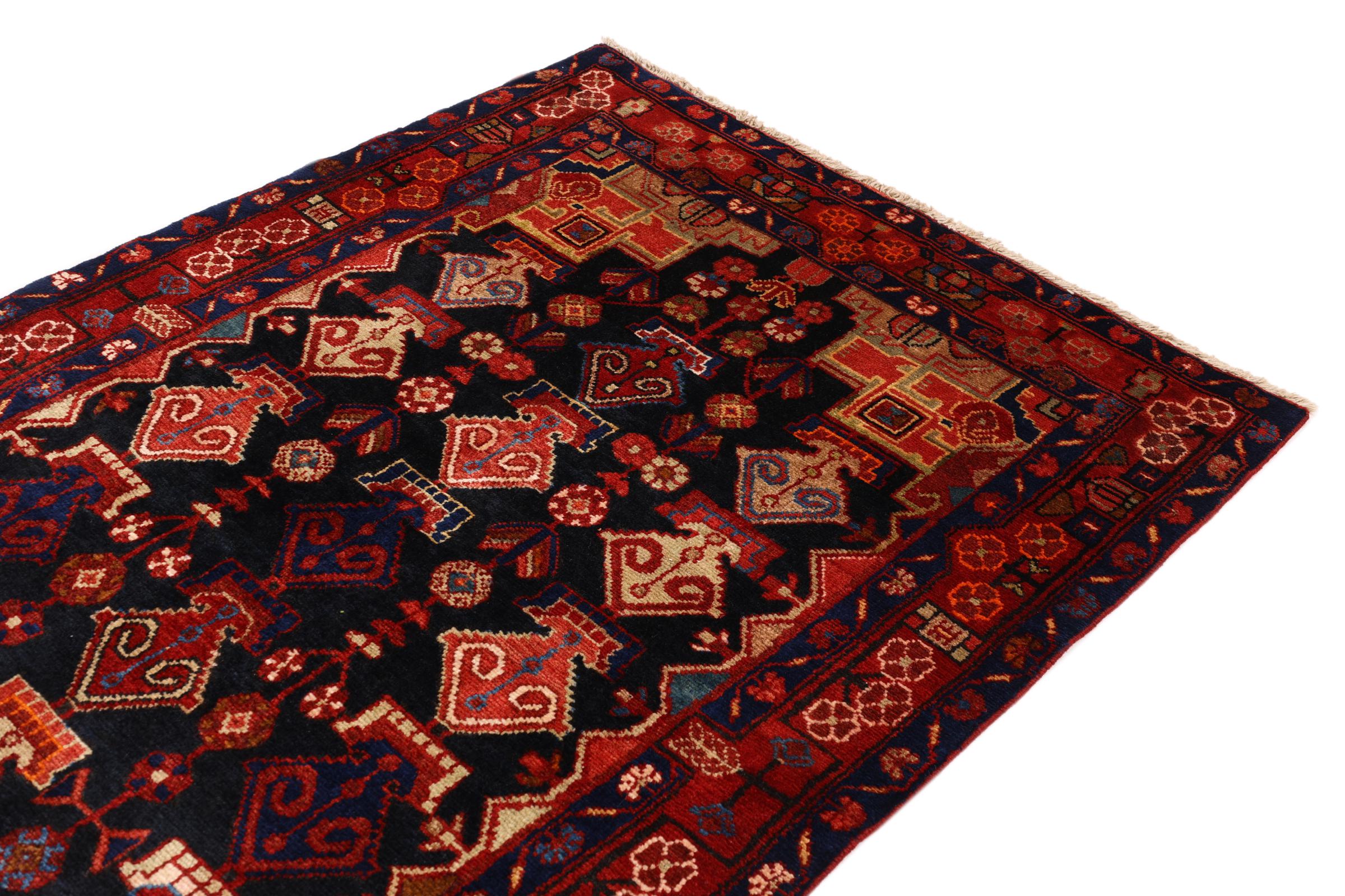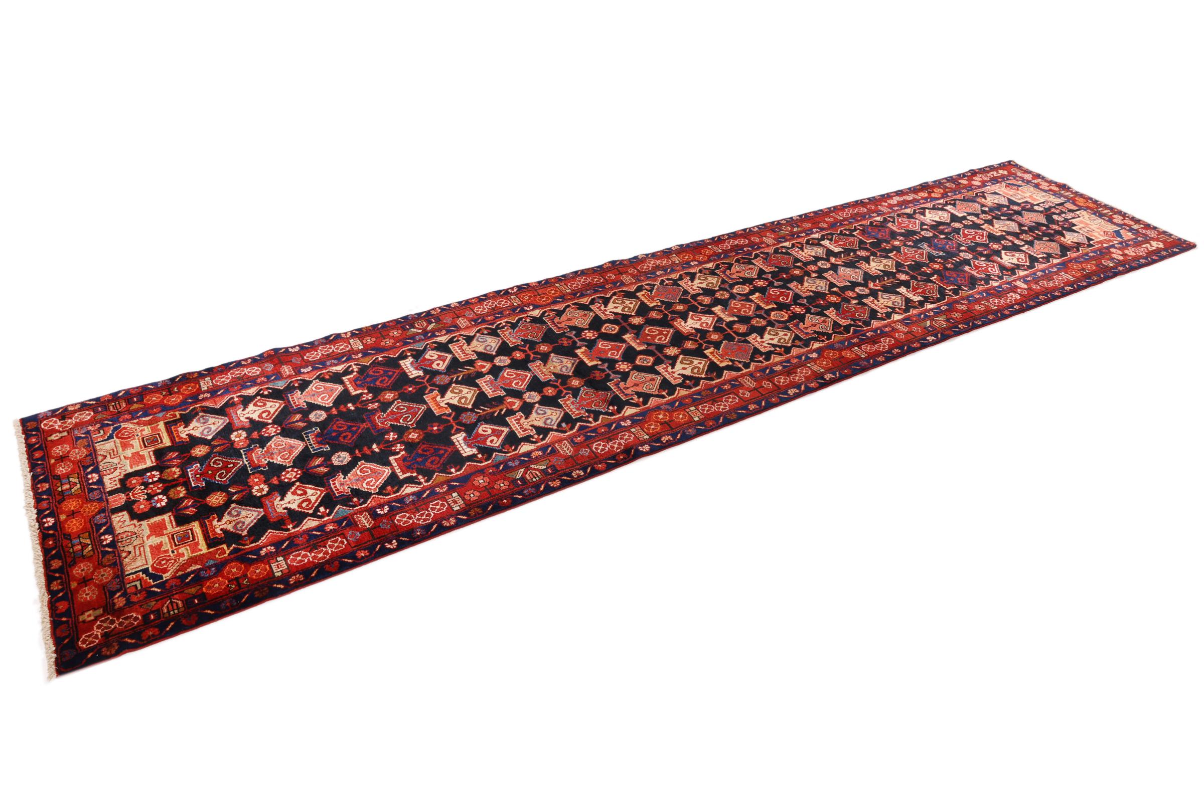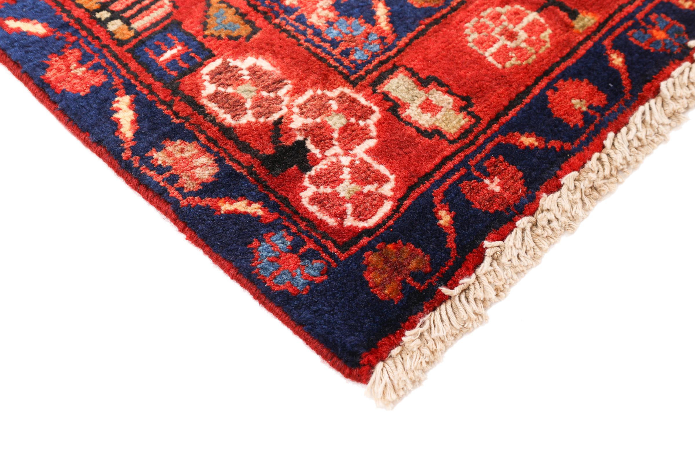 Dieser Perser Nahavand Teppich wurde im westlichen Iran handgeknüpft. Er ist robust und eignet sich damit auch in Bereichen häufiger Nutzung. Entscheidend sind hier die hochwertige Wolle, die glänzenden Farben und die nachhaltige Knotendichte. Ein bisschen Blau darf in keinem Nahavand fehlen.