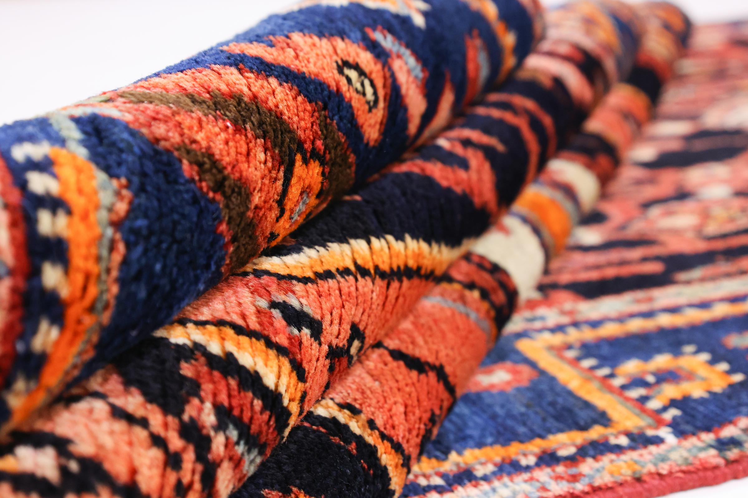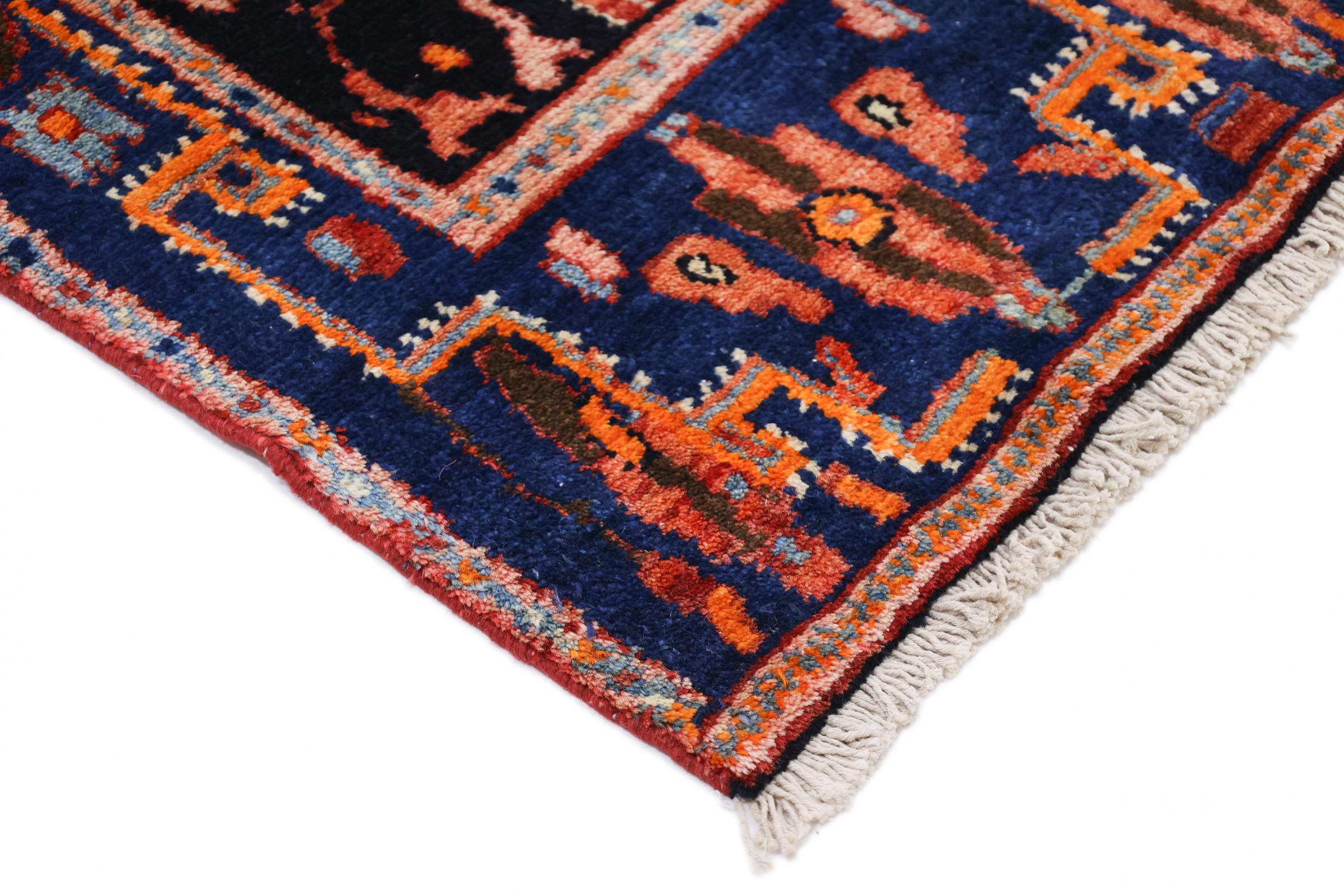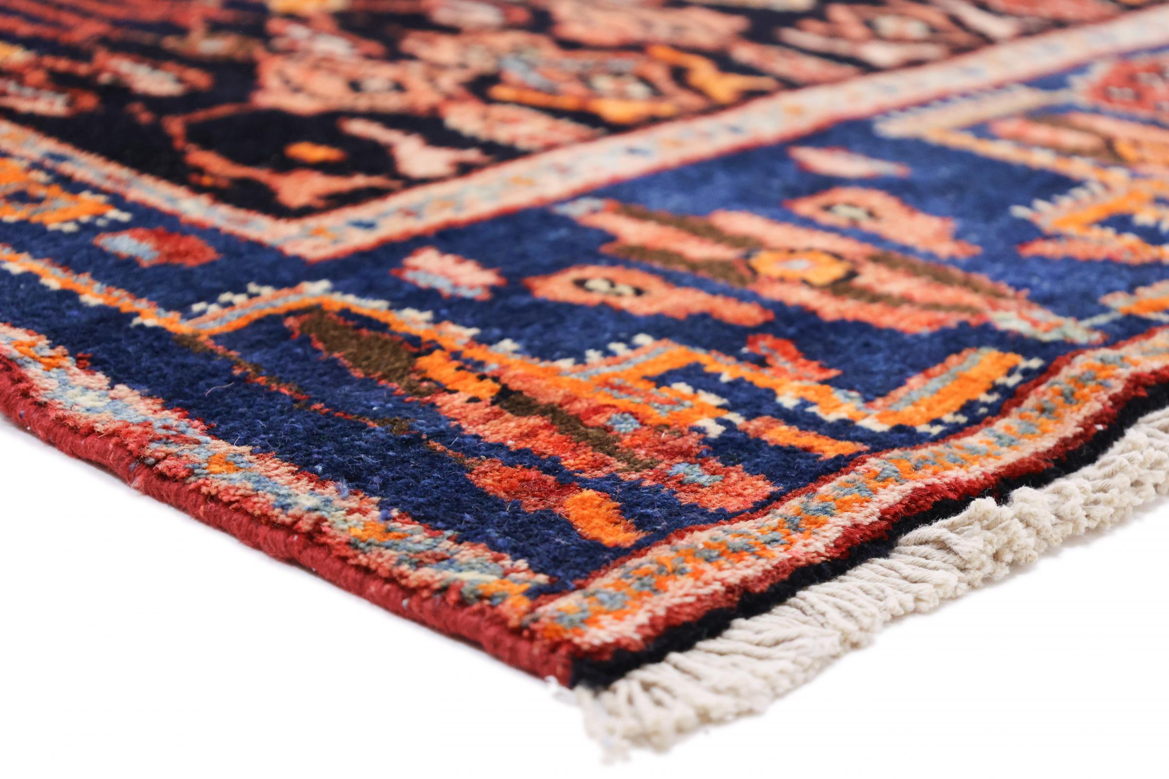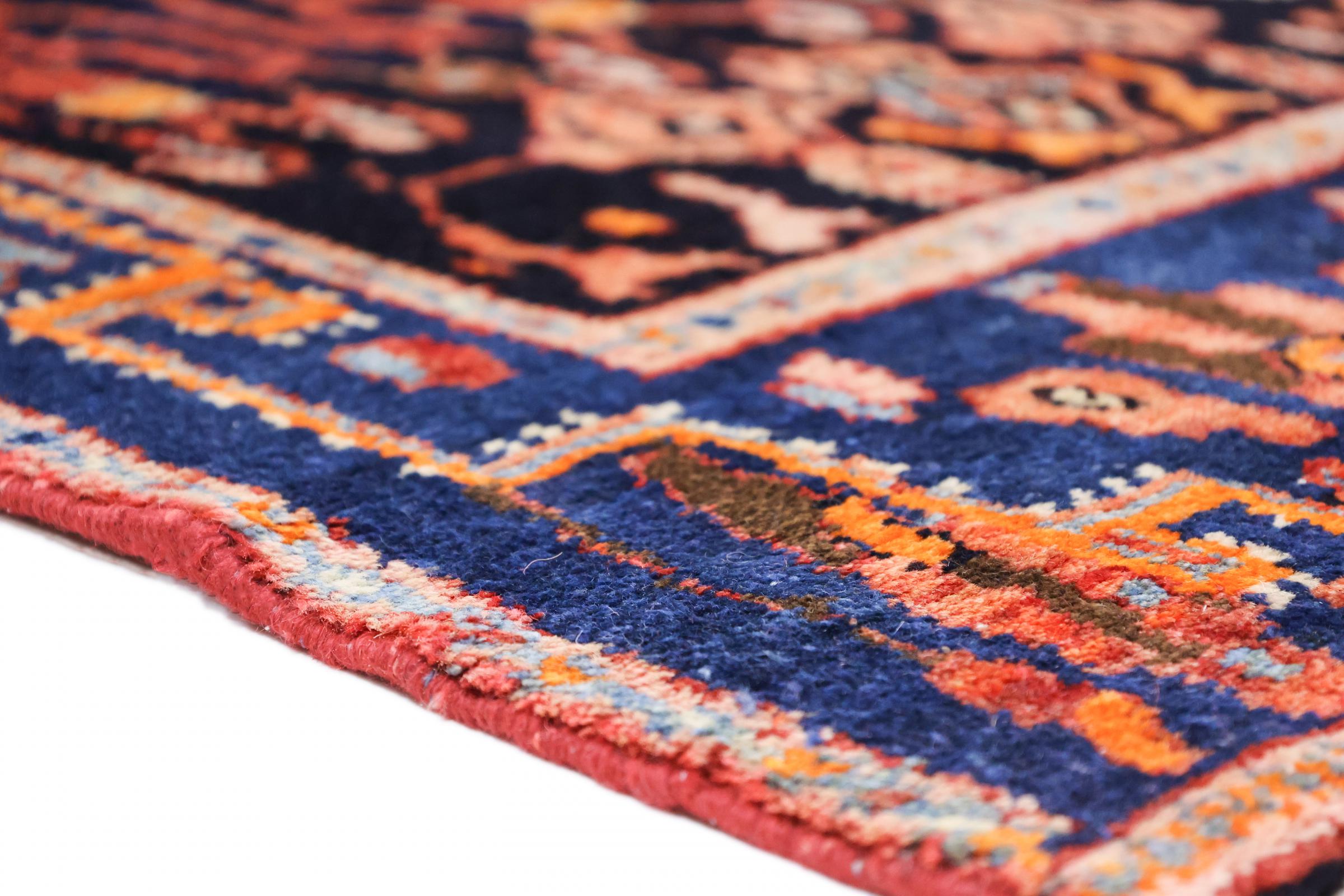 Dieser Perser Nahavand Teppich wurde im westlichen Iran handgeknüpft. Er ist robust und eignet sich damit auch in Bereichen häufiger Nutzung. Entscheidend sind hier die hochwertige Wolle, die glänzenden Farben und die nachhaltige Knotendichte. Ein bisschen Blau darf in keinem Nahavand fehlen.