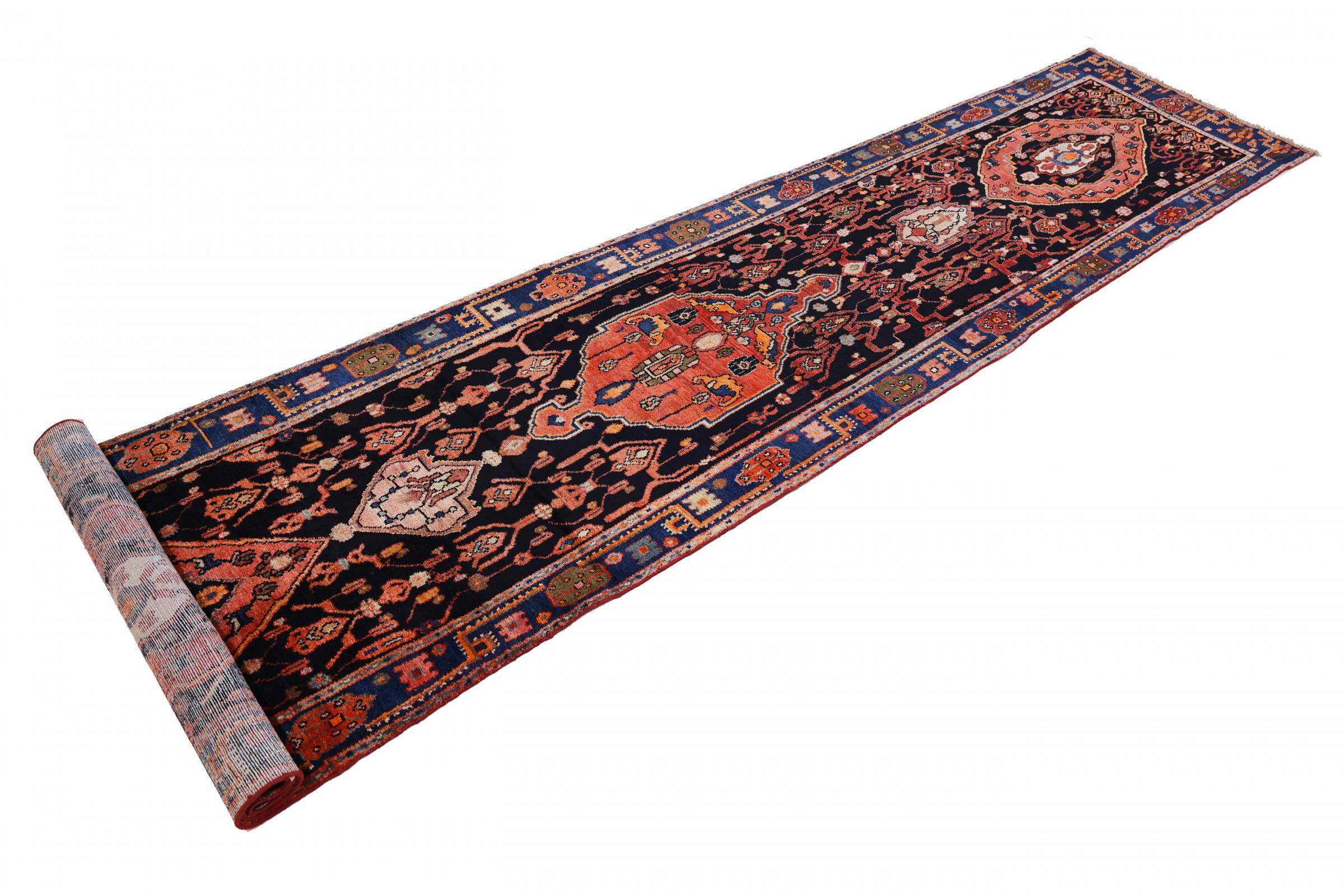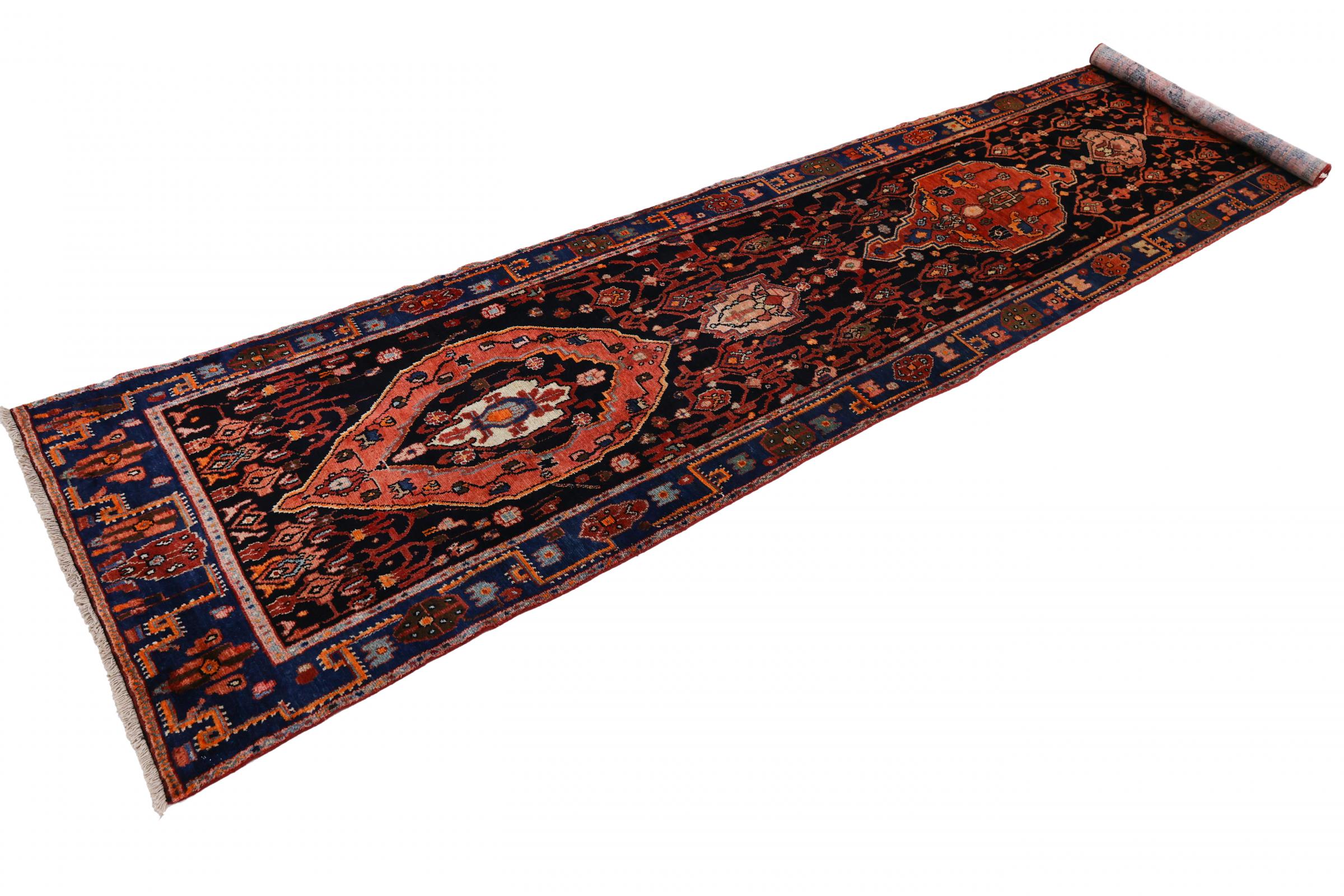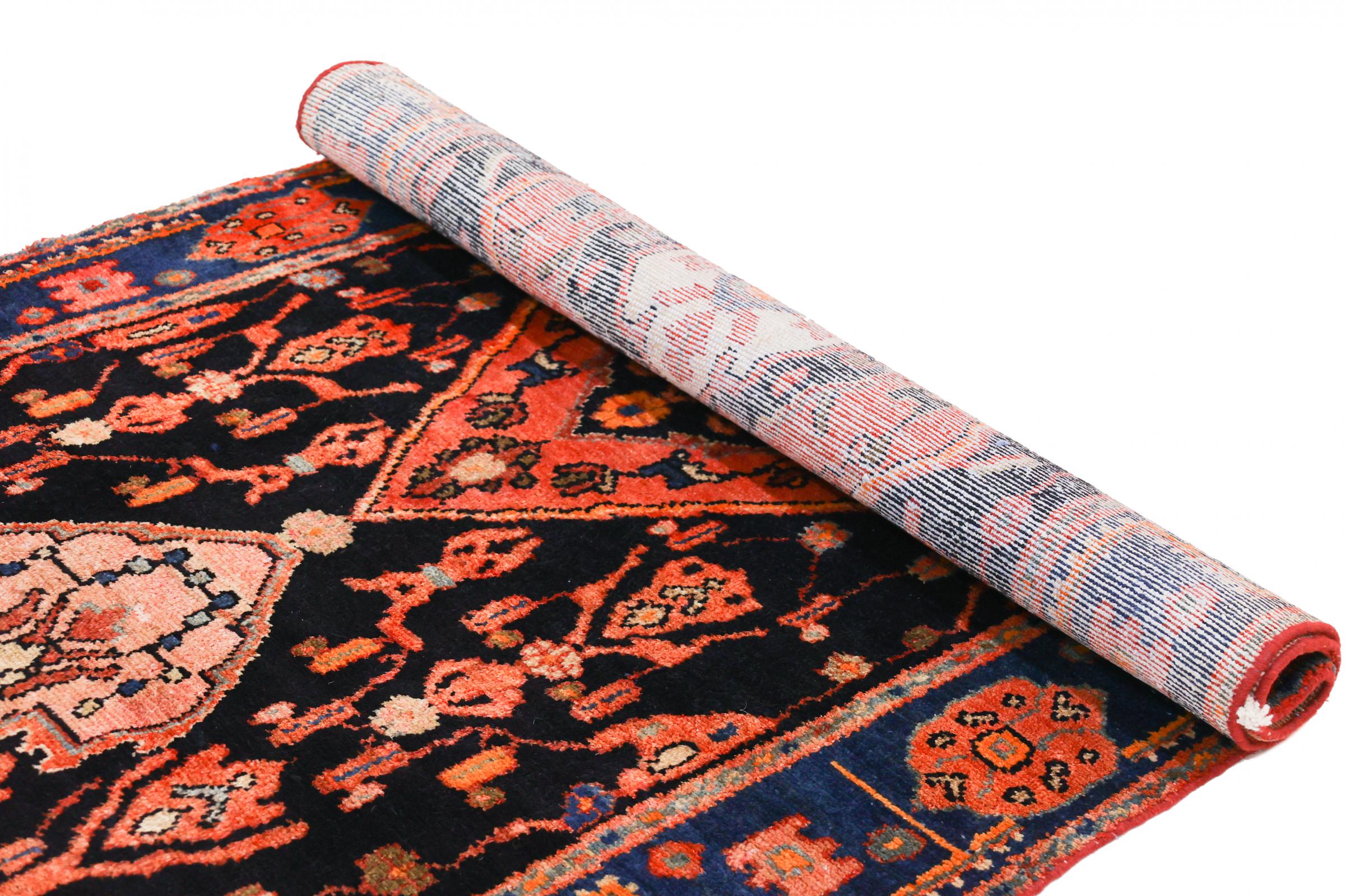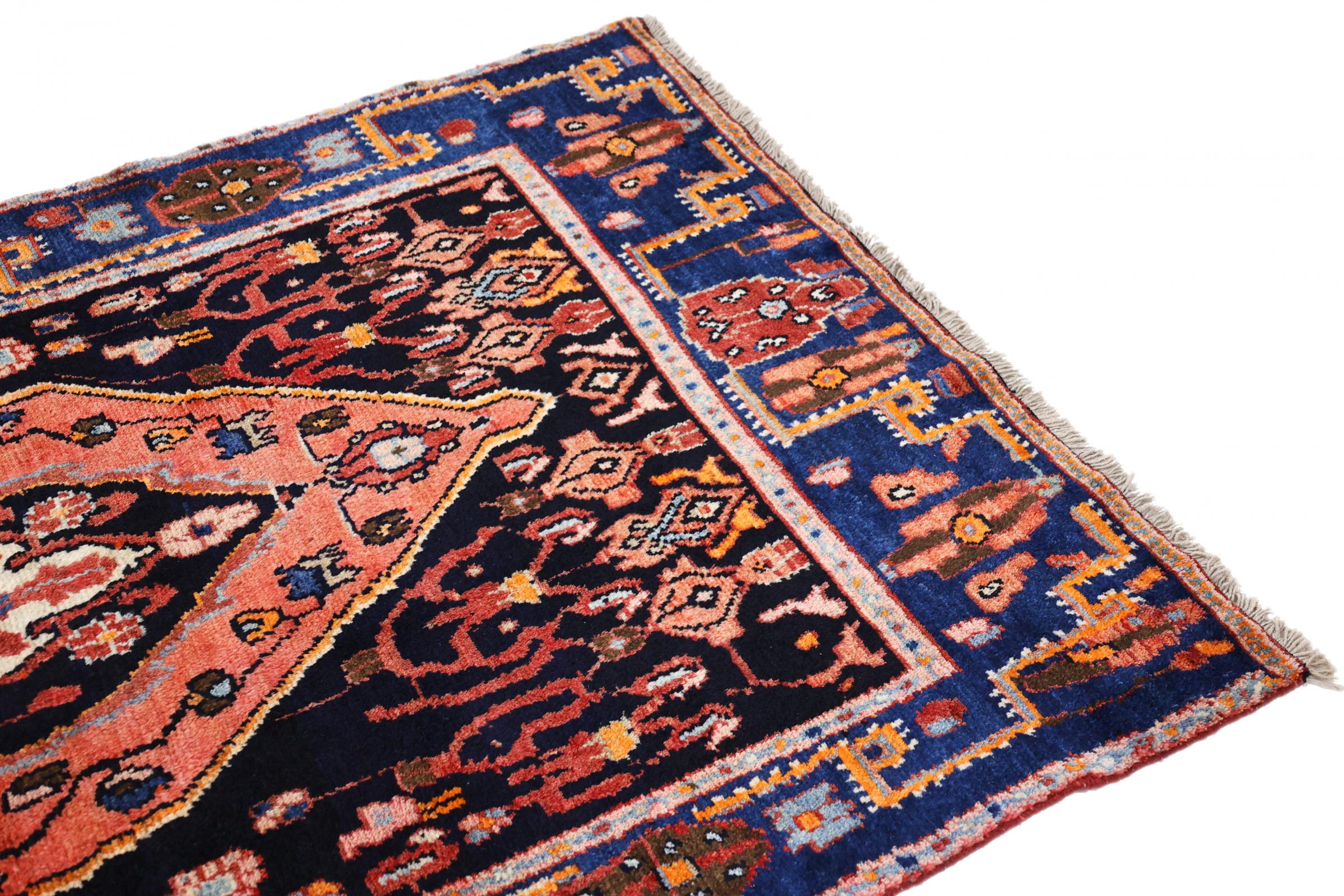 Dieser Perser Nahavand Teppich wurde im westlichen Iran handgeknüpft. Er ist robust und eignet sich damit auch in Bereichen häufiger Nutzung. Entscheidend sind hier die hochwertige Wolle, die glänzenden Farben und die nachhaltige Knotendichte. Ein bisschen Blau darf in keinem Nahavand fehlen.