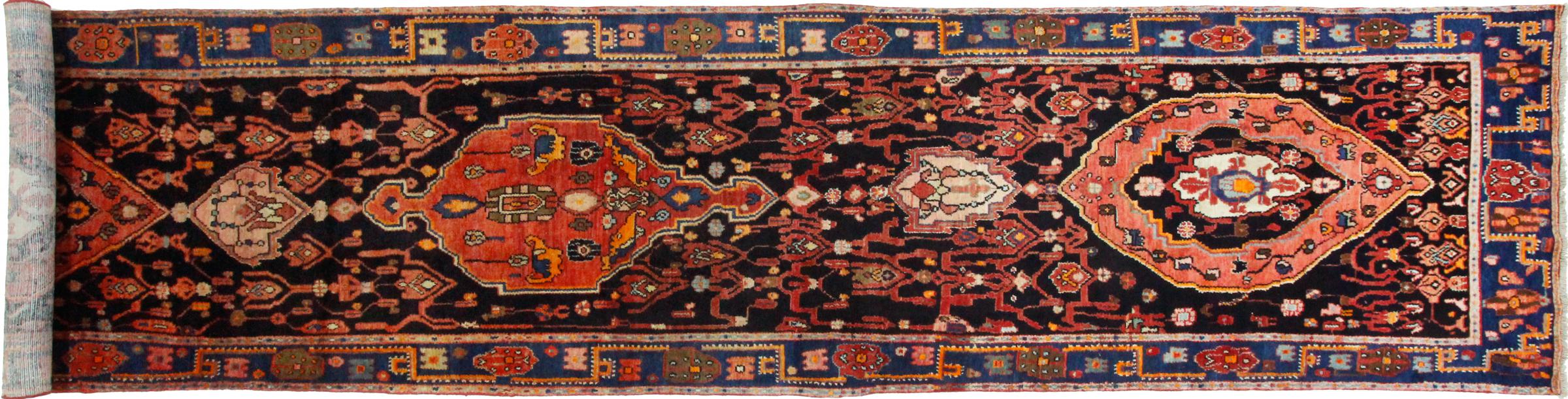 Dieser Teppich gehört zu Dorf- und Nomadenteppichen aus dem Iran, ehemals Persien. Diese Art von Teppich wird in kleineren Städten und Dörfern von Hand in alter Tradition geknüpft. Auch Nomaden knüpfen noch Perserteppiche unter freiem Himmel. Die Teppiche werden ohne Vorlage und komplett aus dem Kopf geknüpft. Sie sind gekennzeichnet durch klassische Ornamente, die in geradlinigen und geometrischen Mustern angelegt sind. Dank ihrer kulturell-traditionellen Herkunft, haben diese Teppiche einen einzigartigen Charakter, der das alte Persien verkörpert.