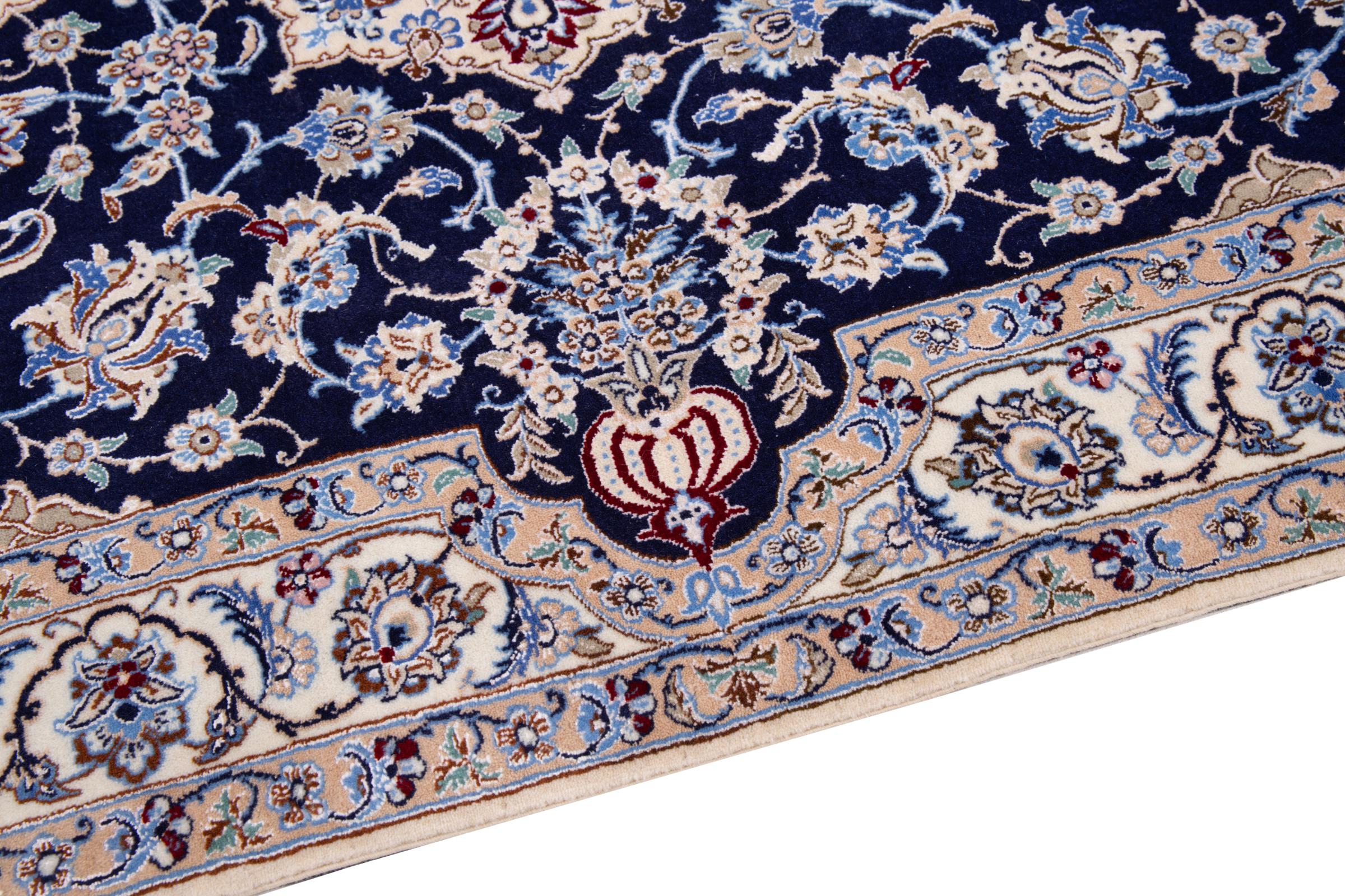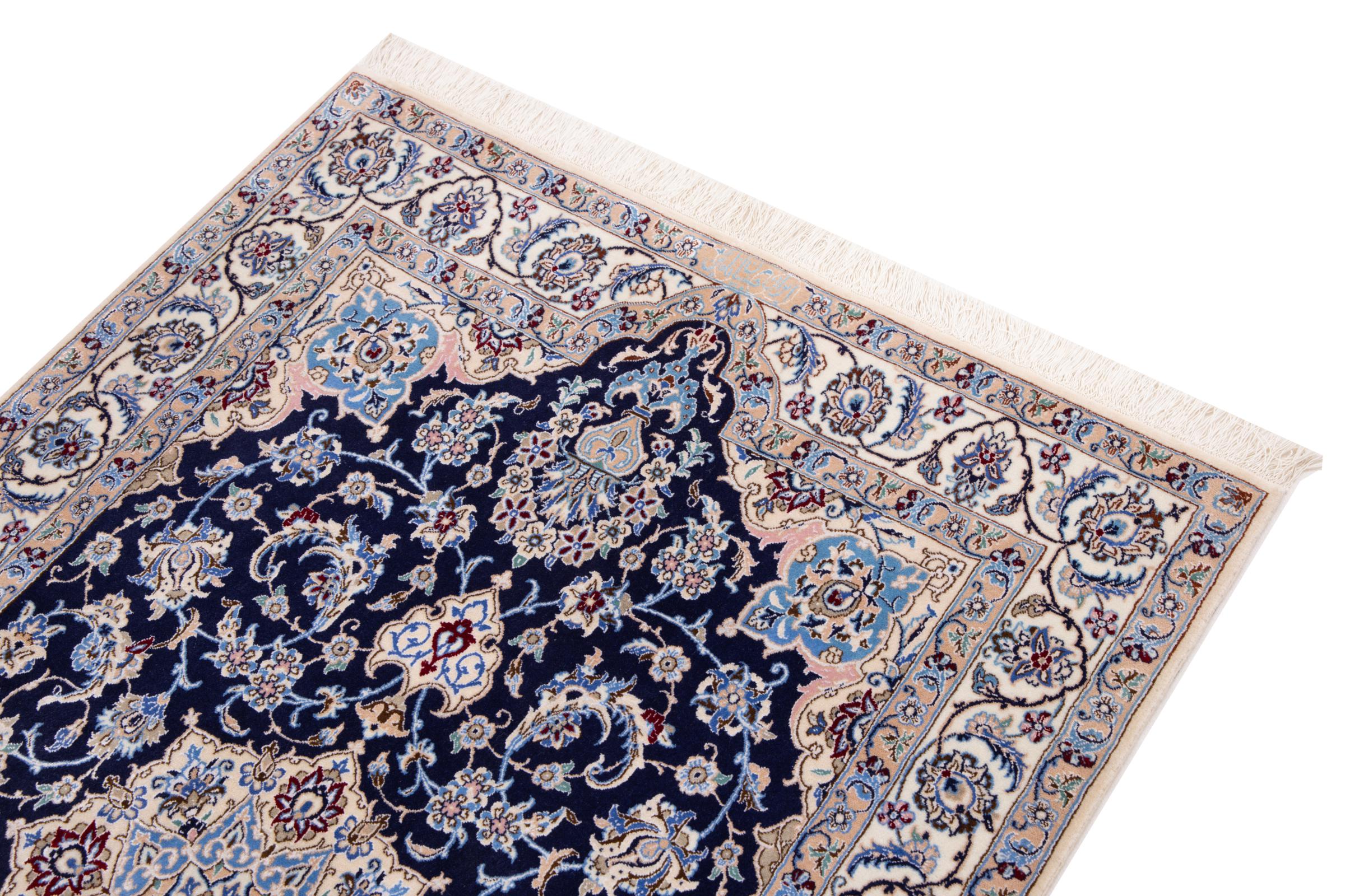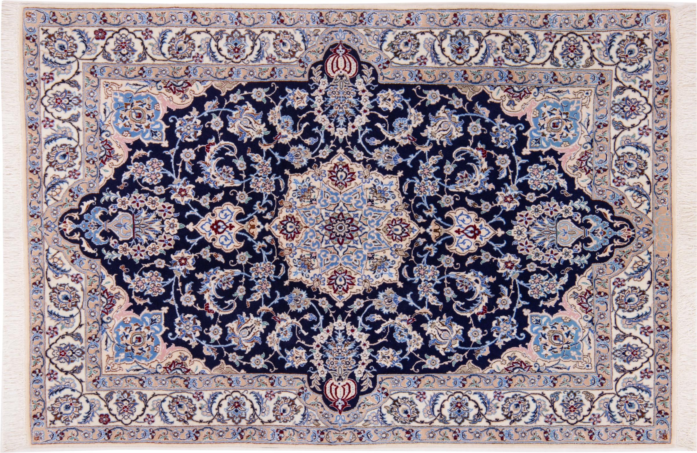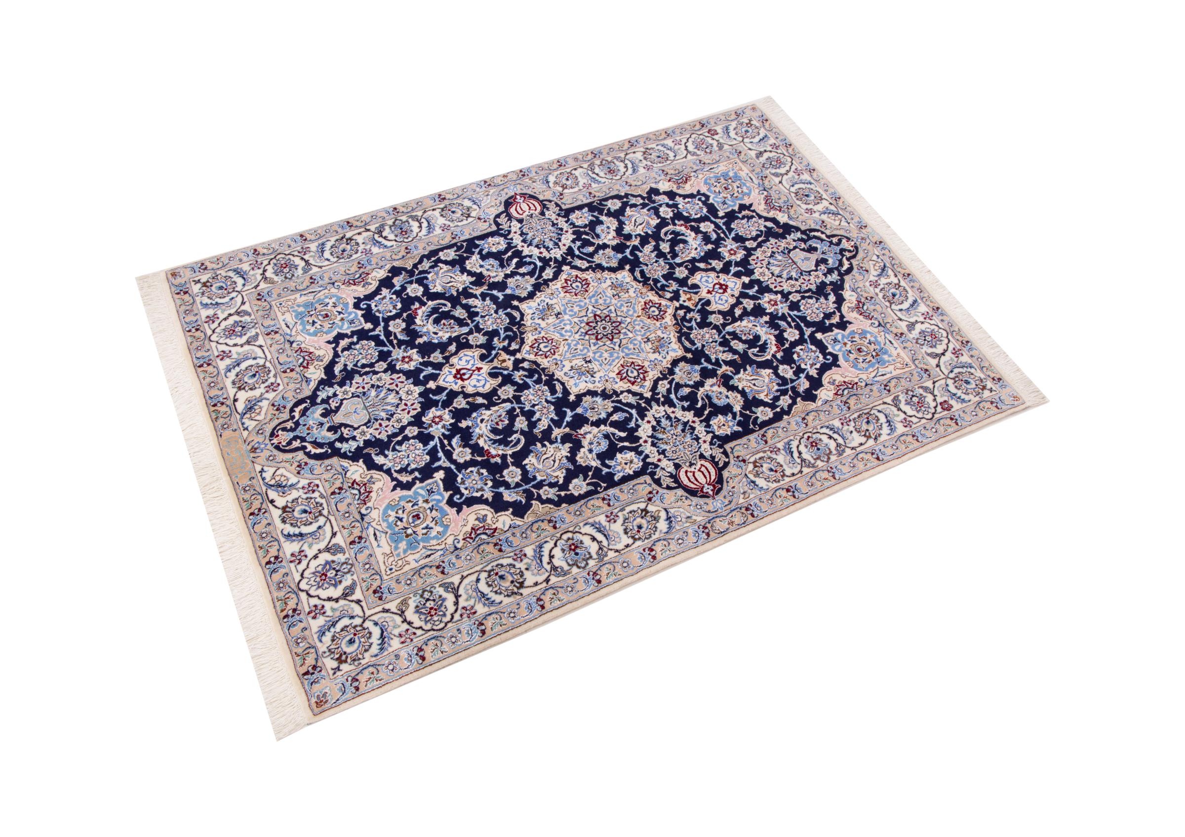 Dieser Nain Teppich verbindet Qualität, Tradition und ein unverkennbares Design. Er wurde in der gleichnamigen Wüstenstadt Nain aus hochwertiger Korkwolle und Naturseide handgeknüpft. Liebhabern wertvoller Teppiche aus dem Iran wird dieser Perserteppich gefallen. Mit