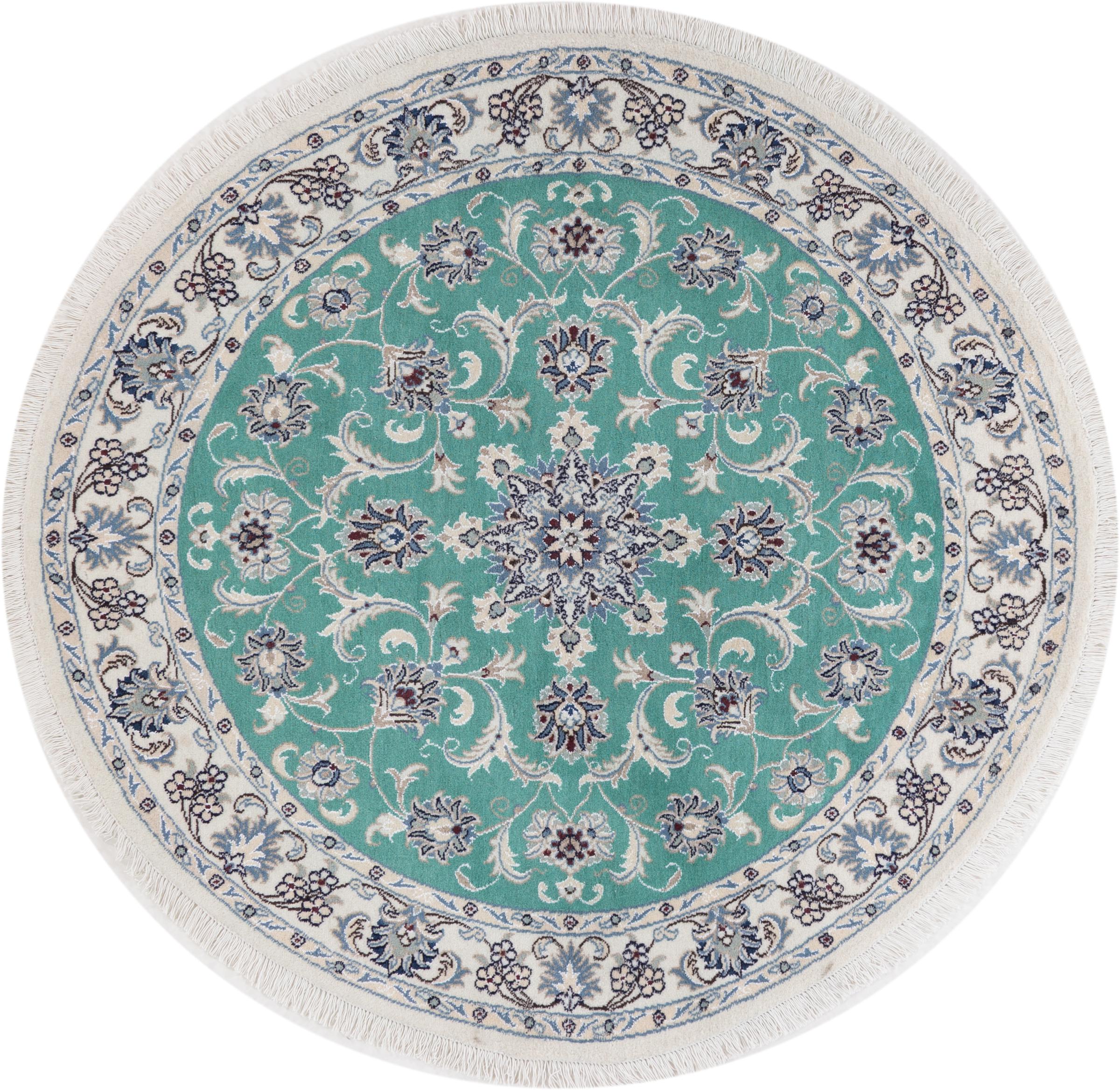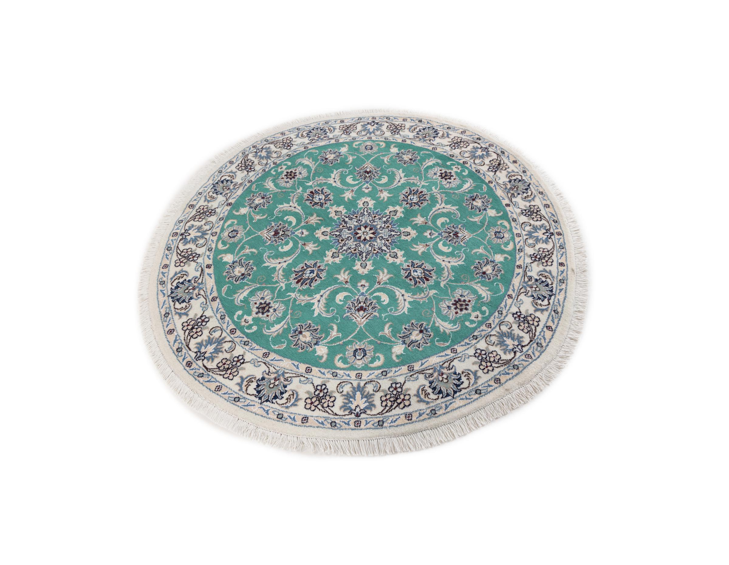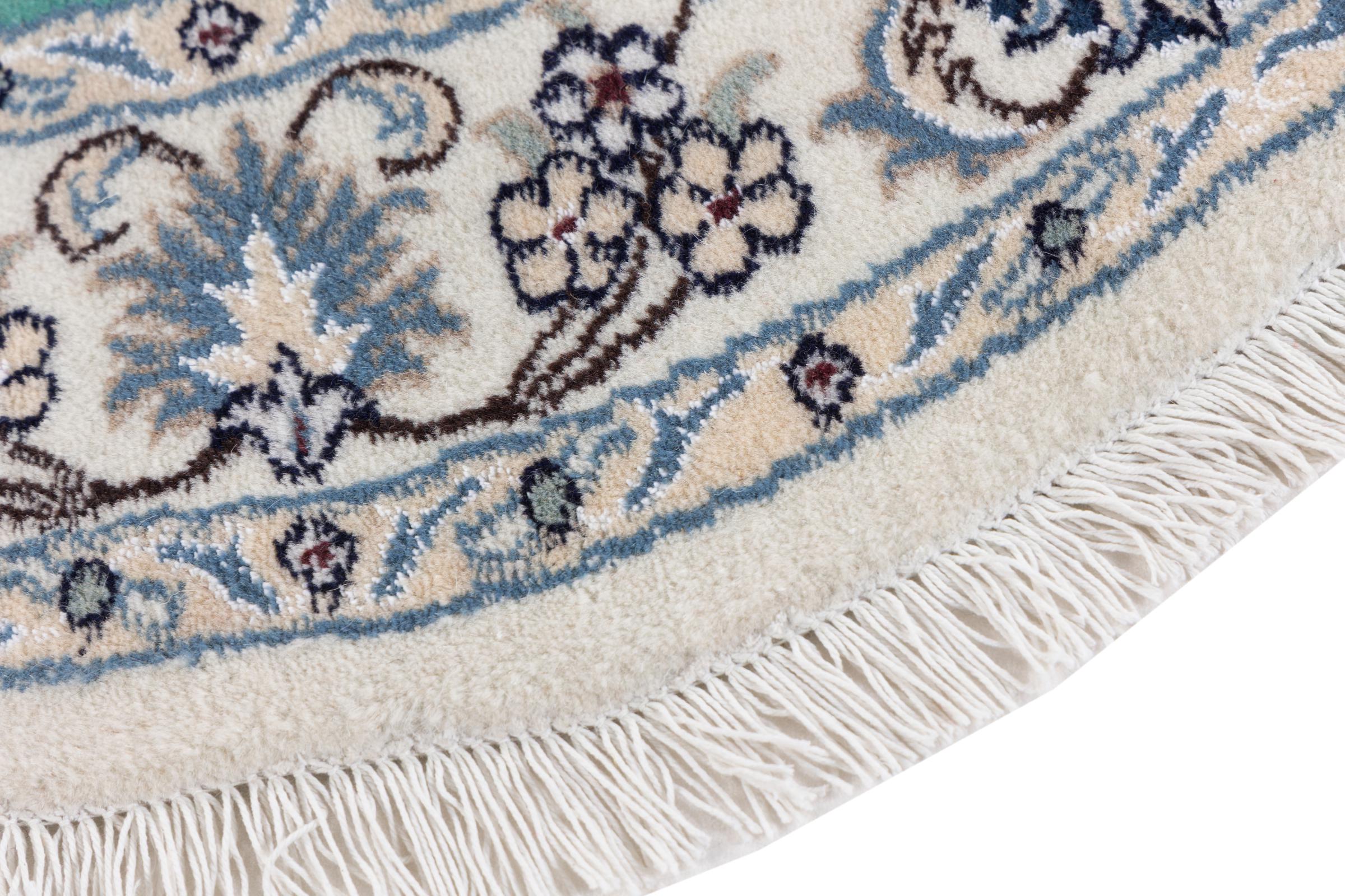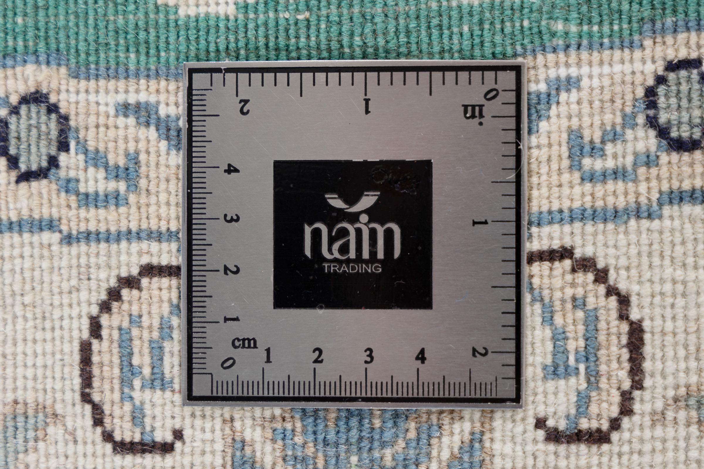 Dieser Nain-Teppich ist mit 12La klassifiziert. Elegant und edel wirkt er in seine typische Nain Farbgebung. Dieser Perserteppich wurde in der Stadt Nain, die am westlichen Rand der Wüste Dascht-e-Kavir liegt, aus hochwertige Wolle und Naturseide von Hand geknüpft. Mit 12La ist er nicht so fein und detailreich mit Ornamenten versehen, wie ein Nain 9La oder 6La.