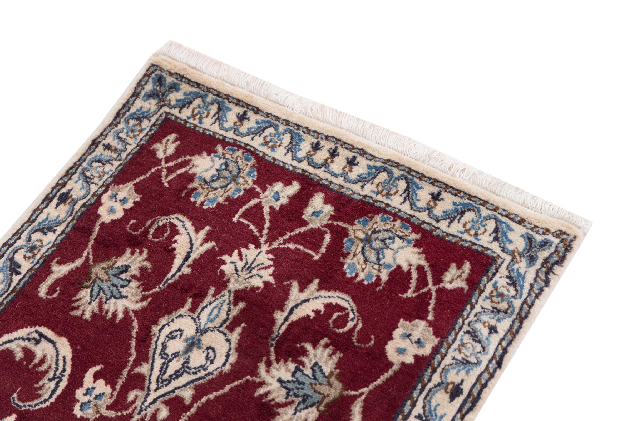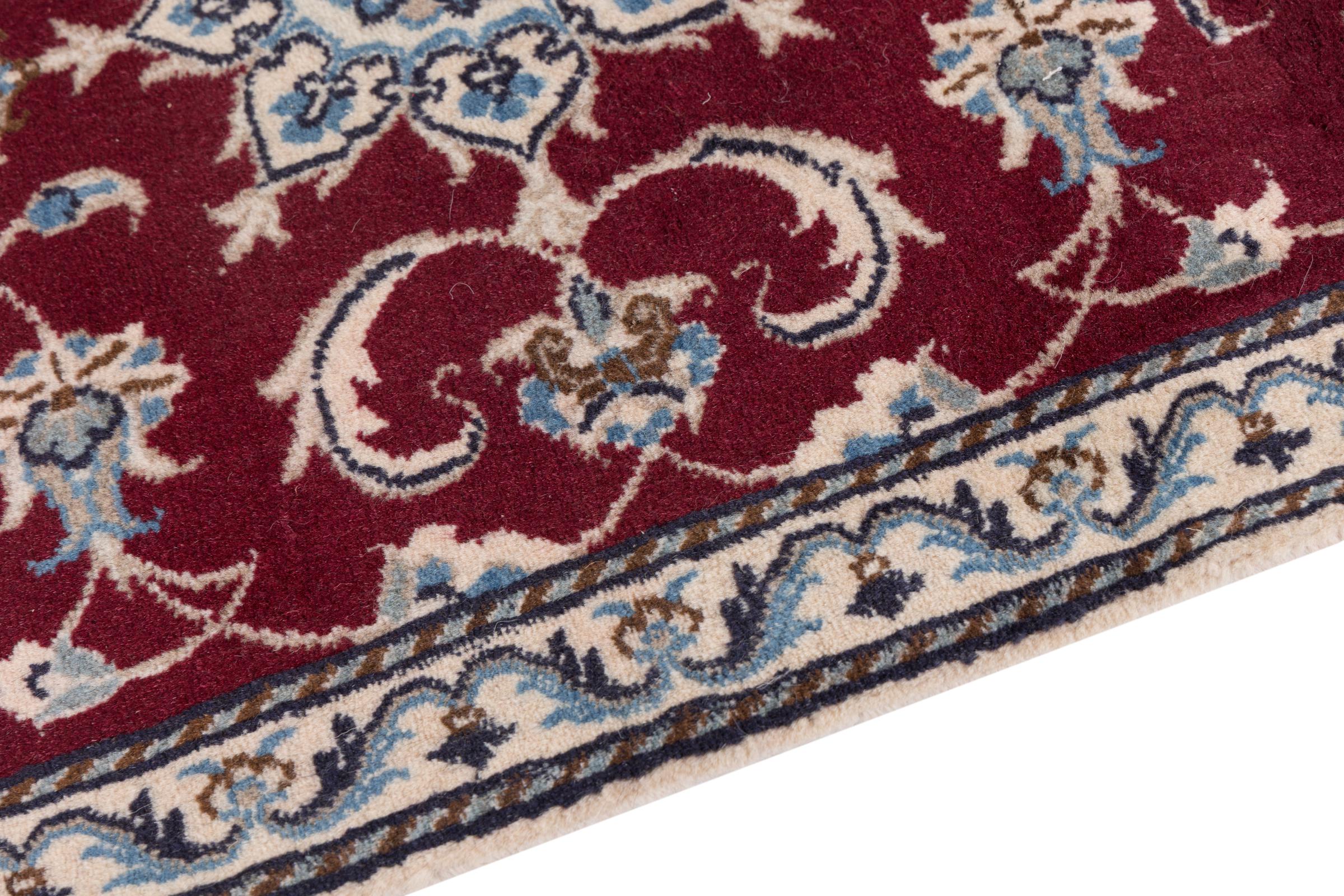 Teppiche aus der Stadt Nain, von der Grenze einer der größten Wüsten des Irans, gehören zu den wohl bekanntesten Perserteppichen weltweit. Ihr typisches Design ist unverwechselbar mit floralen Ornamenten, einem Mittelmedallion sowie beigen und roten oder blauen Farbtönen gehalten. Dank ihrer Bezeichnungen 4La, 6La, 9La und 12La lassen sich die Feinheiten eines Nain Teppichs auf einen Blick erkennen. Dabei gilt, je geringer die „La“ Zahl, desto höher die Knotendichte und somit auch die Feinheit des Teppichs.