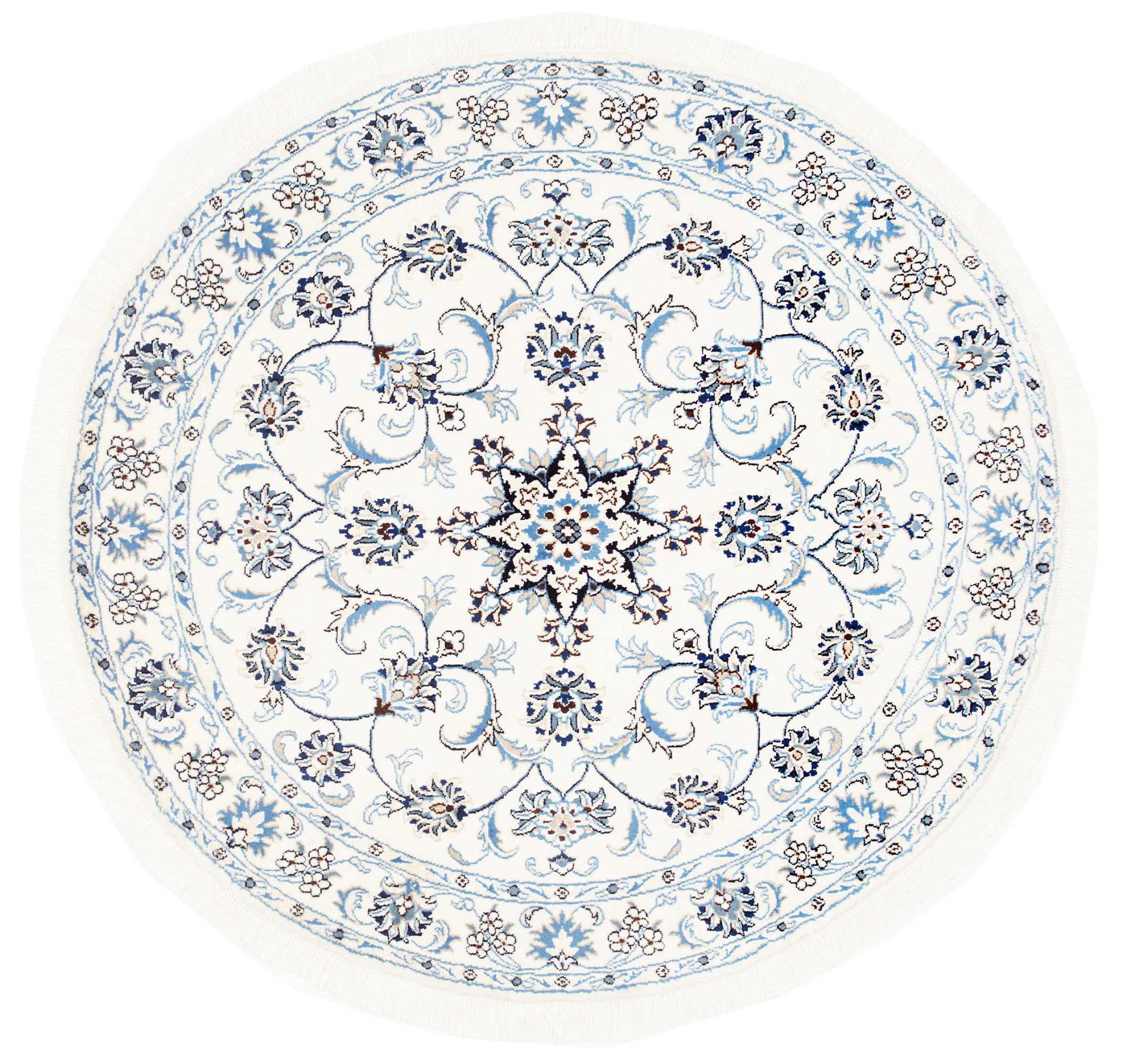 Teppiche aus der Stadt Nain, von der Grenze einer der größten Wüsten des Irans, gehören zu den wohl bekanntesten Perserteppichen weltweit. Ihr typisches Design ist unverwechselbar mit floralen Ornamenten, einem Mittelmedallion sowie beigen und roten oder blauen Farbtönen gehalten. Dank ihrer Bezeichnungen 4La, 6La, 9La und 12La lassen sich die Feinheiten eines Nain Teppichs auf einen Blick erkennen. Dabei gilt, je geringer die „La“ Zahl, desto höher die Knotendichte und somit auch die Feinheit des Teppichs.