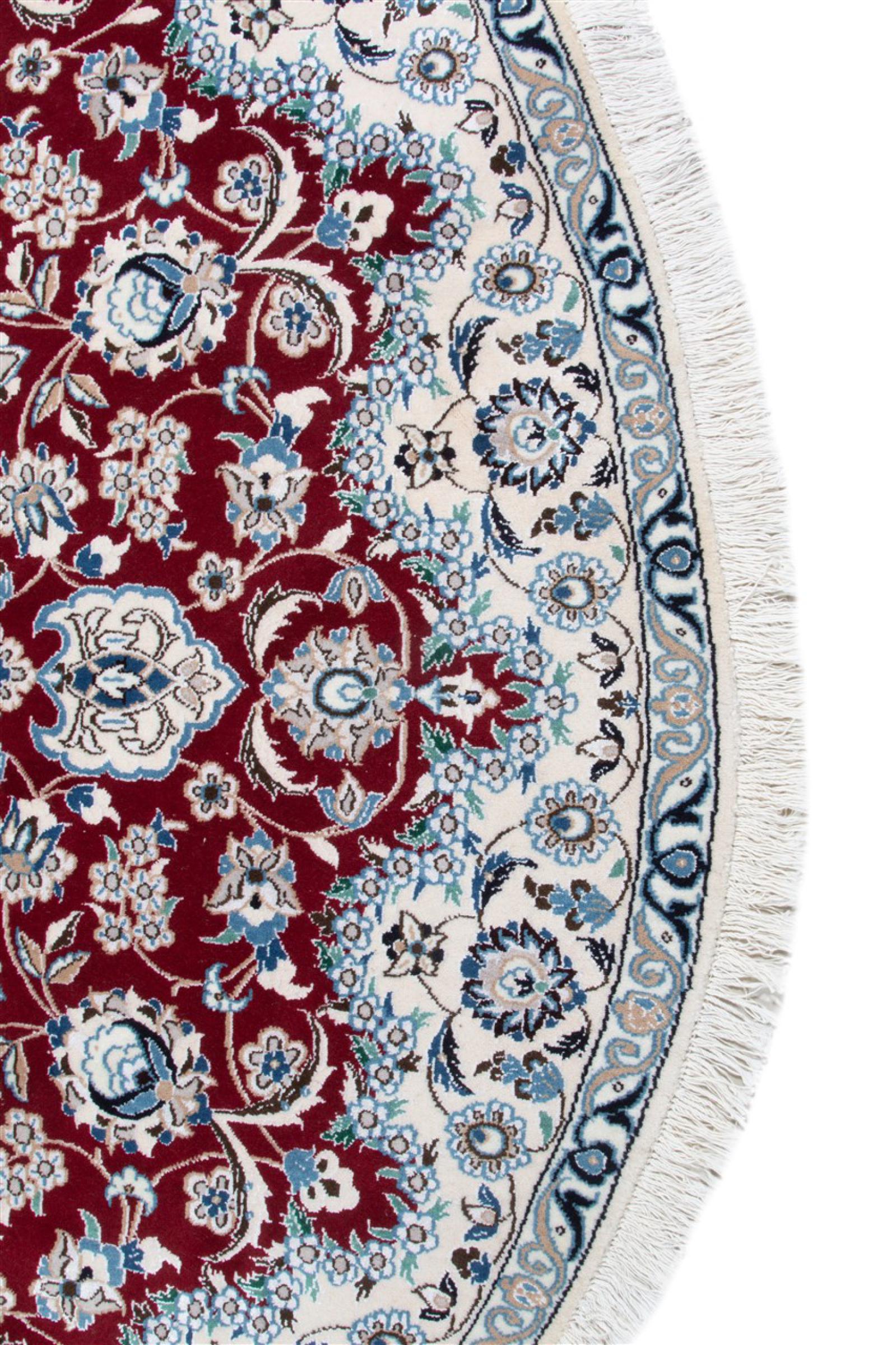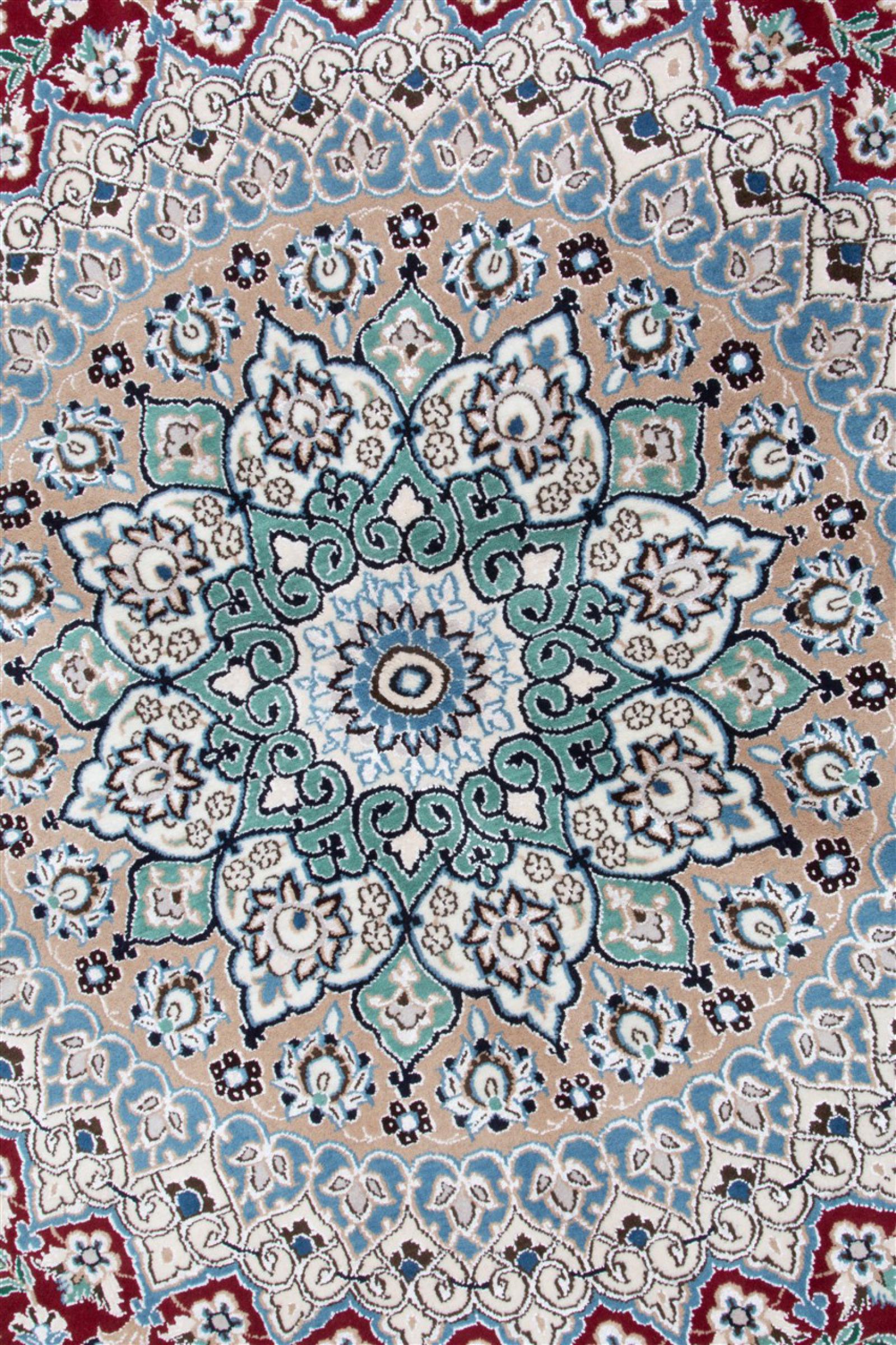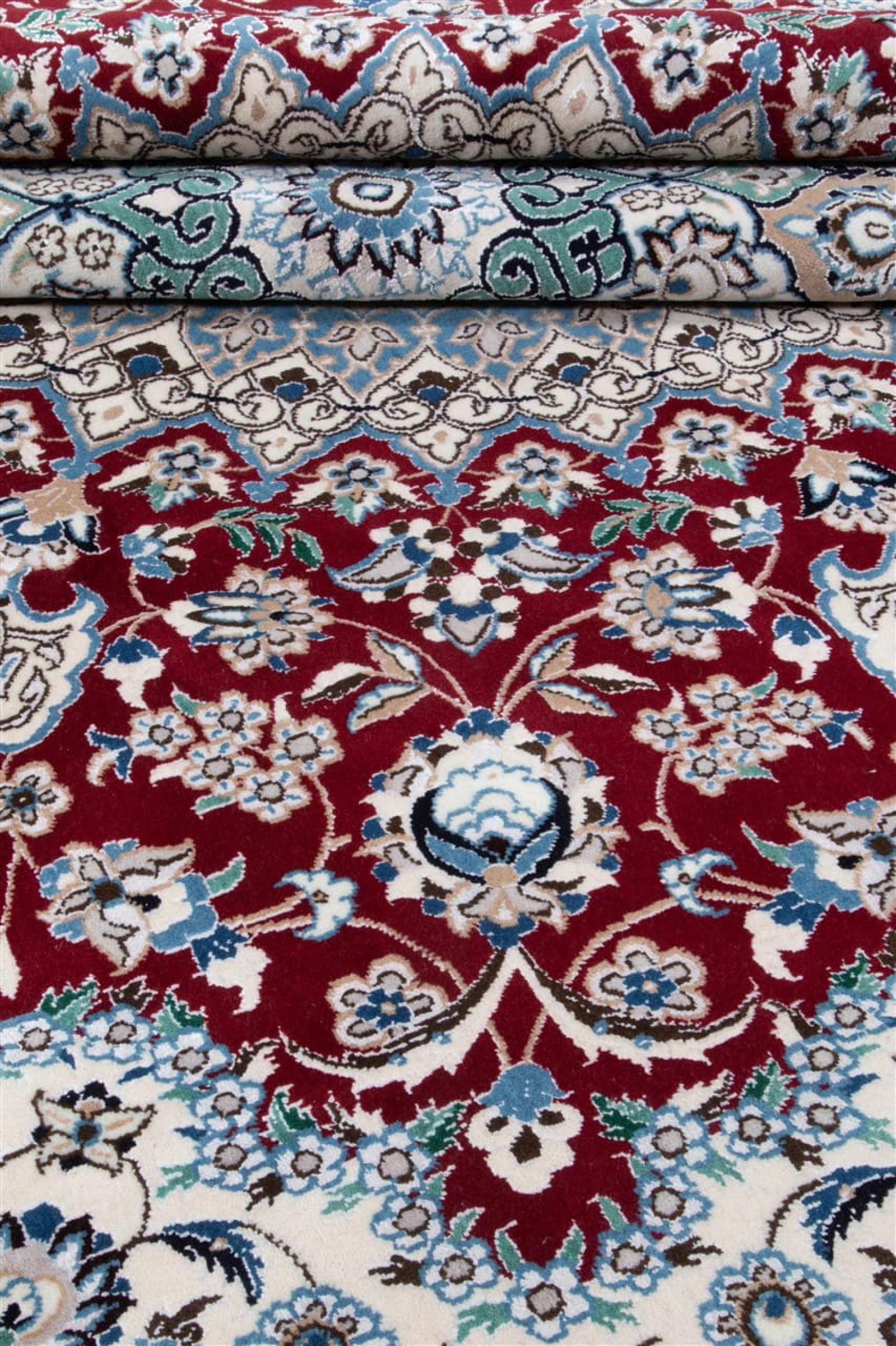 Teppiche aus der Stadt Nain, von der Grenze einer der größten Wüsten des Irans, gehören zu den wohl bekanntesten Perserteppichen weltweit. Ihr typisches Design ist unverwechselbar mit floralen Ornamenten, einem Mittelmedallion sowie beigen und roten oder blauen Farbtönen gehalten. Dank ihrer Bezeichnungen 4La, 6La, 9La und 12La lassen sich die Feinheiten eines Nain Teppichs auf einen Blick erkennen. Dabei gilt, je geringer die „La“ Zahl, desto höher die Knotendichte und somit auch die Feinheit des Teppichs.
