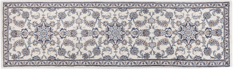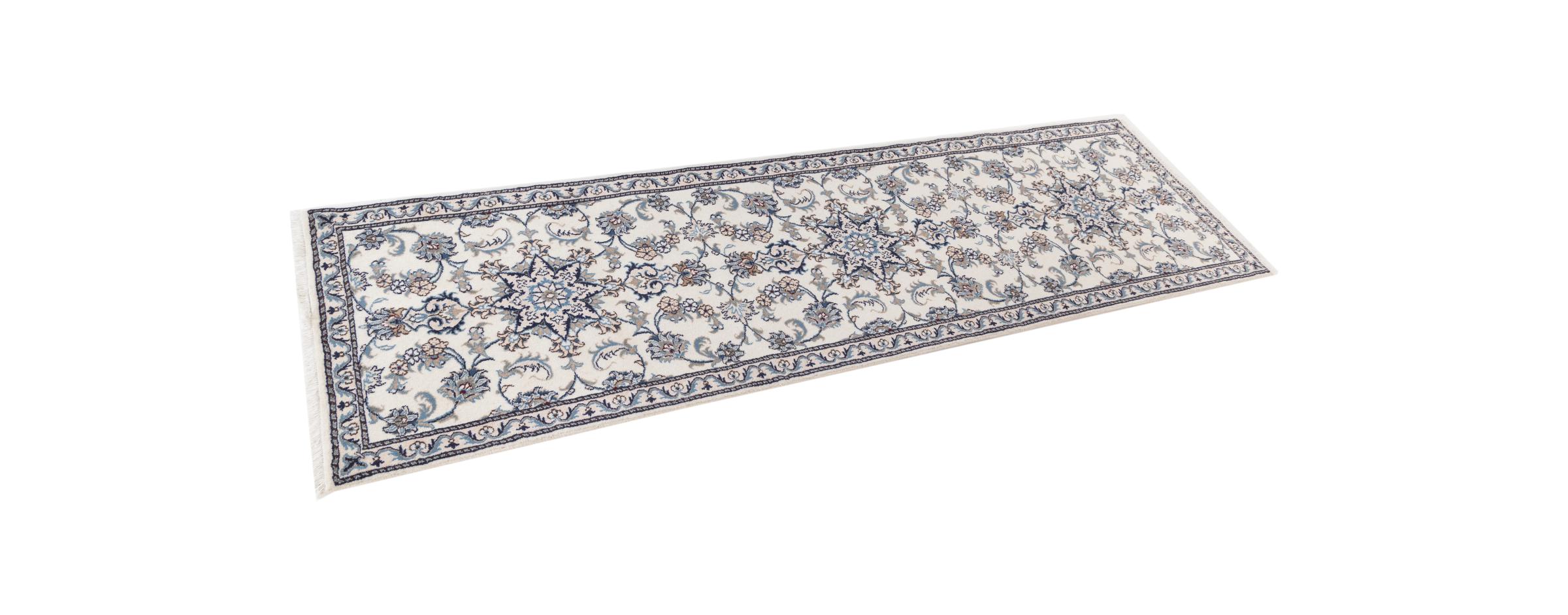 Teppiche aus der Stadt Nain, von der Grenze einer der größten Wüsten des Irans, gehören zu den wohl bekanntesten Perserteppichen weltweit. Ihr typisches Design ist unverwechselbar mit floralen Ornamenten, einem Mittelmedallion sowie beigen und roten oder blauen Farbtönen gehalten. Dank ihrer Bezeichnungen 4La, 6La, 9La und 12La lassen sich die Feinheiten eines Nain Teppichs auf einen Blick erkennen. Dabei gilt, je geringer die „La“ Zahl, desto höher die Knotendichte und somit auch die Feinheit des Teppichs.