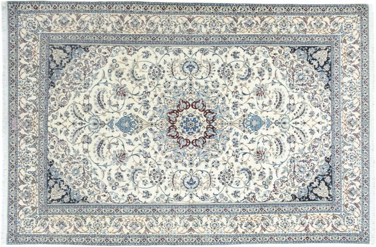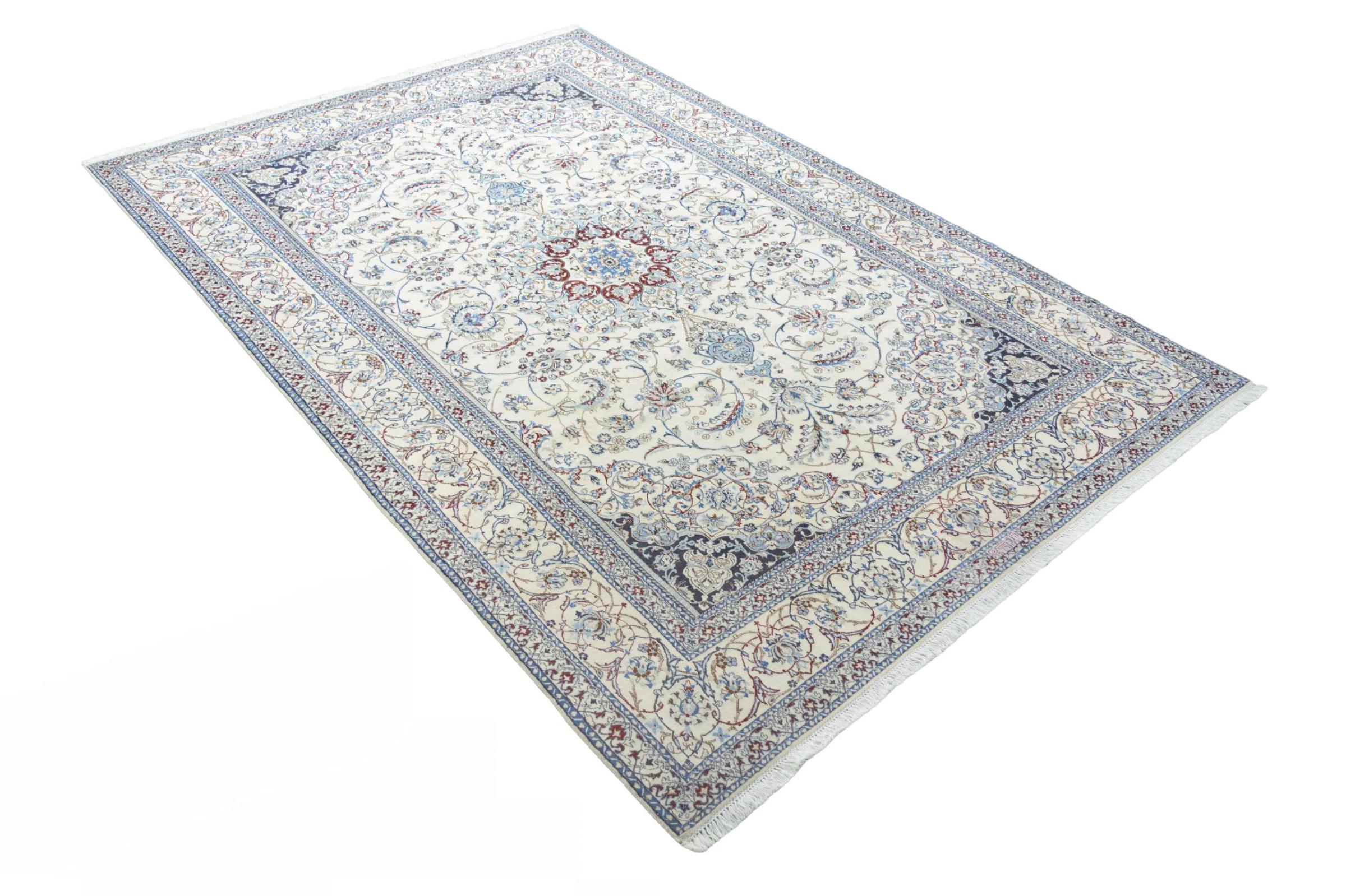 Teppiche aus der Stadt Nain, von der Grenze einer der größten Wüsten des Irans, gehören zu den wohl bekanntesten Perserteppichen weltweit. Ihr typisches Design ist unverwechselbar mit floralen Ornamenten, einem Mittelmedallion sowie beigen und roten oder blauen Farbtönen gehalten. Dank ihrer Bezeichnungen 4La, 6La, 9La und 12La lassen sich die Feinheiten eines Nain Teppichs auf einen Blick erkennen. Dabei gilt, je geringer die „La“ Zahl, desto höher die Knotendichte und somit auch die Feinheit des Teppichs.