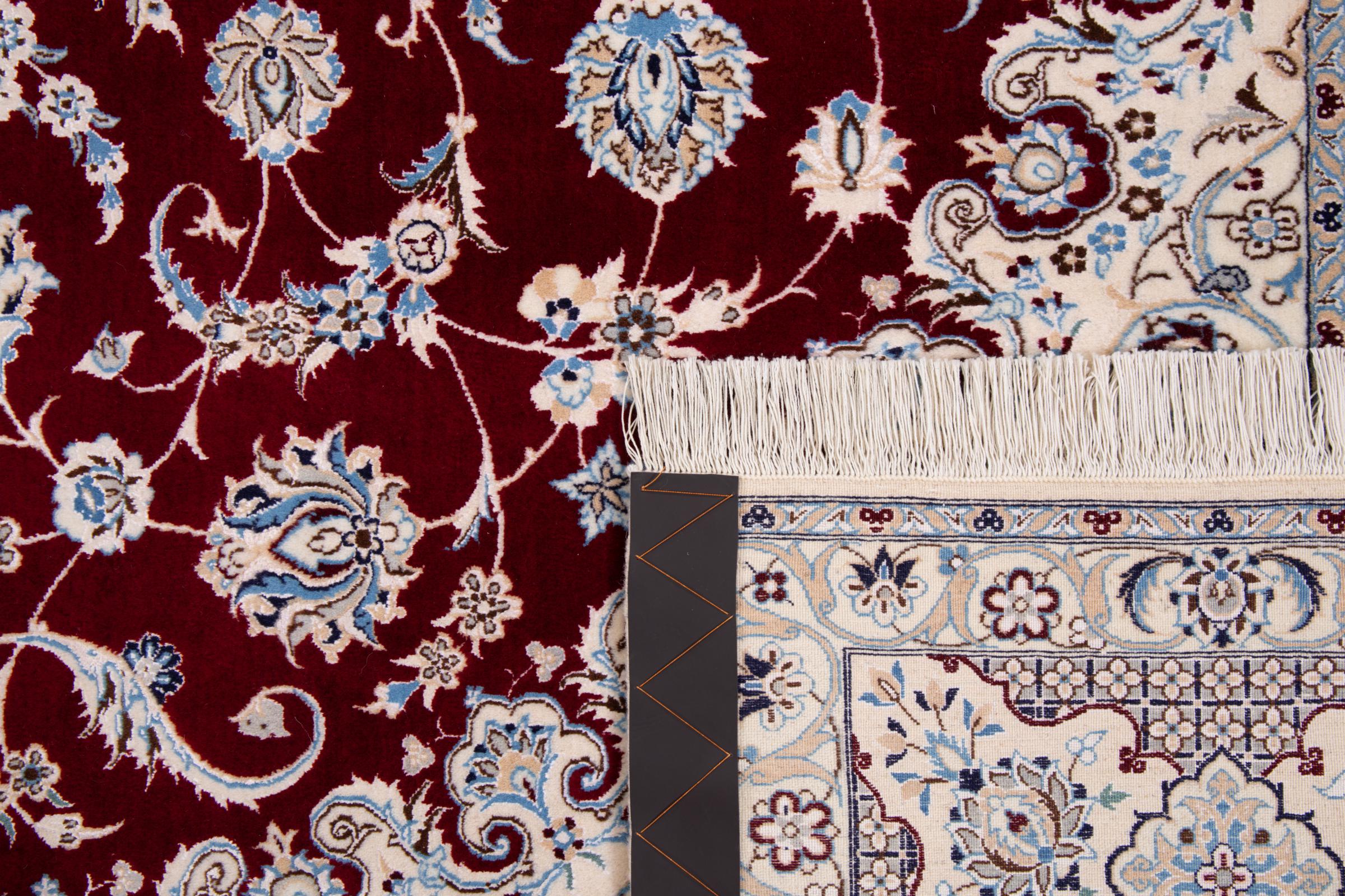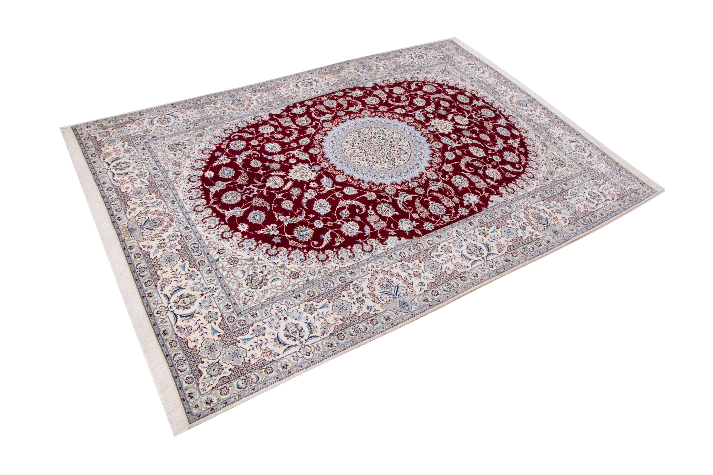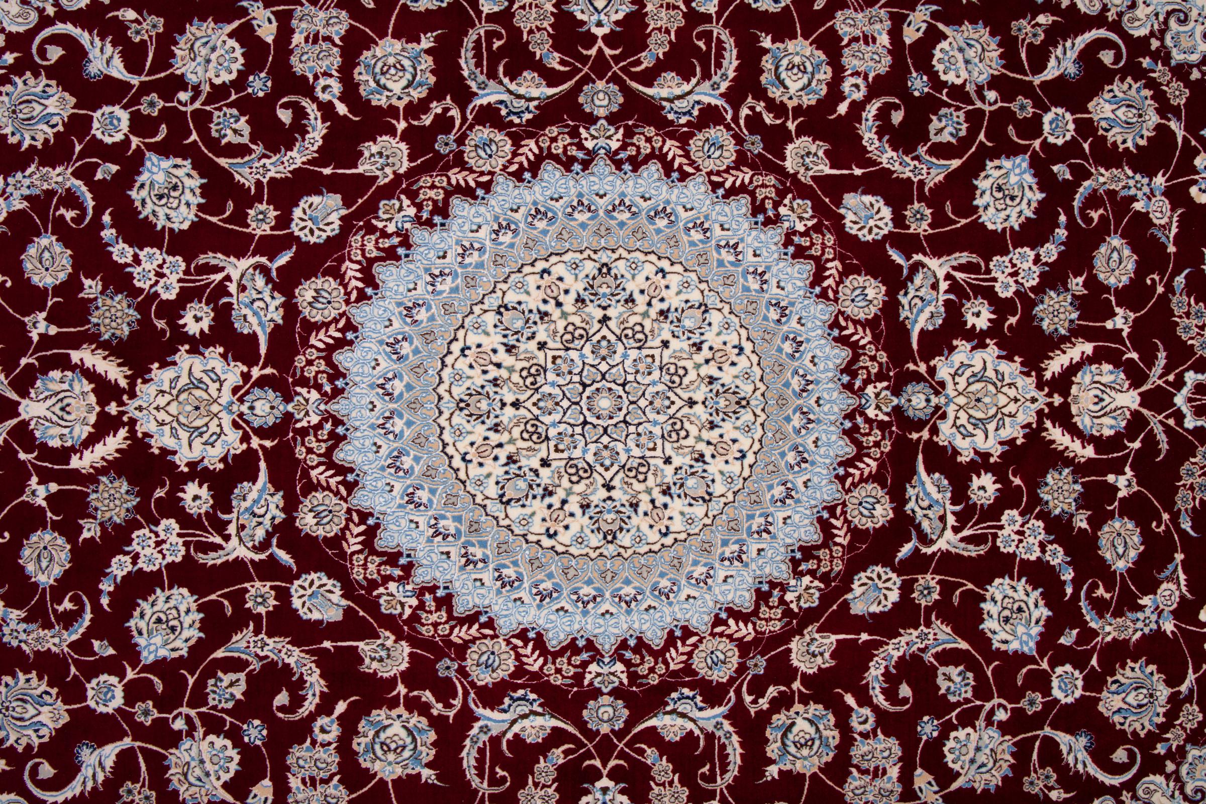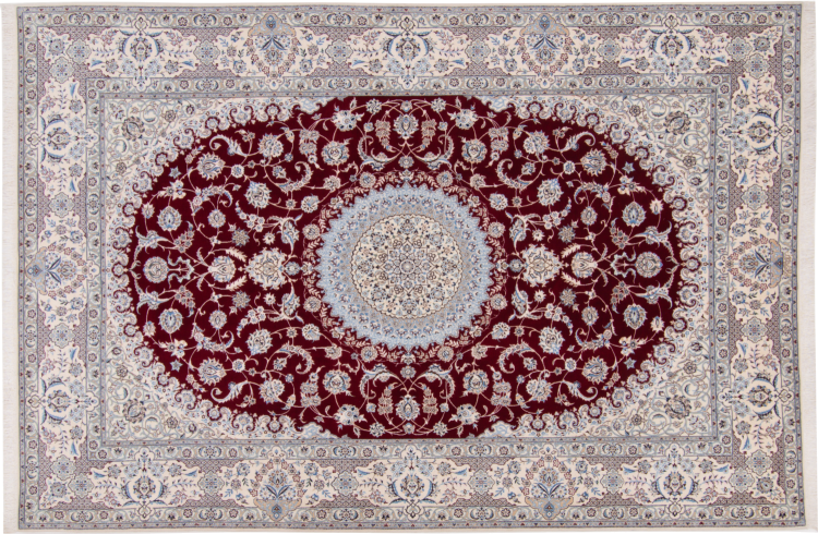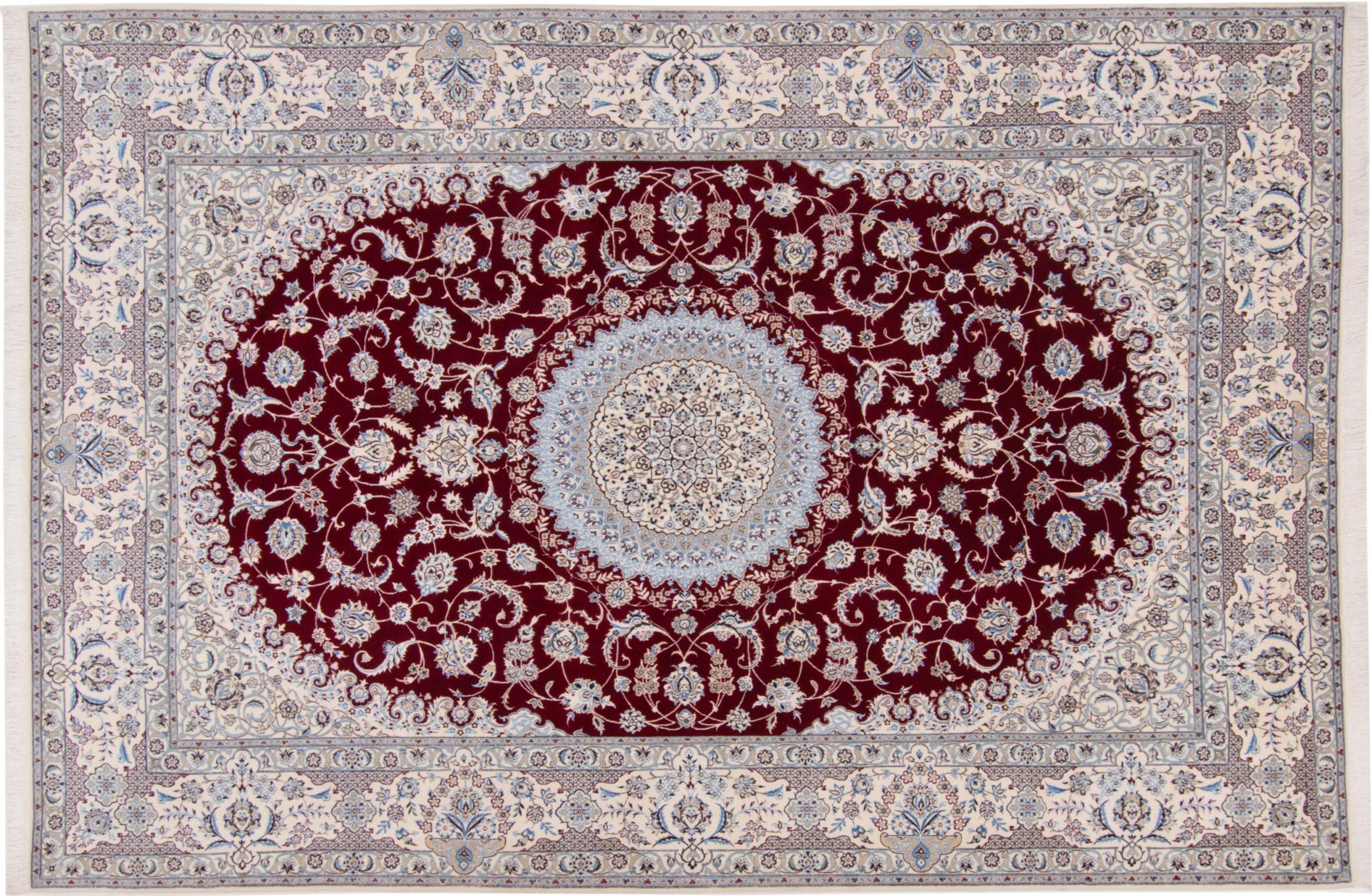 Teppiche aus der Stadt Nain, von der Grenze einer der größten Wüsten des Irans, gehören zu den wohl bekanntesten Perserteppichen weltweit. Ihr typisches Design ist unverwechselbar mit floralen Ornamenten, einem Mittelmedallion sowie beigen und roten oder blauen Farbtönen gehalten. Dank ihrer Bezeichnungen 4La, 6La, 9La und 12La lassen sich die Feinheiten eines Nain Teppichs auf einen Blick erkennen. Dabei gilt, je geringer die „La“ Zahl, desto höher die Knotendichte und somit auch die Feinheit des Teppichs.