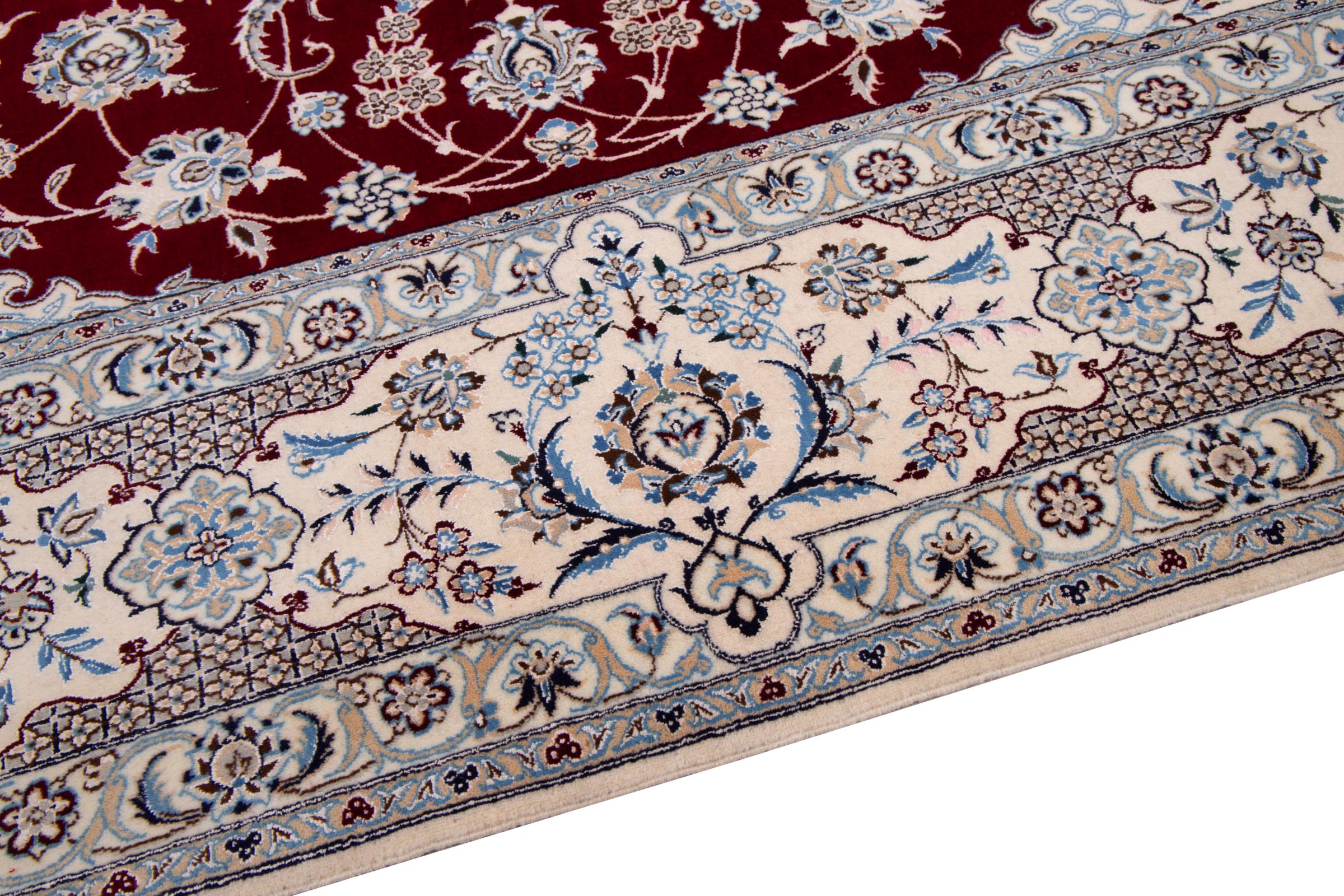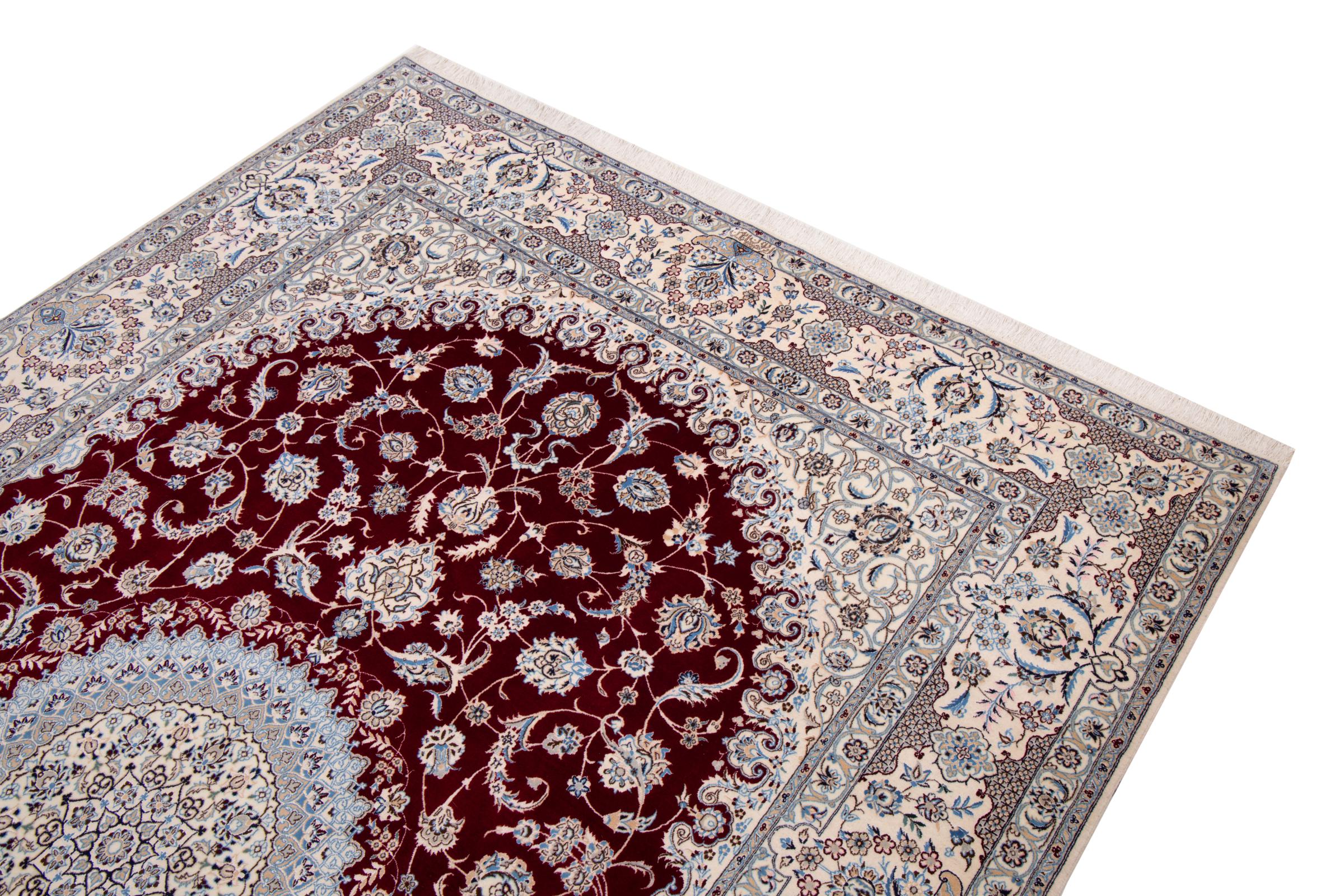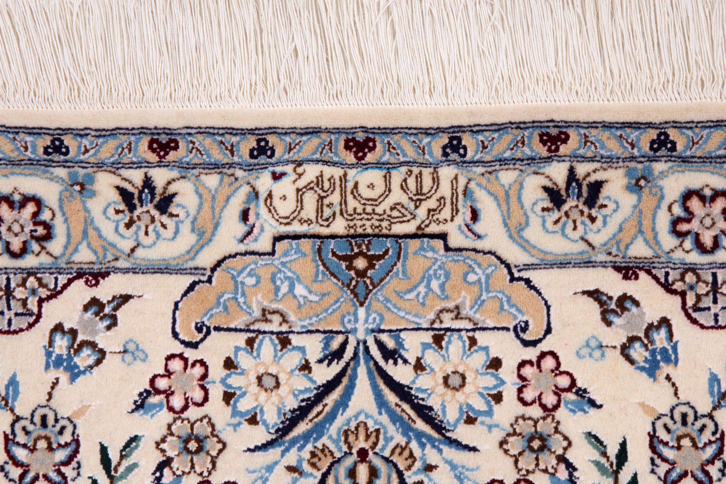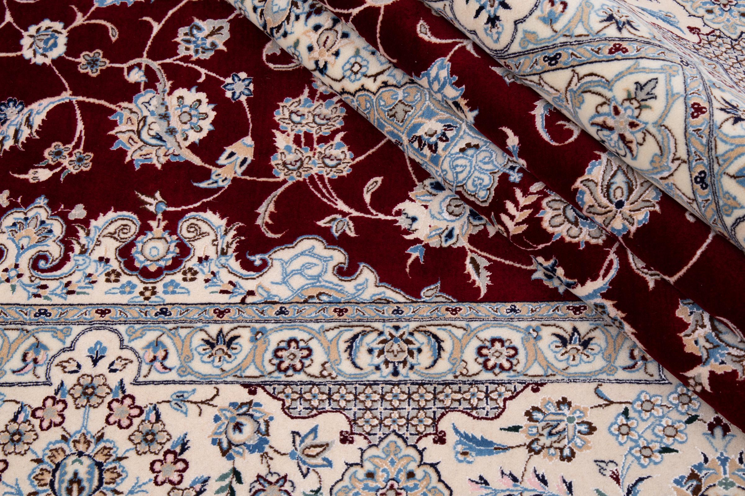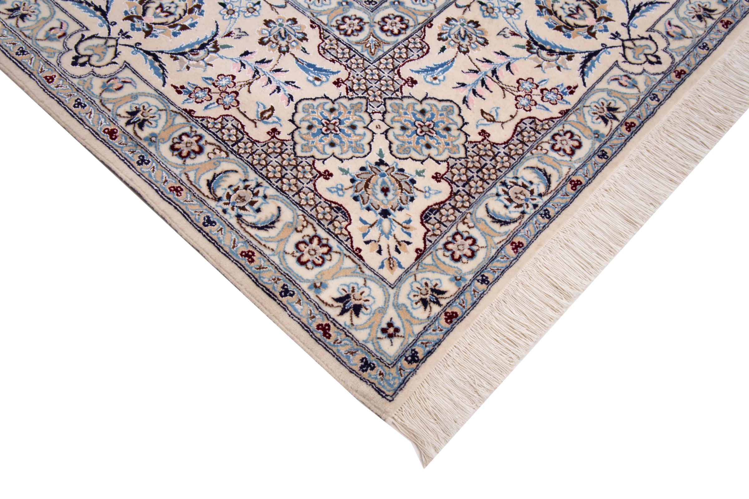 Dieser Nain Teppich verbindet Qualität, Tradition und ein unverkennbares Design. Er wurde in der gleichnamigen Wüstenstadt Nain aus hochwertiger Korkwolle und Naturseide handgeknüpft. Liebhabern wertvoller Teppiche aus dem Iran wird dieser Perserteppich gefallen. Mit Nain Teppichen der 6La und 4La Klassifikation besitzt man ein echtes Kunstwerk mit einem unglaublichen Detailgrad, in dem man sich regelrecht verlieren kann. Nain 4La Teppiche sind heute kaum noch zu finden, da sie extrem aufwändig in der Fertigung sind.