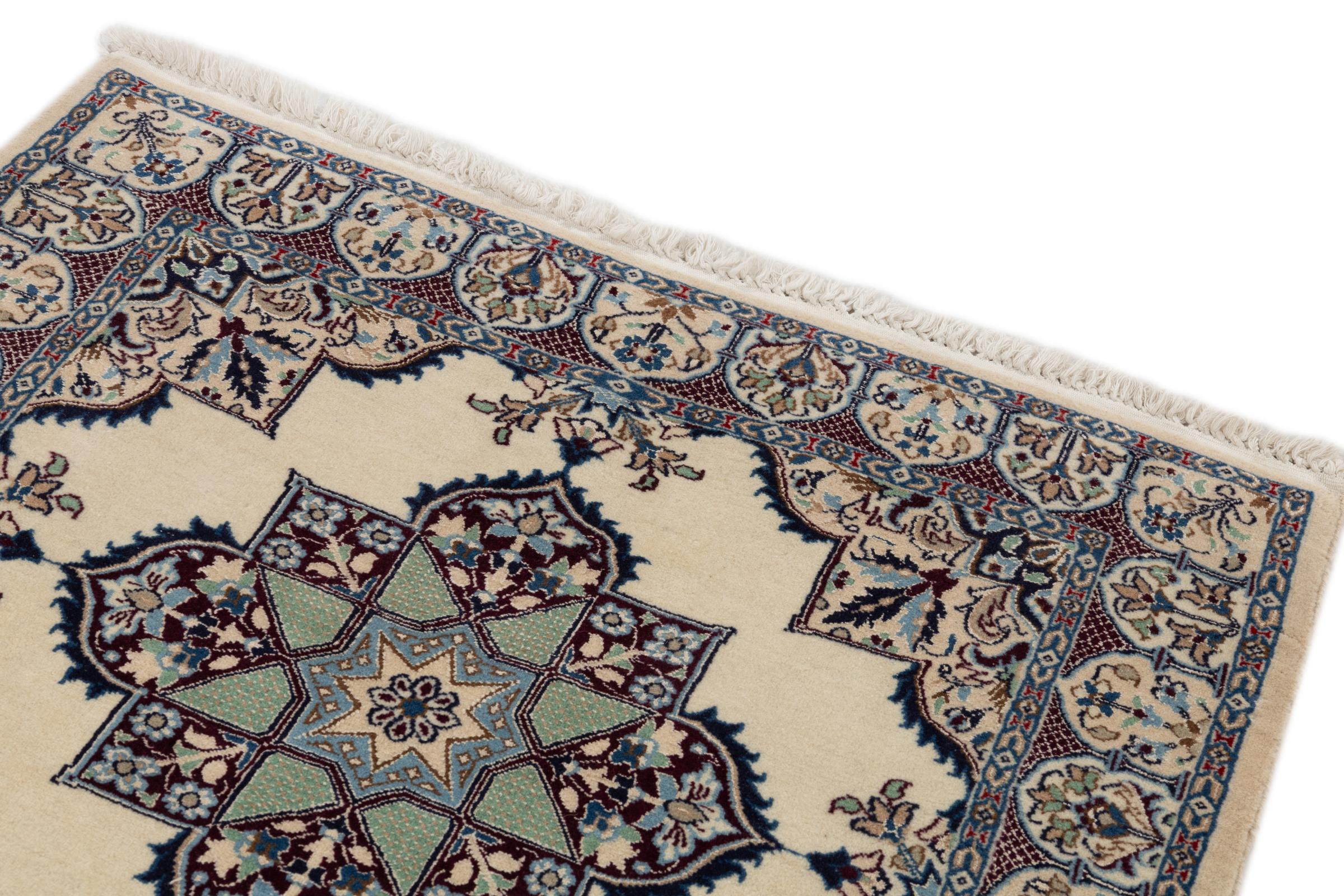 Dieser Teppich stammt aus dem Iran (ehemals Persien) und genießt als Perserteppich den wohl höchsten Ruf unter allen handgeknüpften Teppicharten. Keine Region schaut auf eine vergleichbar lange Tradition im Teppichknüpfen zurück wie der Iran. So kommen die wohl feinsten und aufwendigsten Teppiche hierher. Die Robustheit, Langlebigkeit und Qualität des persischen Knotens sind noch heute unübertroffen. Perserteppiche werden in der Regel nach Ihrer Herkunftsregion benannt. So kommt sowohl ein Nain, ein Ghom als auch ein Isfahan Teppich aus der jeweils gleichnamigen Stadt im Iran.