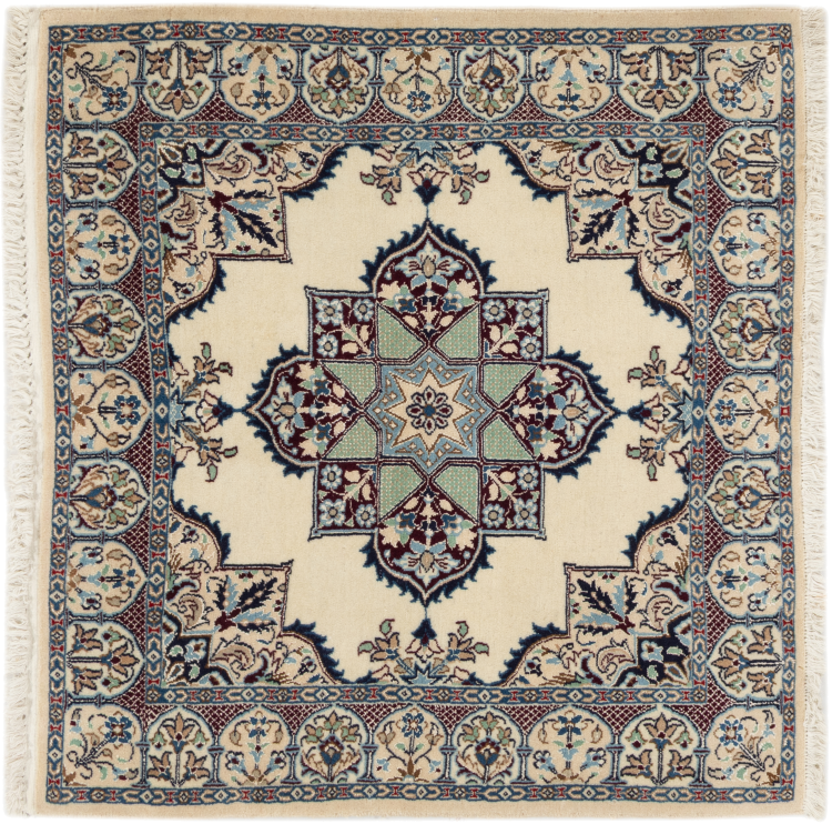 Teppich-Nr.: 297046006958630 Größe: 96x93 cm Dicke: ca. 5 mm Knoten: 410 000 - 450 000 / m² Verarbeitung: Handgeknüpft Flor: Natürliche Wolle Kette: Baumwolle Ursprung: Persien Alter: ca. 20-30 Jahre (Neu) Gewicht: ca. 3 kg Anzahl auf Lager: Unikat - Nur 1 auf Lager