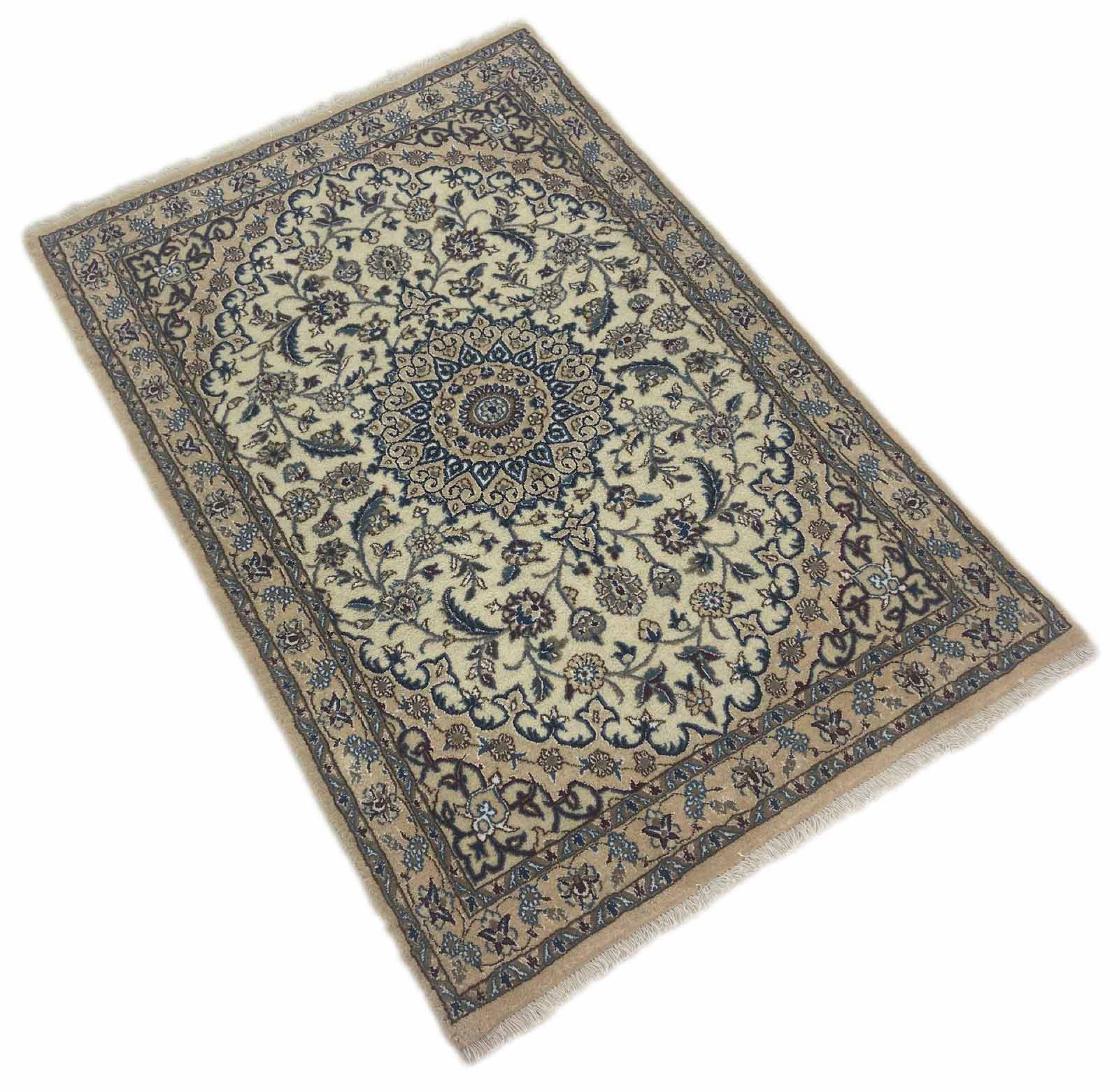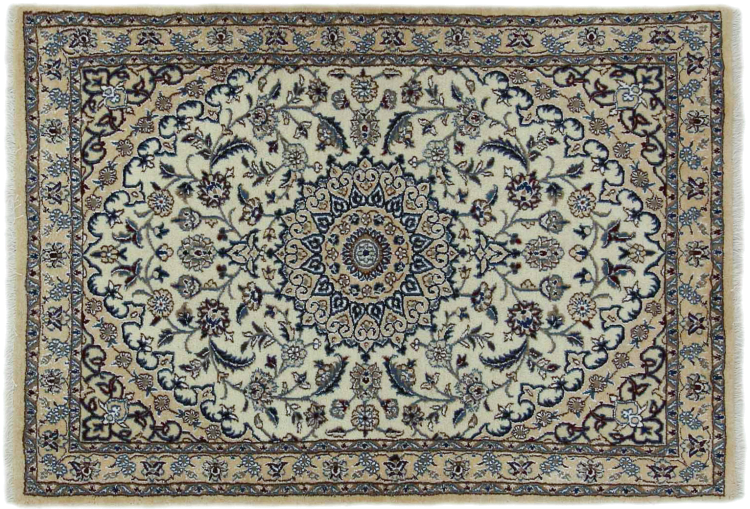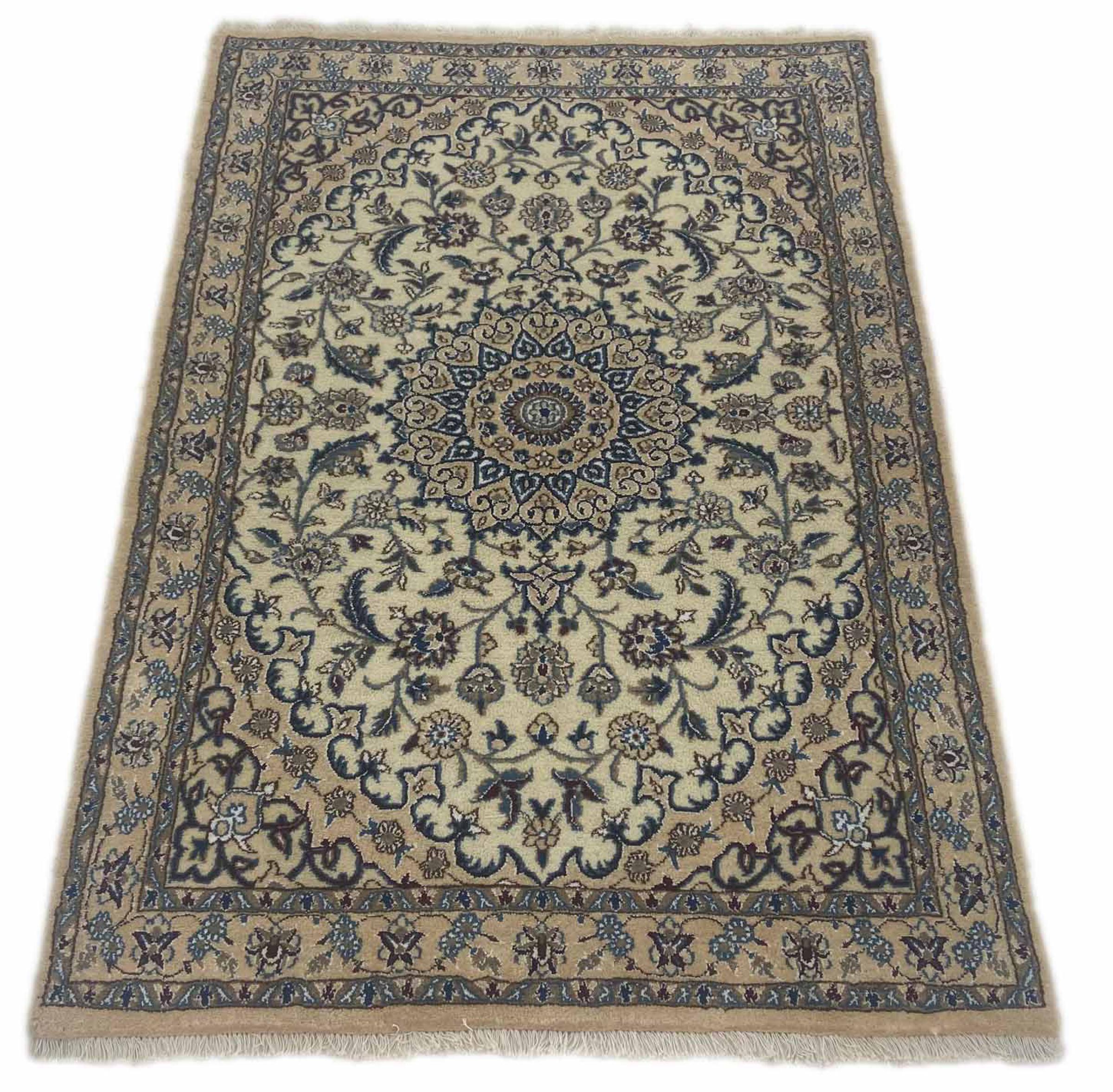 Teppiche aus der Stadt Nain, von der Grenze einer der größten Wüsten des Irans, gehören zu den wohl bekanntesten Perserteppichen weltweit. Ihr typisches Design ist unverwechselbar mit floralen Ornamenten, einem Mittelmedallion sowie beigen und roten oder blauen Farbtönen gehalten. Dank ihrer Bezeichnungen 4La, 6La, 9La und 12La lassen sich die Feinheiten eines Nain Teppichs auf einen Blick erkennen. Dabei gilt, je geringer die „La“ Zahl, desto höher die Knotendichte und somit auch die Feinheit des Teppichs.