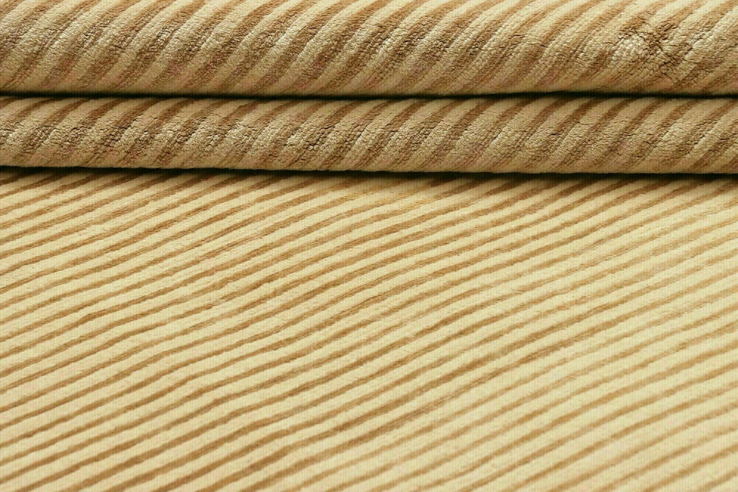 Dieser Teppich stammt aus Nepal und wurde dort von Hand geknüpft. Typischerweise sind Nepal Teppiche etwas gröber und besitzen moderne farbenfrohe Muster. Klassische Varianten greifen Designs von traditionellen chinesischen Teppichen auf. Das Aussehen der Nepal Teppiche hat sich über die Zeit hinweg auf die Nachfrage westlicher Märkte ausgerichtet. So findet man heute Pastellfarben und geometrische Muster auf diesen handgeknüpften Teppichen.