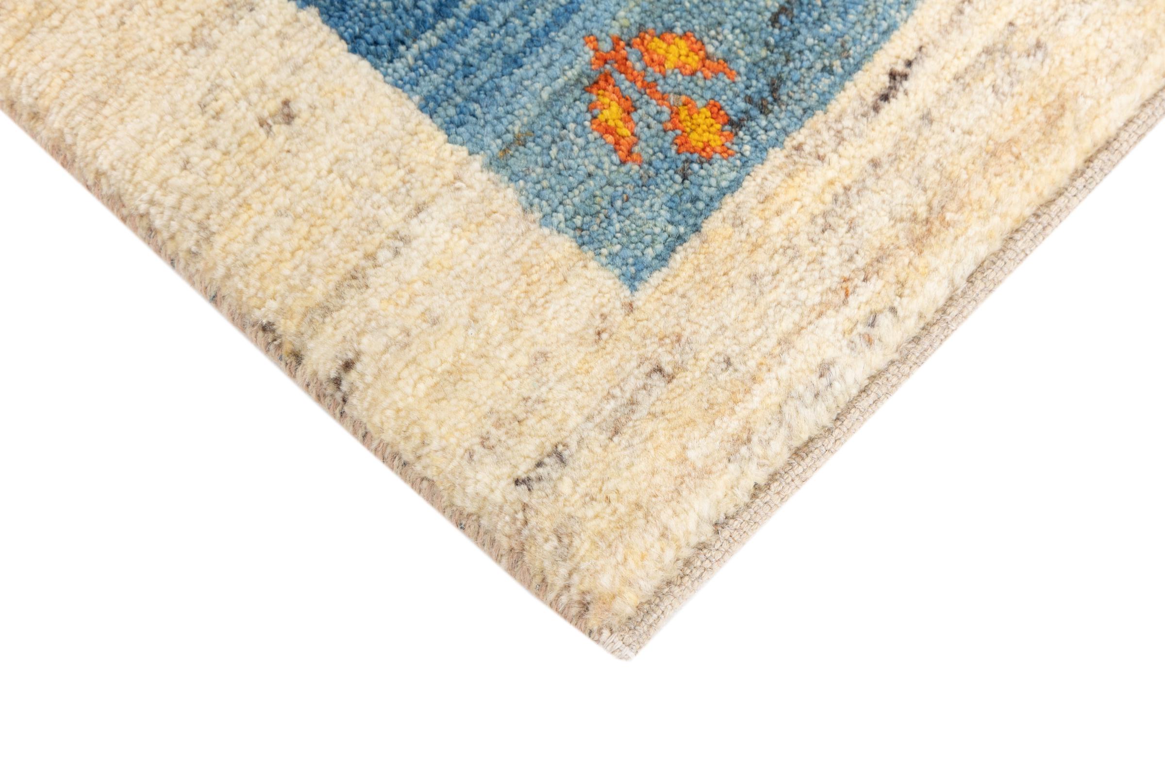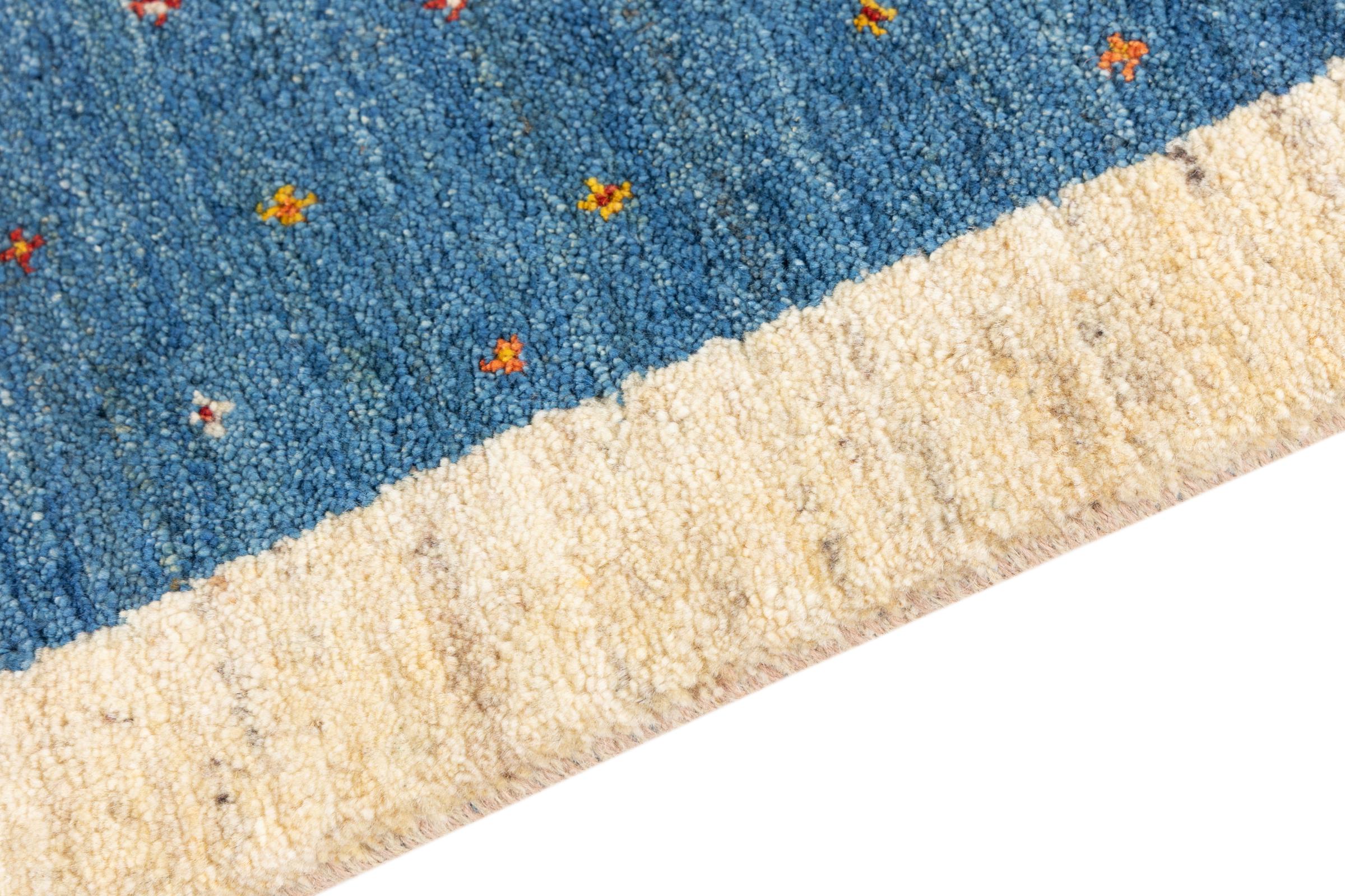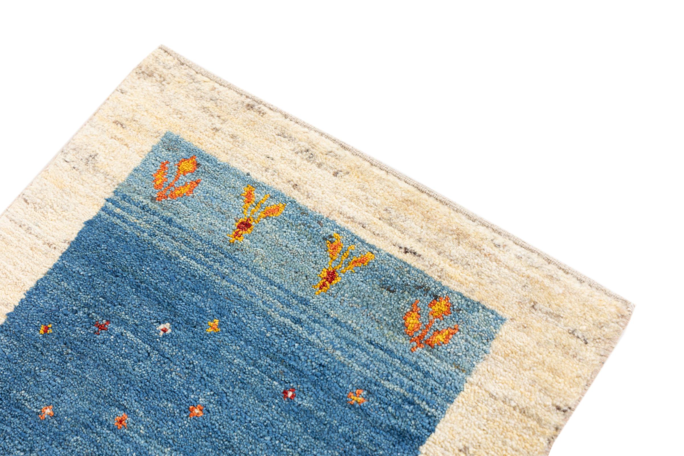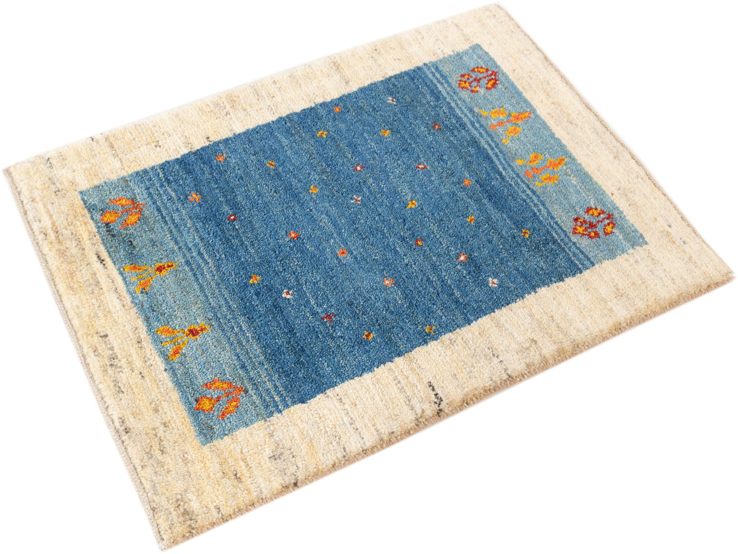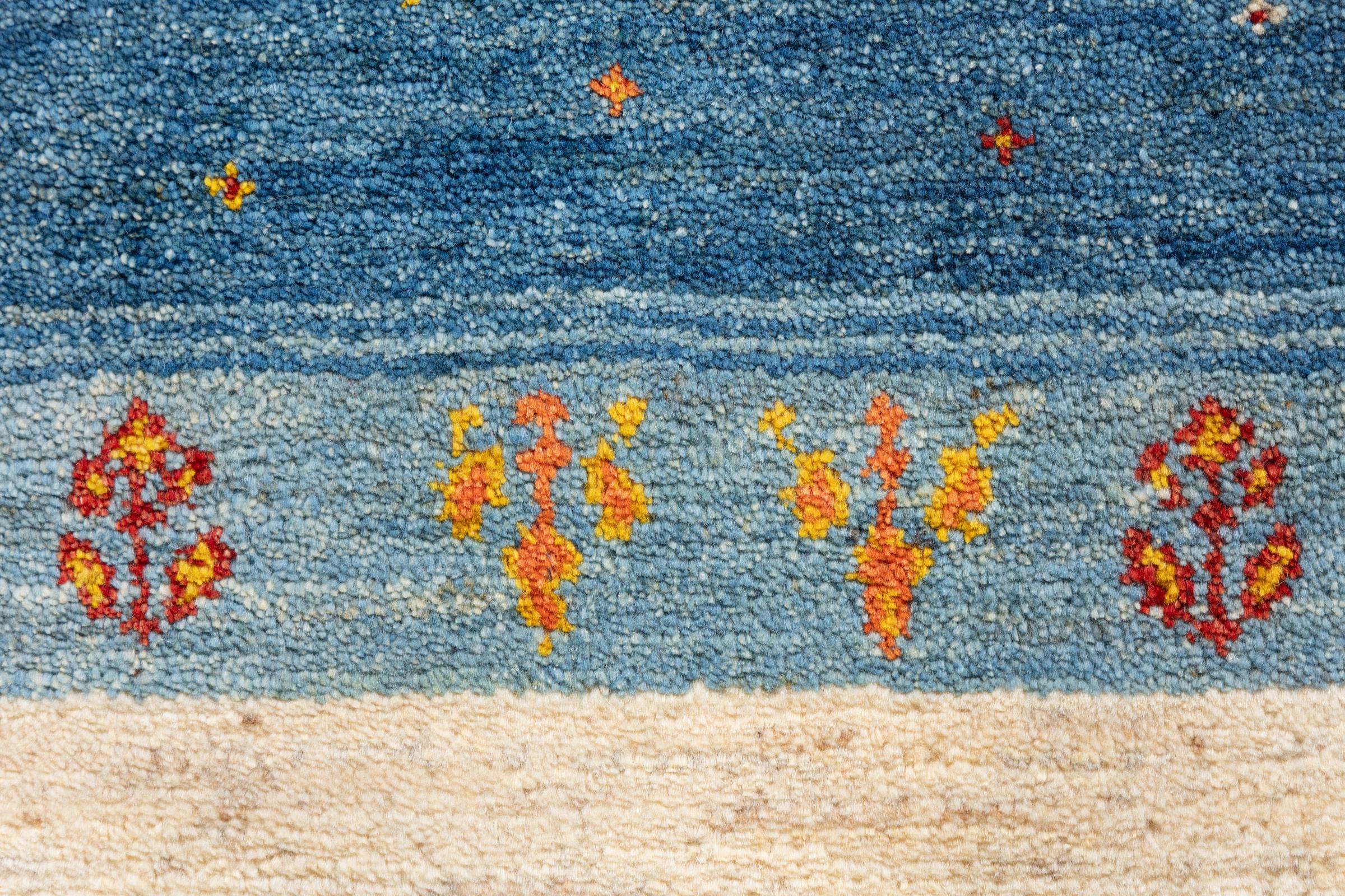 Dieser schöne Teppich ist ein persischer Gabbeh und gehört damit zu den hochwertigsten Gabbeh Teppichen. Die Teppiche werden von Nomaden oder Halbnomaden im Iran nach traditionellem Kunsthandwerk geknüpft. Die schlichten Motive und Muster sind meist aus der unmittelbaren Umgebung der Nomaden inspiriert. So sind beispielsweise Kamele, Bäume oder Büsche auf den traditionellen Teppichen zu finden. Perser Gabbeh Teppiche bestehen aus Wolle von lokal gehaltenen Schafherden. Die Wolle ist daher meist noch von Hand gesponnen. So verkörpert jeder dieser Orientteppiche einen einzigartigen Charakter jahrhundertealter Kultur.