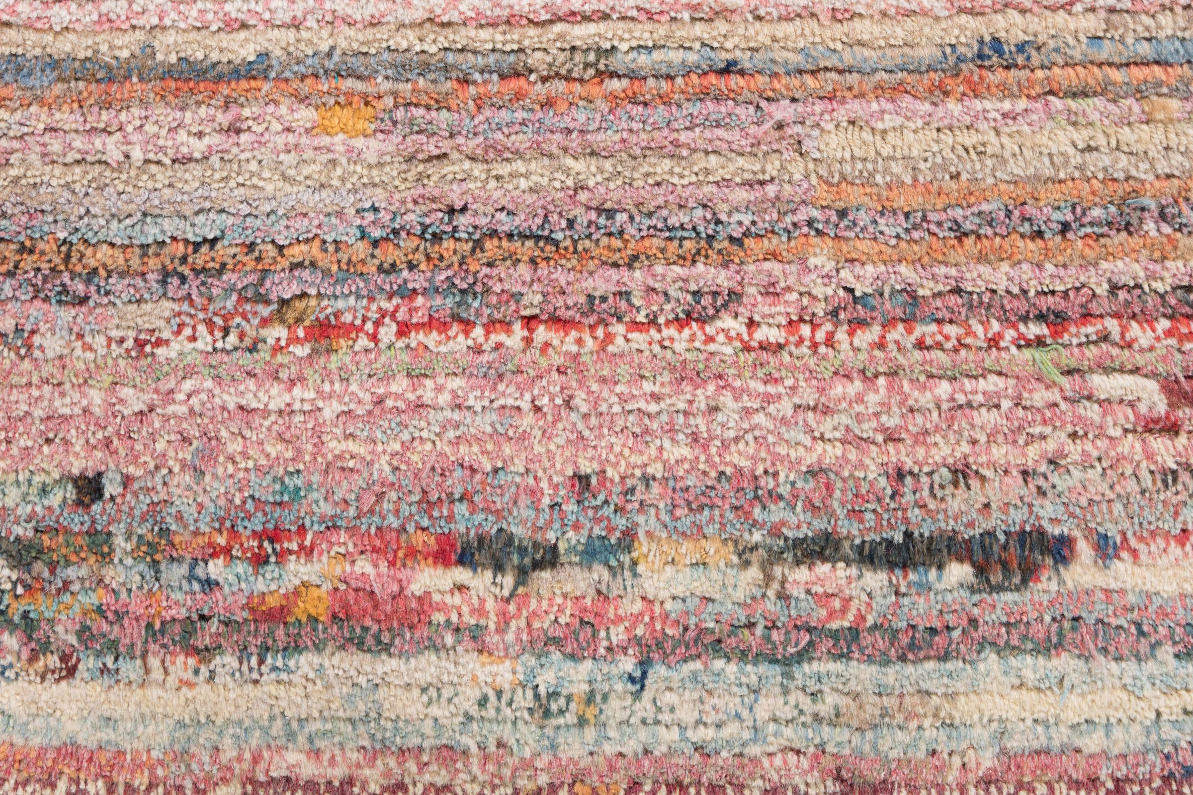 Dieser schöne Teppich ist ein persischer Gabbeh und gehört damit zu den hochwertigsten Gabbeh Teppichen. Die Teppiche werden von Nomaden oder Halbnomaden im Iran nach traditionellem Kunsthandwerk geknüpft. Die schlichten Motive und Muster sind meist aus der unmittelbaren Umgebung der Nomaden inspiriert. So sind beispielsweise Kamele, Bäume oder Büsche auf den traditionellen Teppichen zu finden. Perser Gabbeh Teppiche bestehen aus Wolle von lokal gehaltenen Schafherden. Die Wolle ist daher meist noch von Hand gesponnen. So verkörpert jeder dieser Orientteppiche einen einzigartigen Charakter jahrhundertealter Kultur.