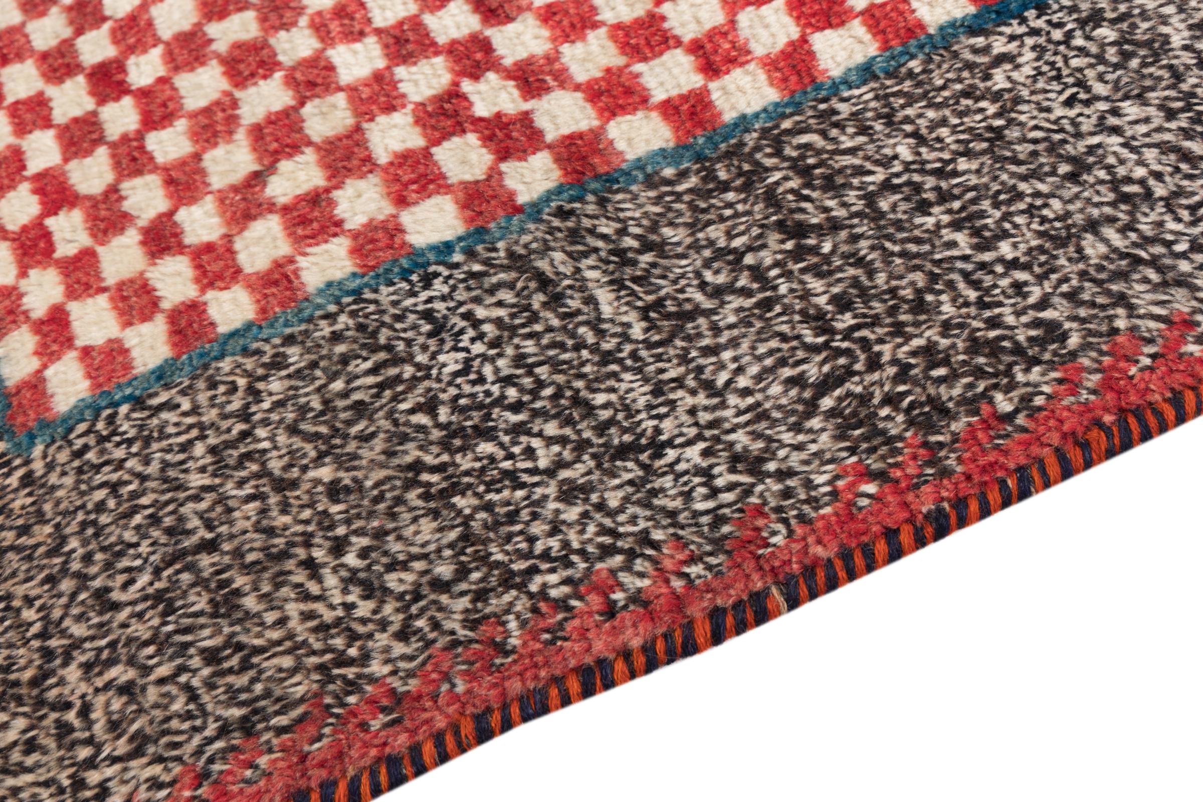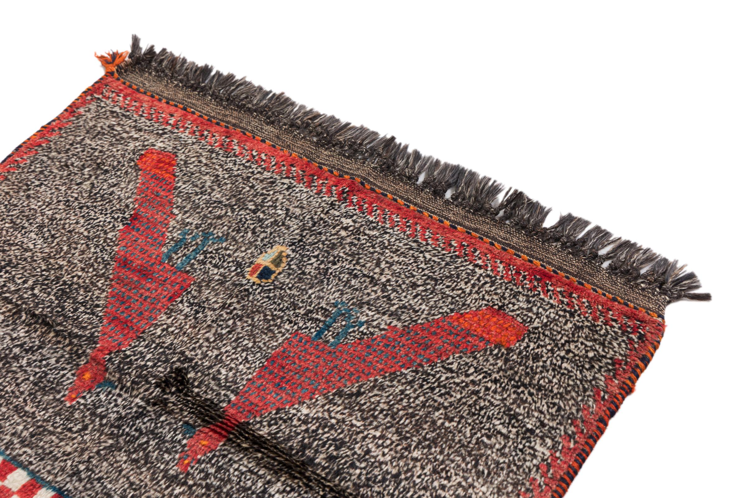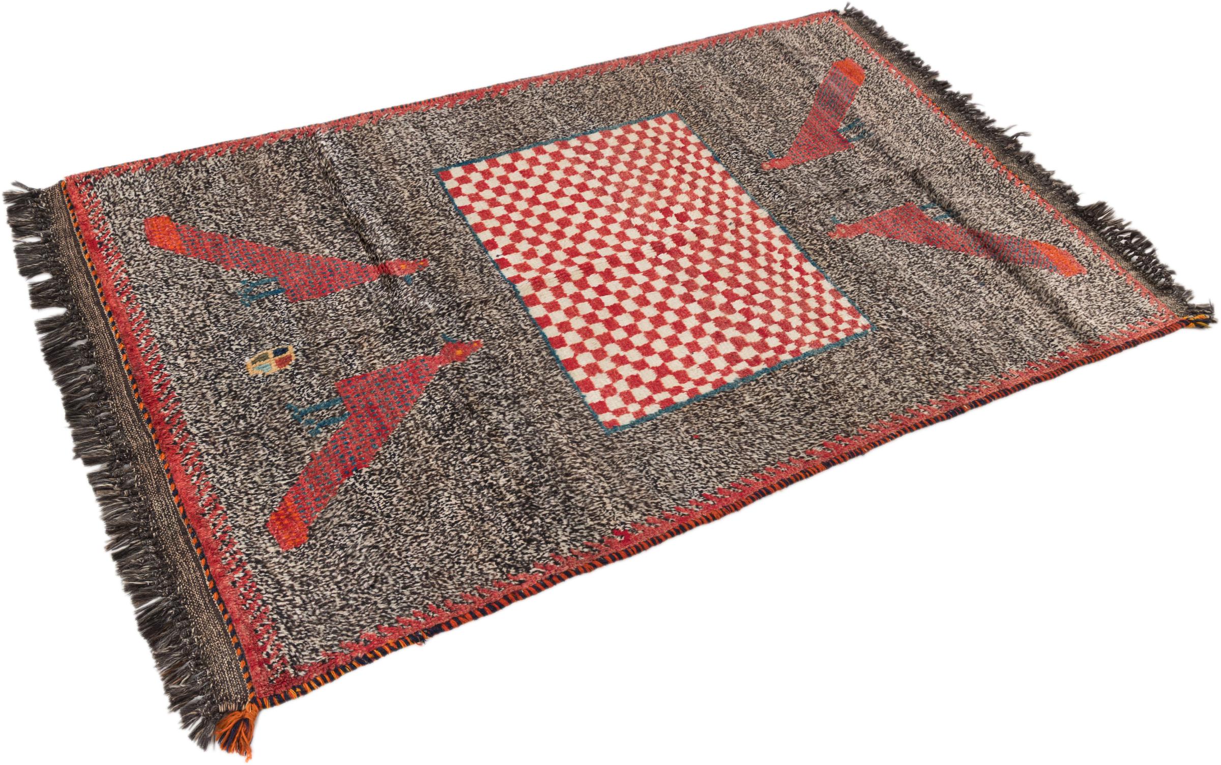 Dieser schöne Teppich ist ein persischer Gabbeh und gehört damit zu den hochwertigsten Gabbeh Teppichen. Die Teppiche werden von Nomaden oder Halbnomaden im Iran nach traditionellem Kunsthandwerk geknüpft. Die schlichten Motive und Muster sind meist aus der unmittelbaren Umgebung der Nomaden inspiriert. So sind beispielsweise Kamele, Bäume oder Büsche auf den traditionellen Teppichen zu finden. Perser Gabbeh Teppiche bestehen aus Wolle von lokal gehaltenen Schafherden. Die Wolle ist daher meist noch von Hand gesponnen. So verkörpert jeder dieser Orientteppiche einen einzigartigen Charakter jahrhundertealter Kultur.