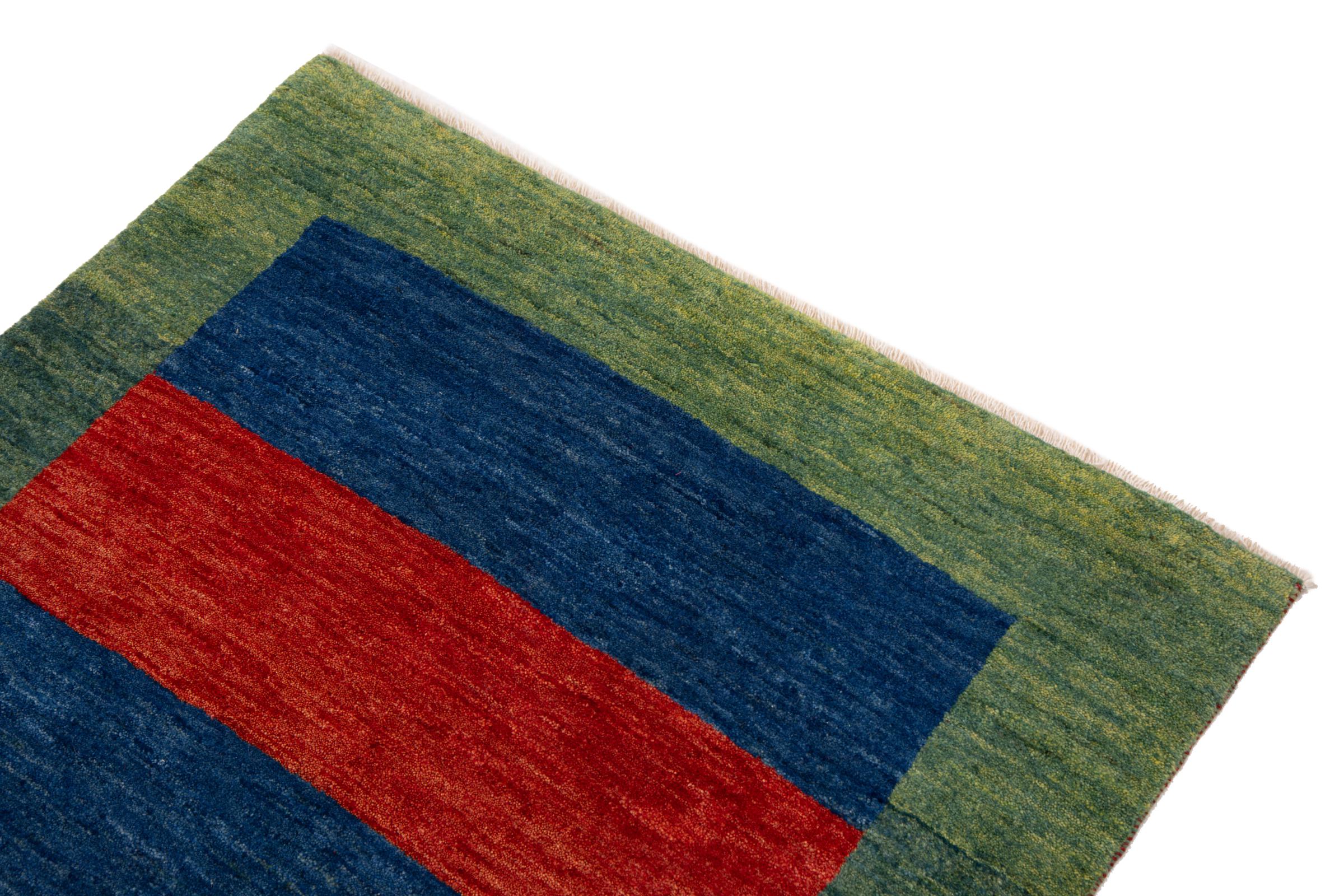 Dieser schöne Teppich ist ein persischer Gabbeh und gehört damit zu den hochwertigsten Gabbeh Teppichen. Die Teppiche werden von Nomaden oder Halbnomaden im Iran nach traditionellem Kunsthandwerk geknüpft. Die schlichten Motive und Muster sind meist aus der unmittelbaren Umgebung der Nomaden inspiriert. So sind beispielsweise Kamele, Bäume oder Büsche auf den traditionellen Teppichen zu finden. Perser Gabbeh Teppiche bestehen aus Wolle von lokal gehaltenen Schafherden. Die Wolle ist daher meist noch von Hand gesponnen. So verkörpert jeder dieser Orientteppiche einen einzigartigen Charakter jahrhundertealter Kultur.