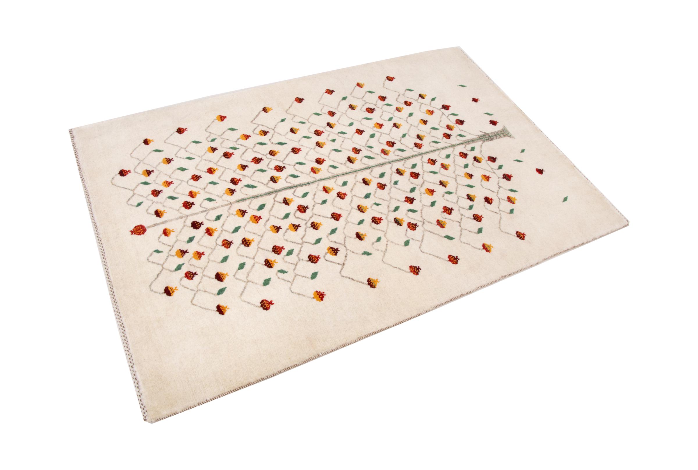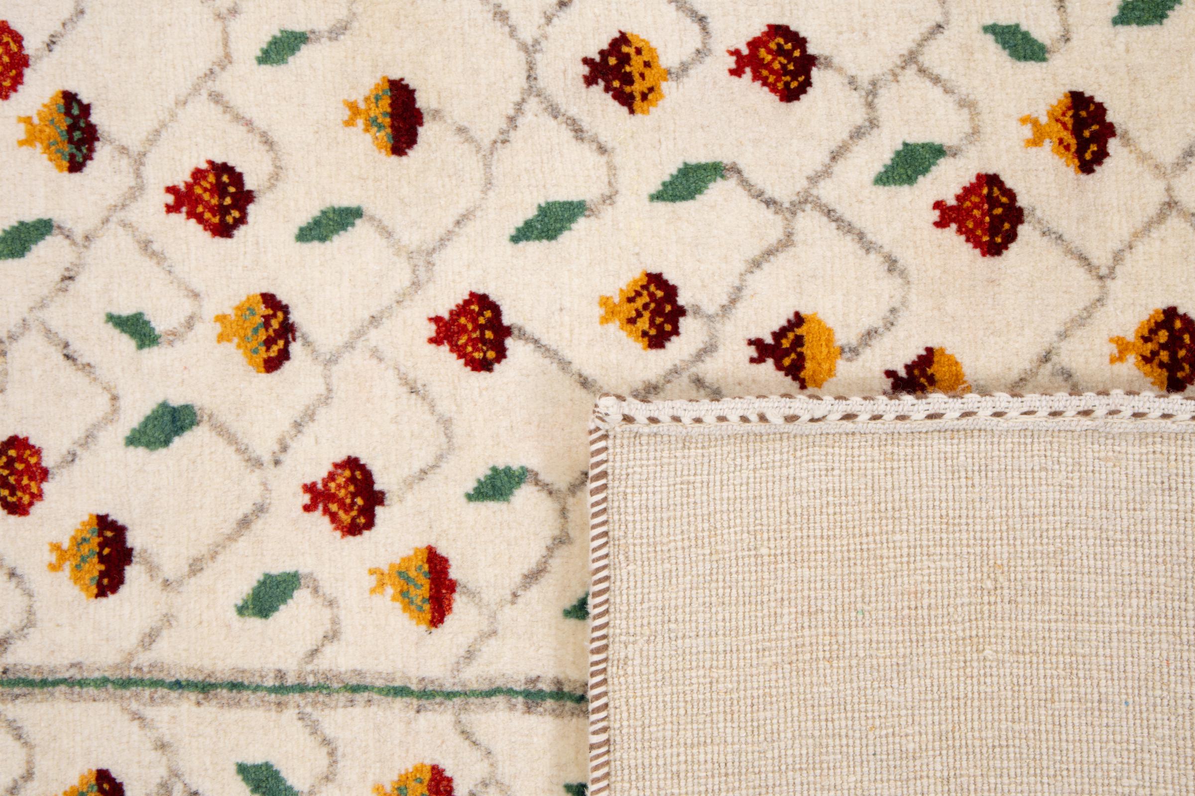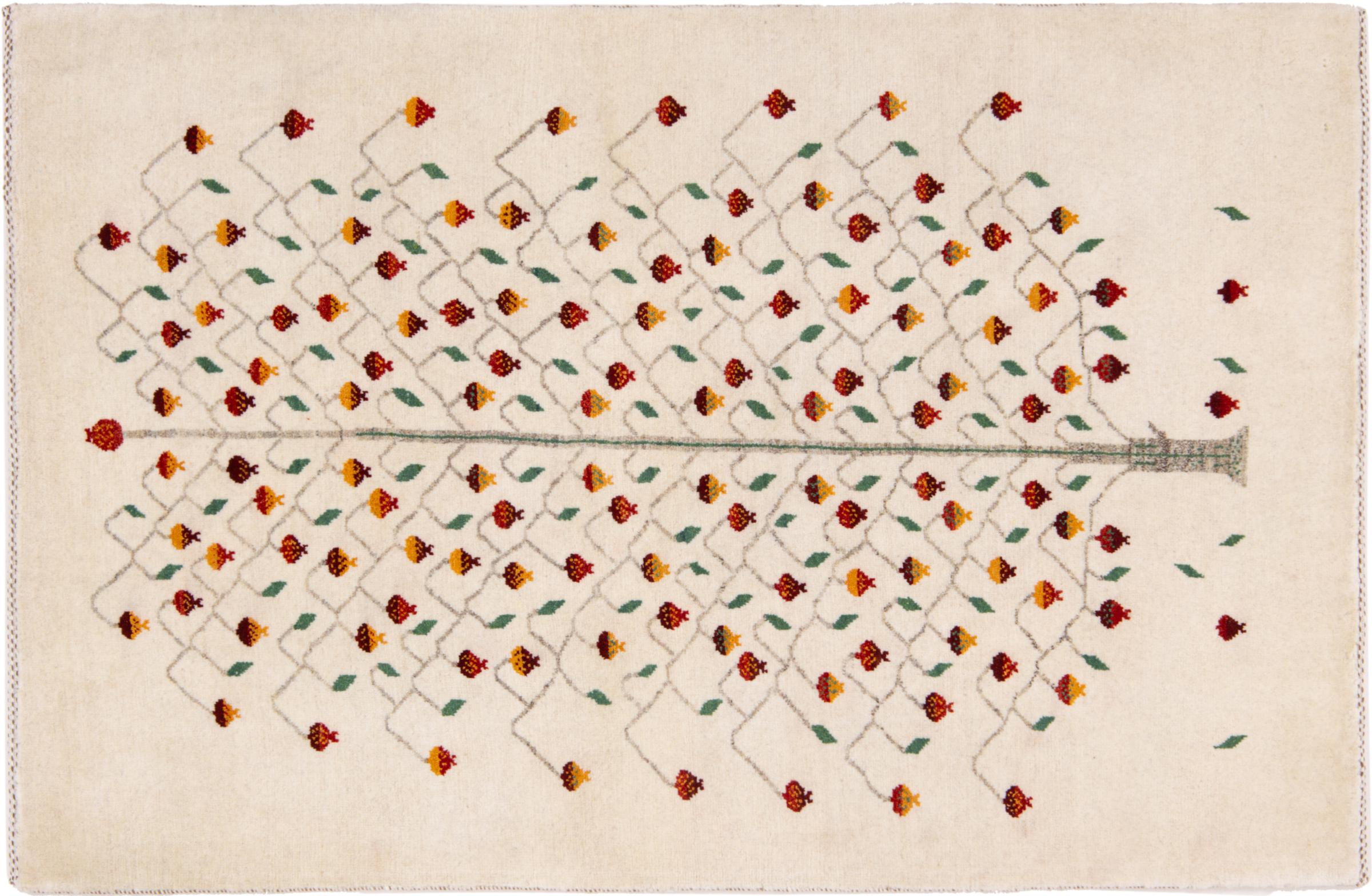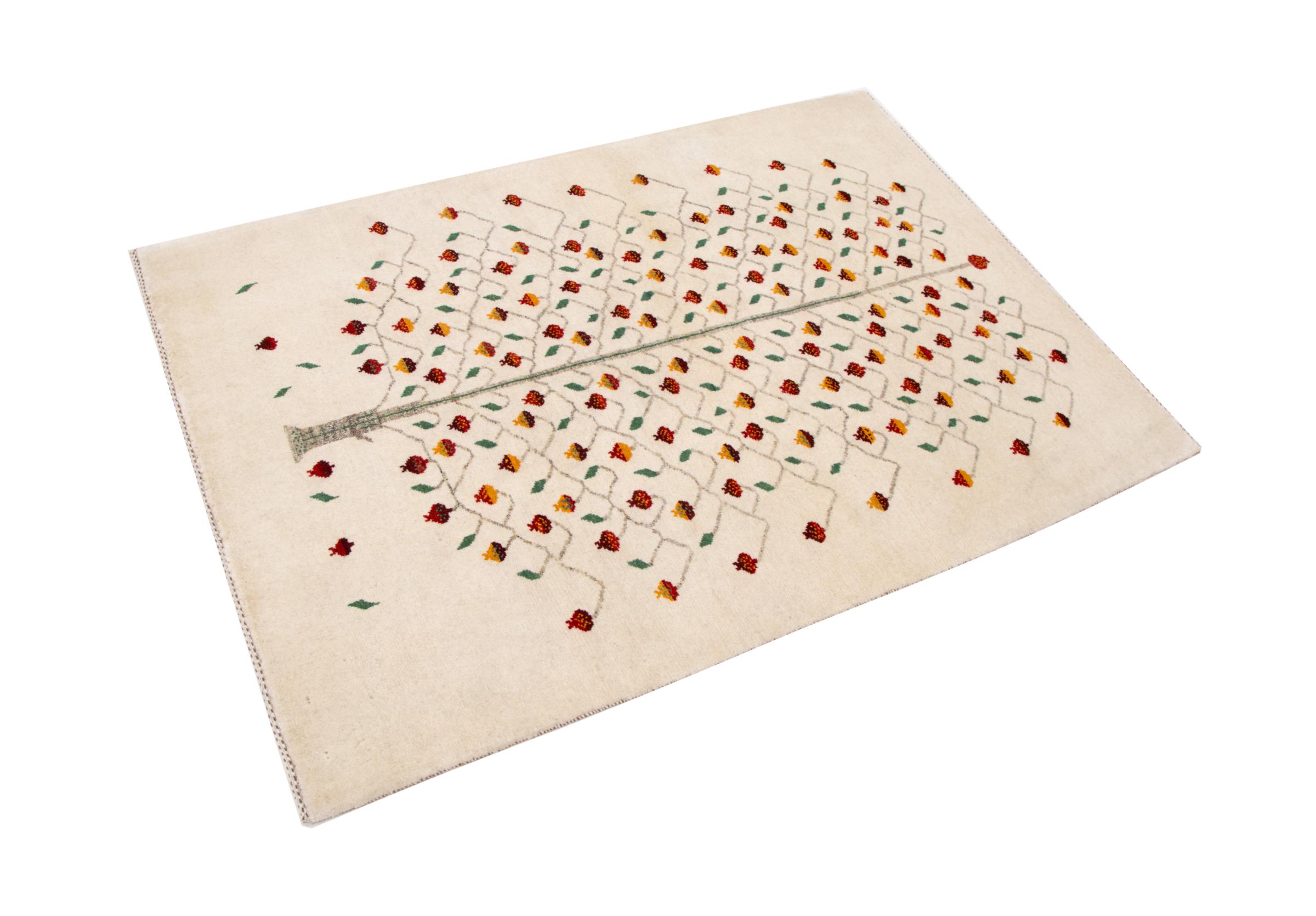 Dieser schöne Teppich ist ein persischer Gabbeh und gehört damit zu den hochwertigsten Gabbeh Teppichen. Die Teppiche werden von Nomaden oder Halbnomaden im Iran nach traditionellem Kunsthandwerk geknüpft. Die schlichten Motive und Muster sind meist aus der unmittelbaren Umgebung der Nomaden inspiriert. So sind beispielsweise Kamele, Bäume oder Büsche auf den traditionellen Teppichen zu finden. Perser Gabbeh Teppiche bestehen aus Wolle von lokal gehaltenen Schafherden. Die Wolle ist daher meist noch von Hand gesponnen. So verkörpert jeder dieser Orientteppiche einen einzigartigen Charakter jahrhundertealter Kultur.