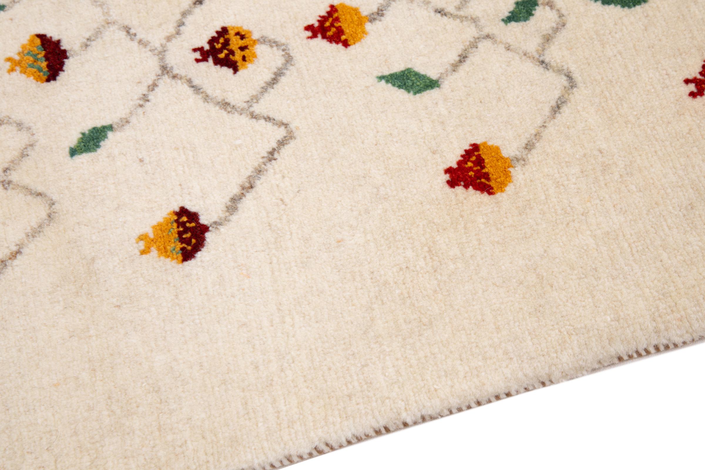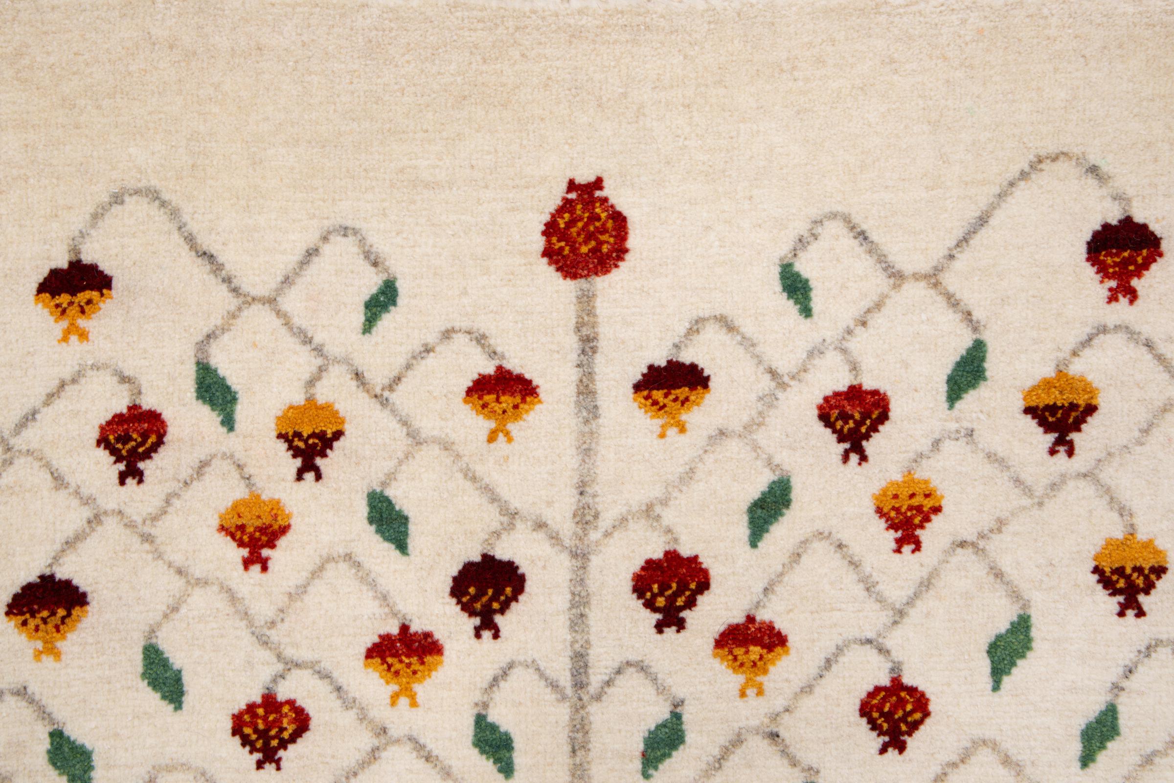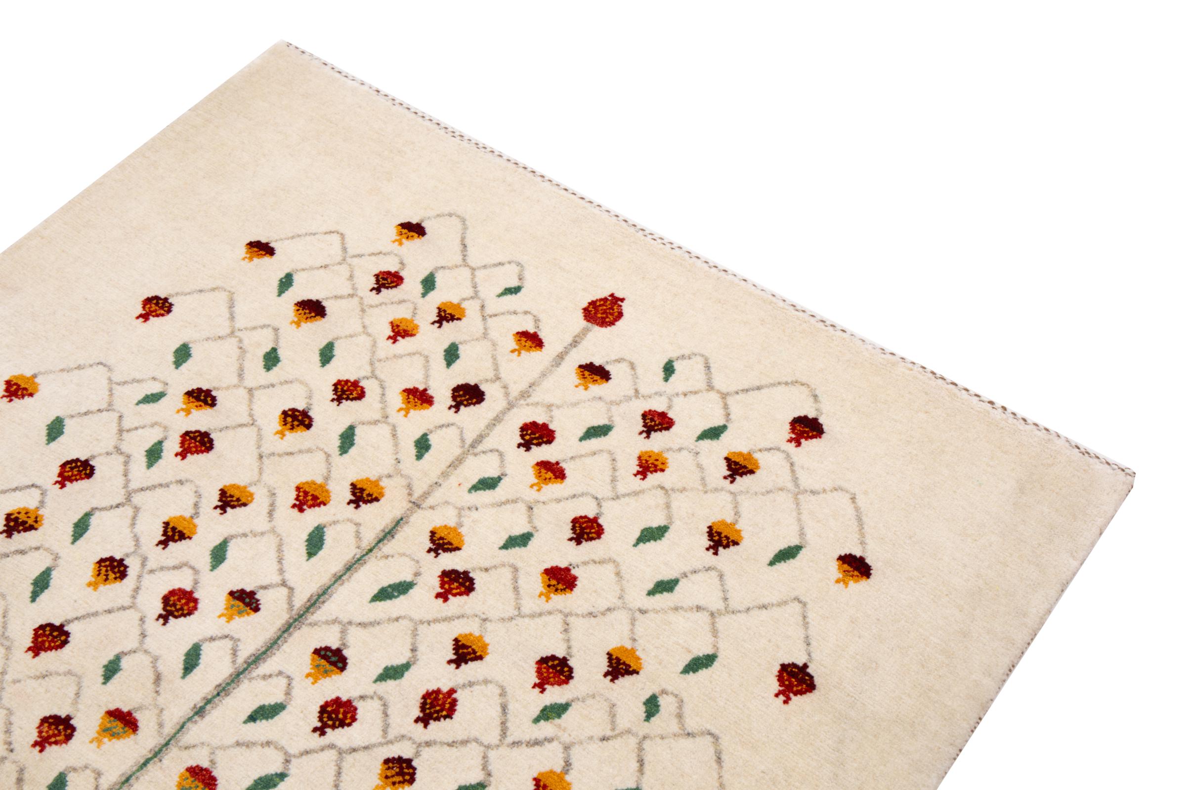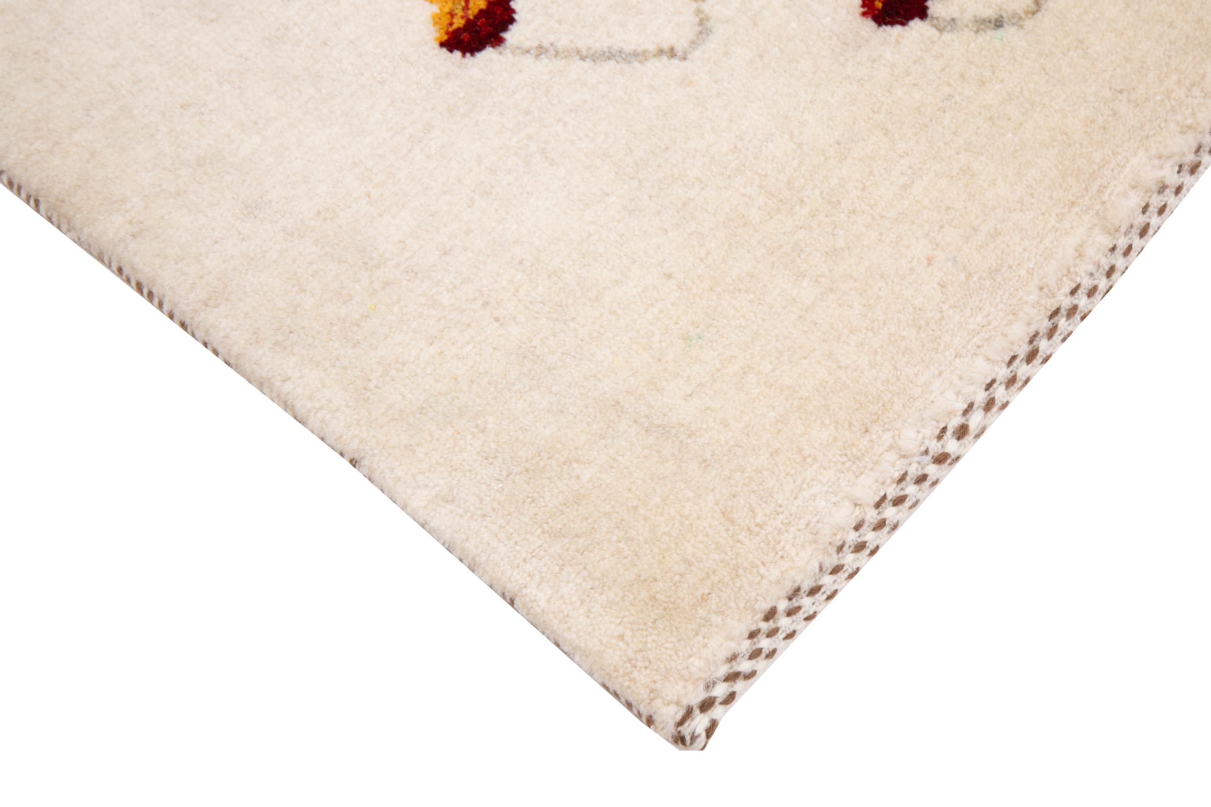 Dieser schöne Teppich ist ein persischer Gabbeh und gehört damit zu den hochwertigsten Gabbeh Teppichen. Die Teppiche werden von Nomaden oder Halbnomaden im Iran nach traditionellem Kunsthandwerk geknüpft. Die schlichten Motive und Muster sind meist aus der unmittelbaren Umgebung der Nomaden inspiriert. So sind beispielsweise Kamele, Bäume oder Büsche auf den traditionellen Teppichen zu finden. Perser Gabbeh Teppiche bestehen aus Wolle von lokal gehaltenen Schafherden. Die Wolle ist daher meist noch von Hand gesponnen. So verkörpert jeder dieser Orientteppiche einen einzigartigen Charakter jahrhundertealter Kultur.